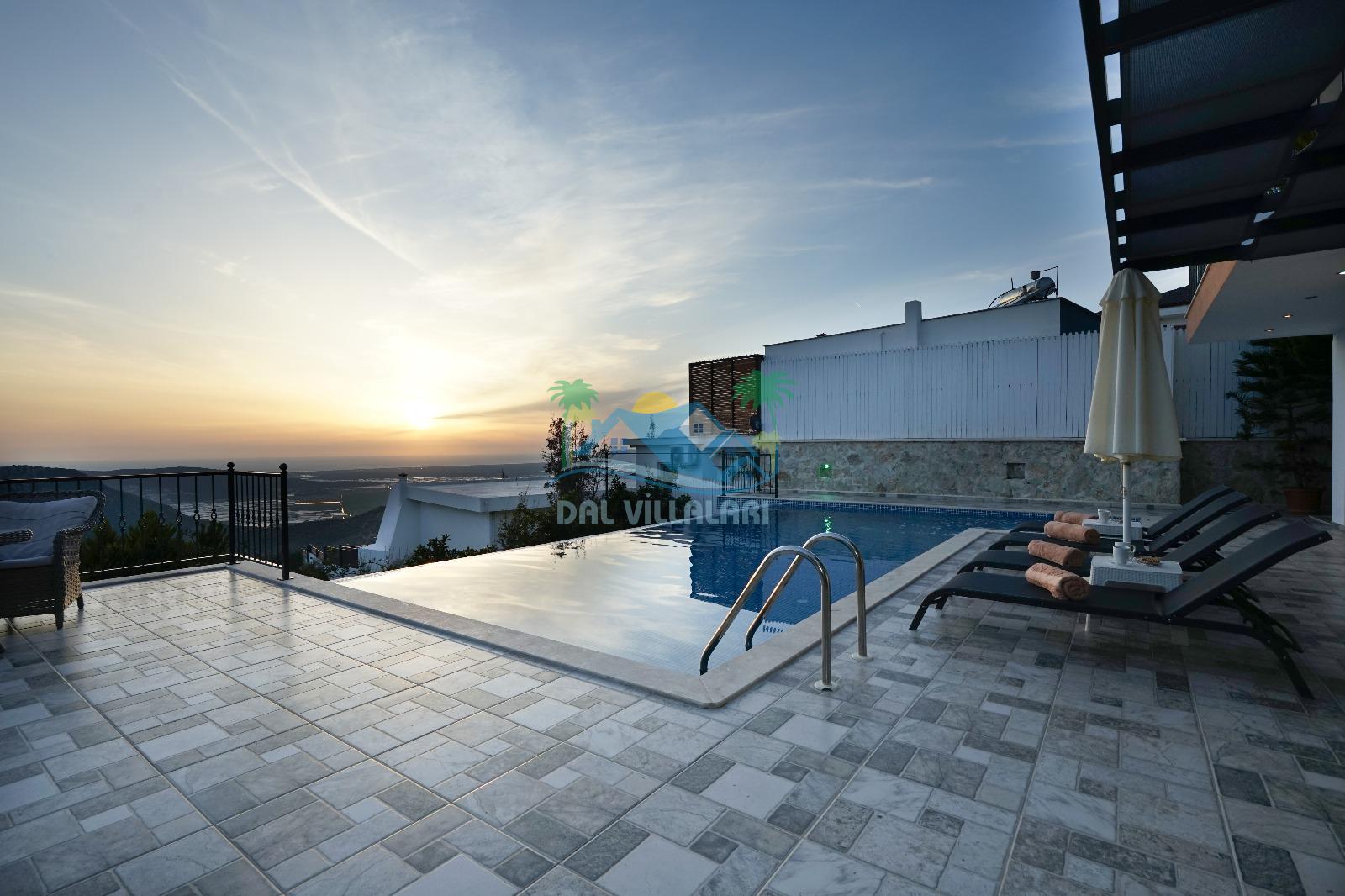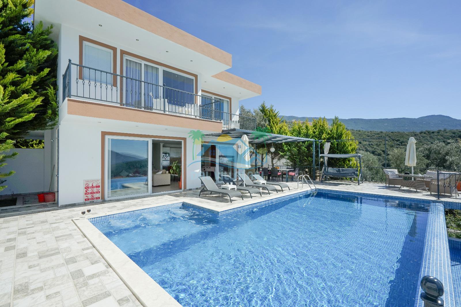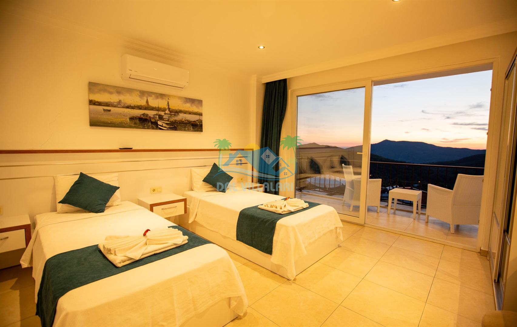 Villamız, Kalkan Üzümlü bölgesinde yer almaktadır. Eşsiz doğa manzarası ile iç içe tasarlanmış villamız 2 yatak odalı, 5 kişi kapasiteye sahiptir. son derece lüks eşyalar ile dizayn edilmiş villamız korunaklı ve muhafazakardır. Balayı çiftleri ve çekirdek ailelerin vazgeçilmezi olan bu villamız gün batımı manzarası ile siz değerli müşterilerimizi beklemektedir. unutulmaz tatil anıları biriktirmek istiyorsanız . Rezervasyon için geç kalmayın.