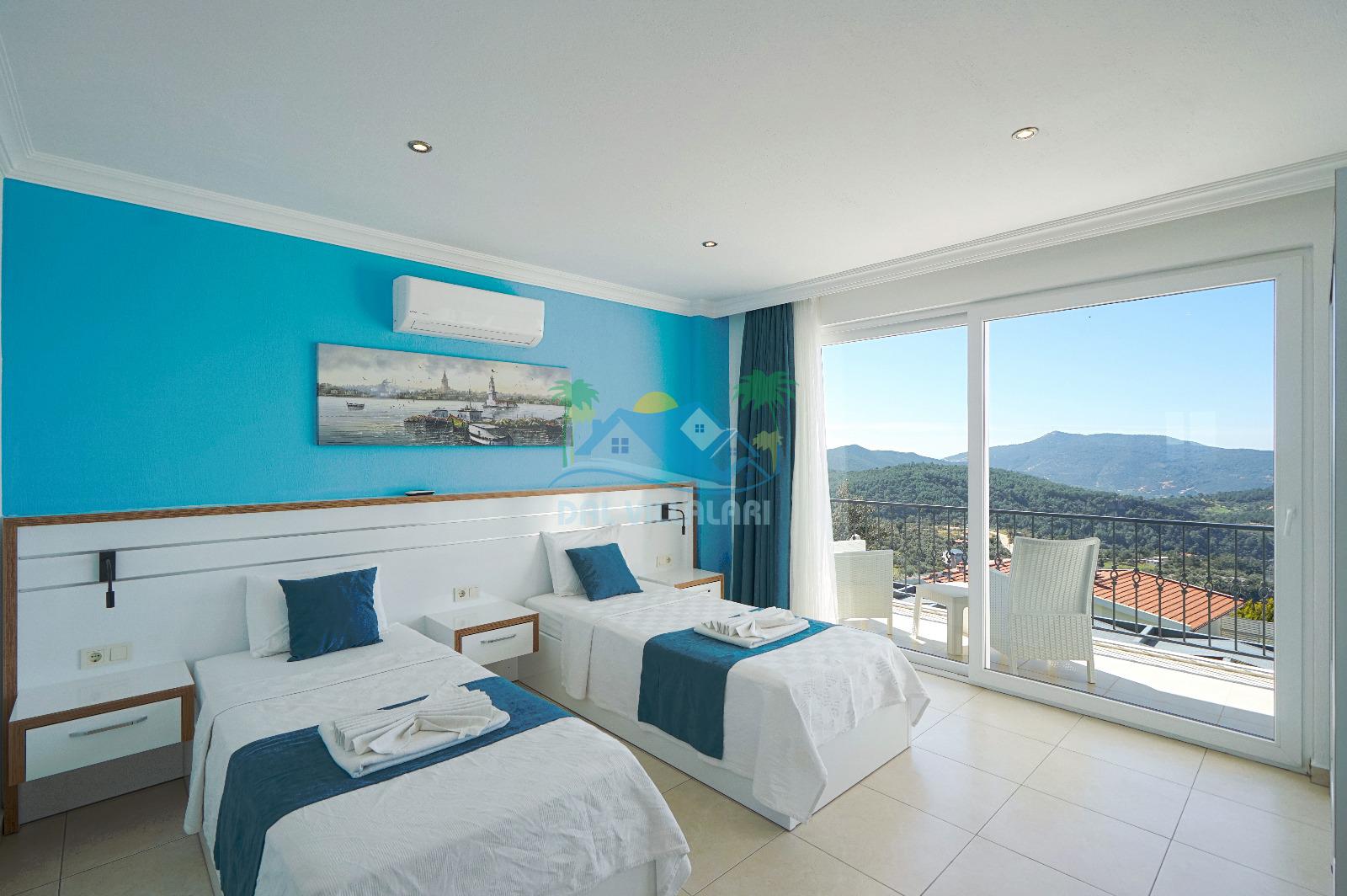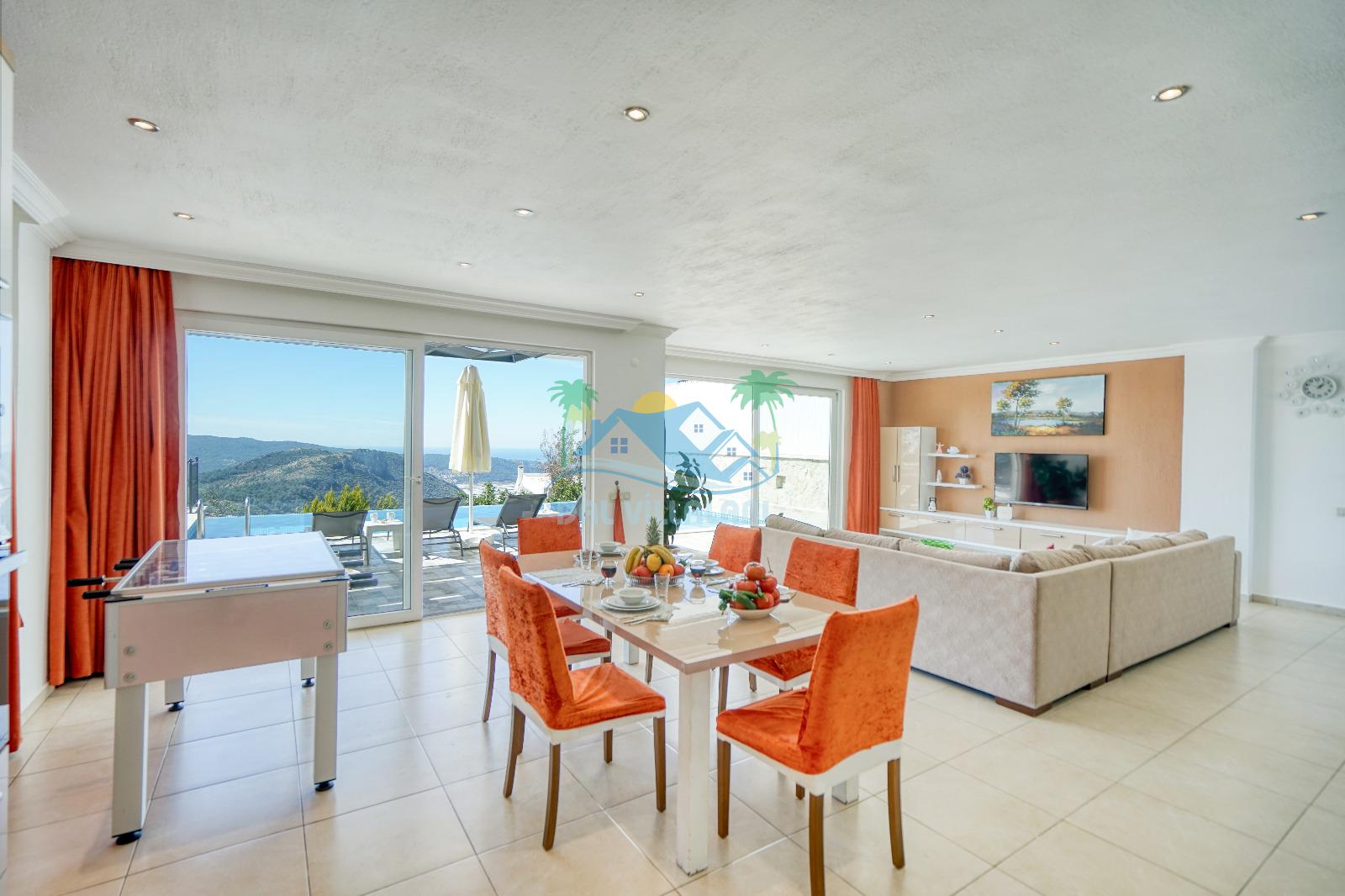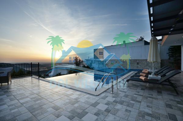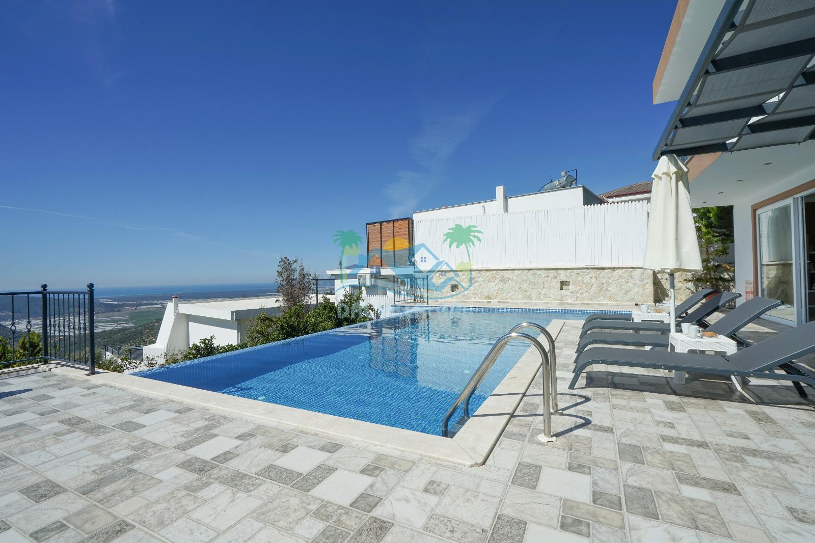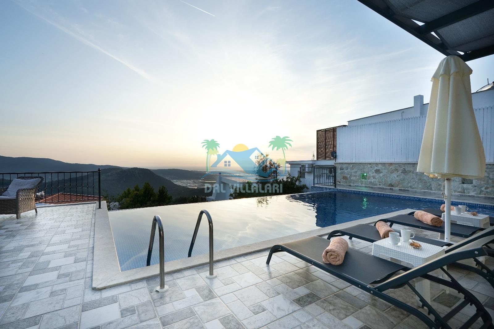 Villamız, Kalkan Üzümlü bölgesinde yer almaktadır. Eşsiz doğa manzarası ile iç içe tasarlanmış villamız 2 yatak odalı, 5 kişi kapasiteye sahiptir. son derece lüks eşyalar ile dizayn edilmiş villamız korunaklı ve muhafazakardır. Balayı çiftleri ve çekirdek ailelerin vazgeçilmezi olan bu villamız gün batımı manzarası ile siz değerli müşterilerimizi beklemektedir. unutulmaz tatil anıları biriktirmek istiyorsanız . Rezervasyon için geç kalmayın.