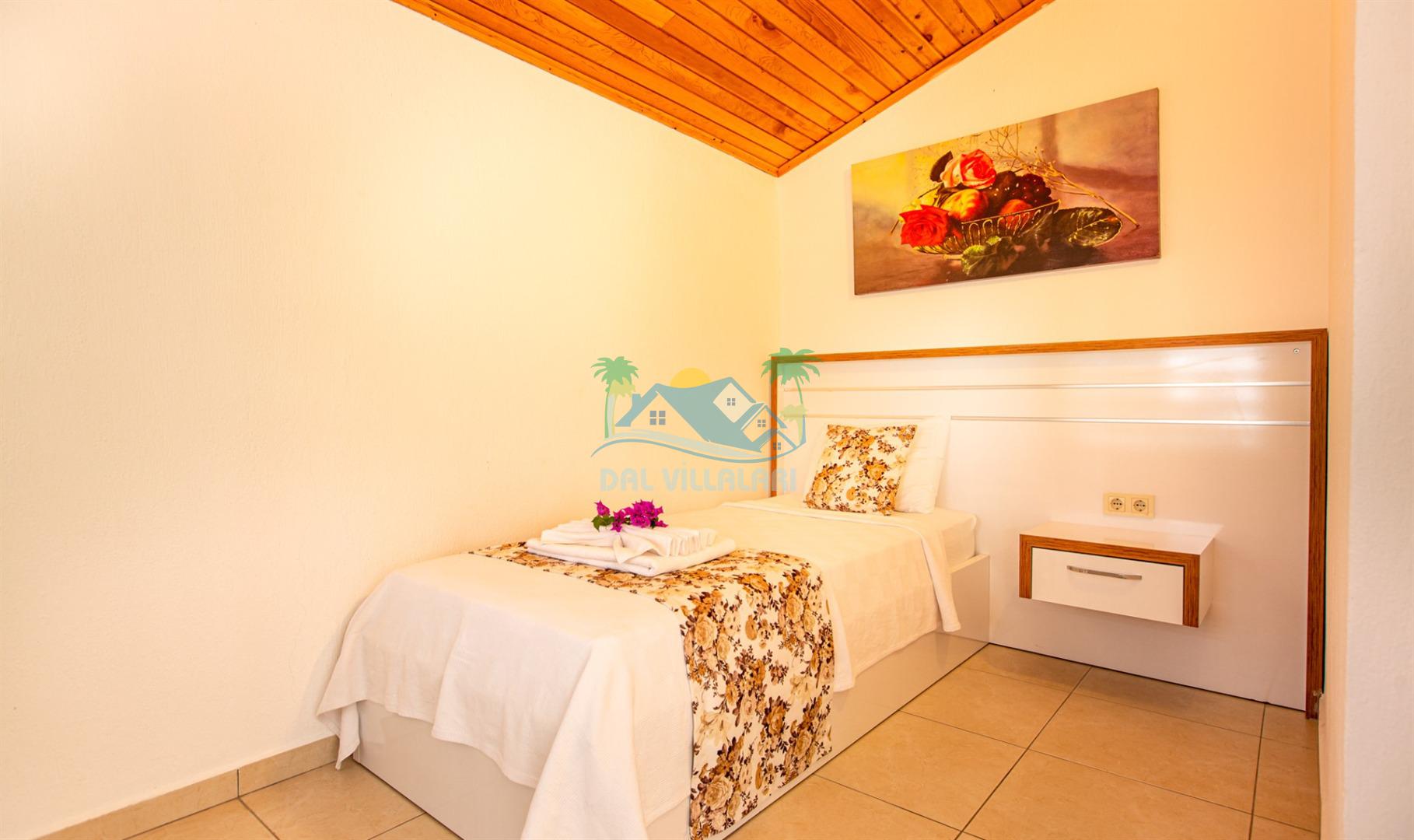 2 YATAK ODASI: 2 ADET TEK KİŞİLİK YATAK, TUVALET , BANYO ,KLİMA
