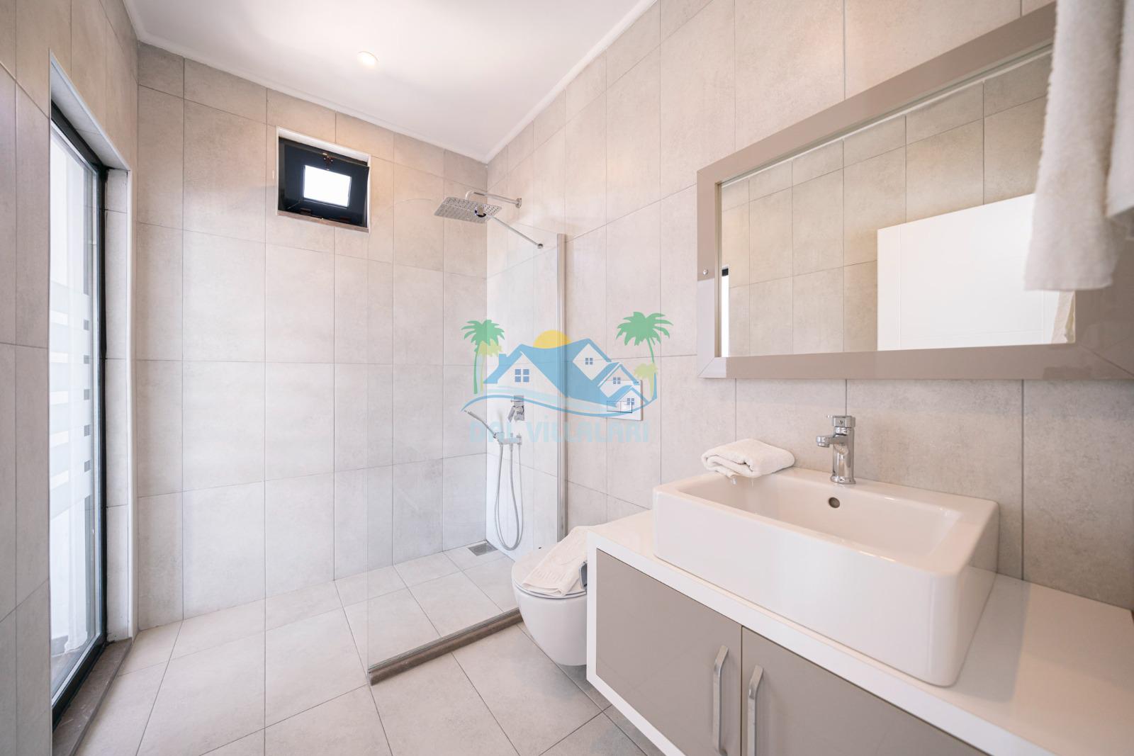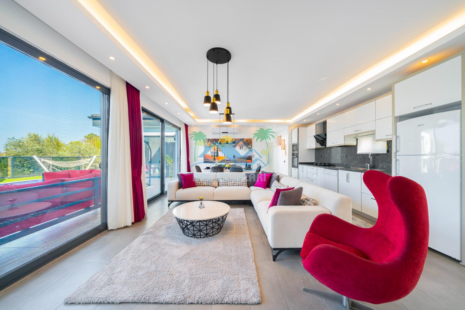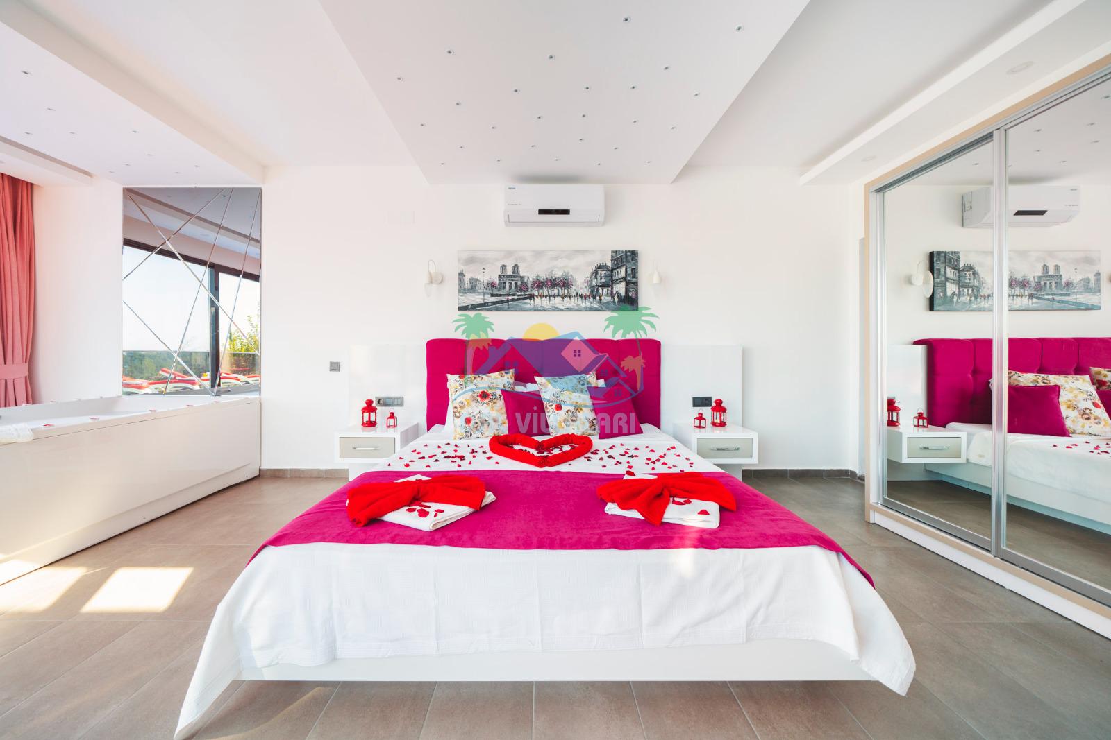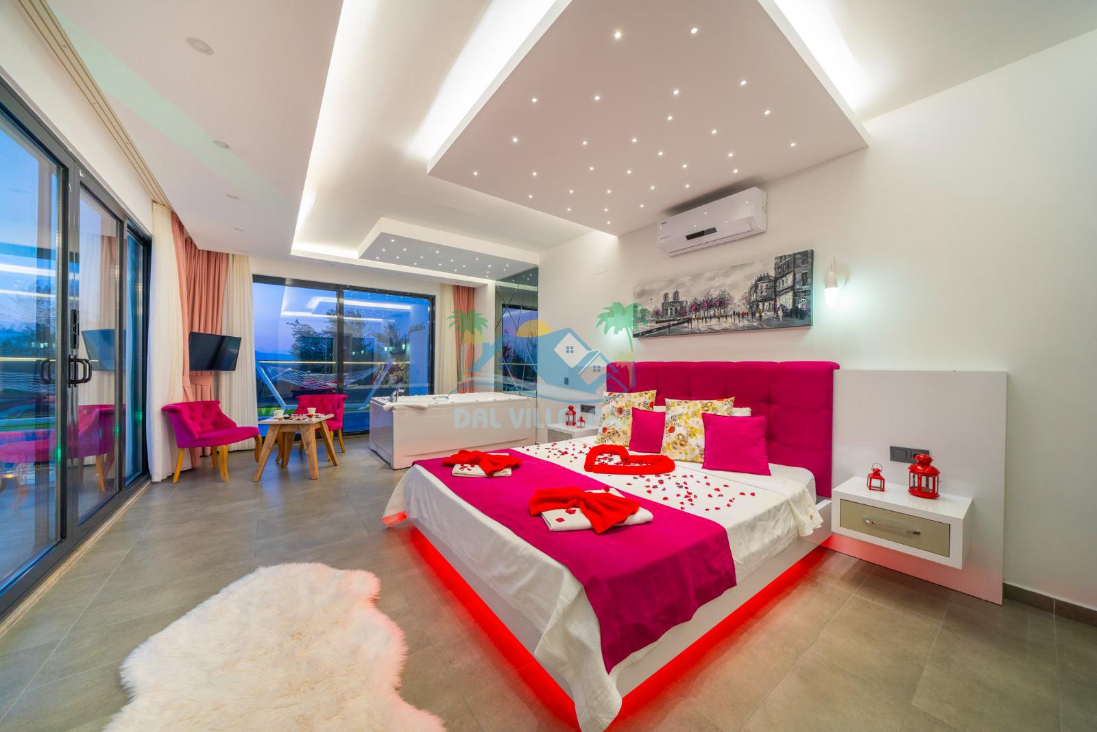 İhtiyaçlarınıza karşılık verecek konforlu oturma odası, tam donanımlı açık mutfağı bulunan villanın, birinci yatak odasında çift kişilik yatak,ebeveyn banyosu ve jakuzi; ikinci yatak odasında da çift kişilik yatak, tek kişilik yatak ve ebeveyn banyosu bulunmaktadır.