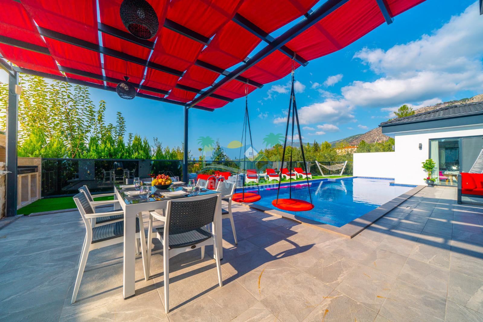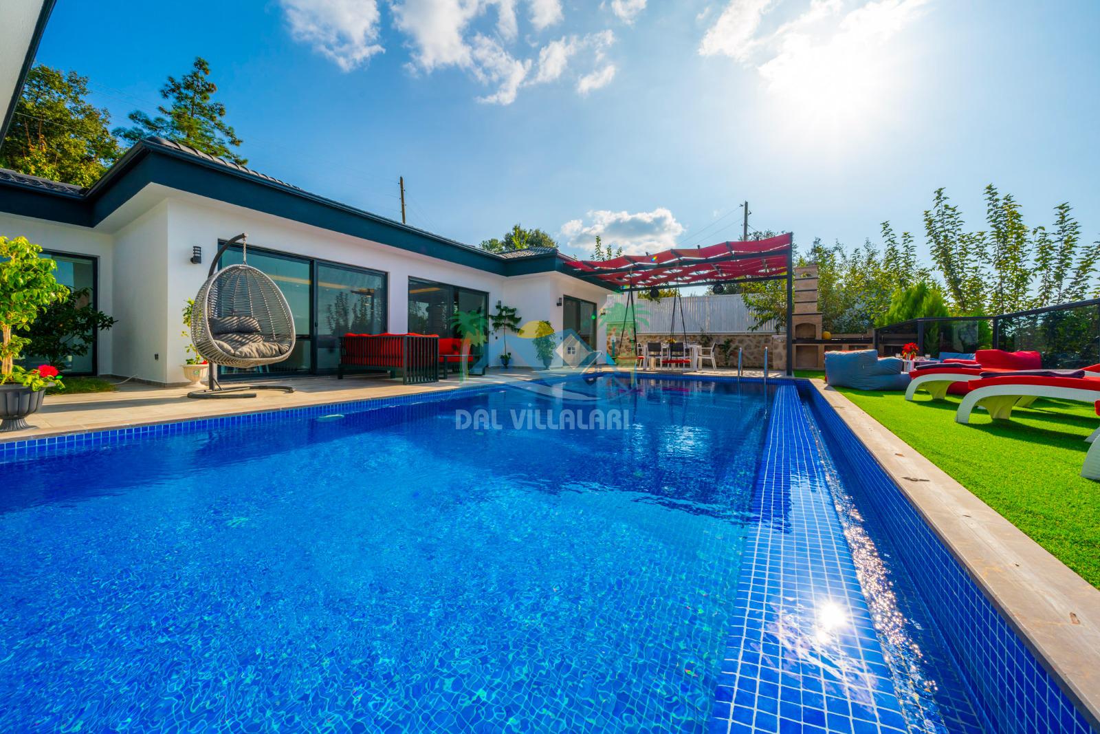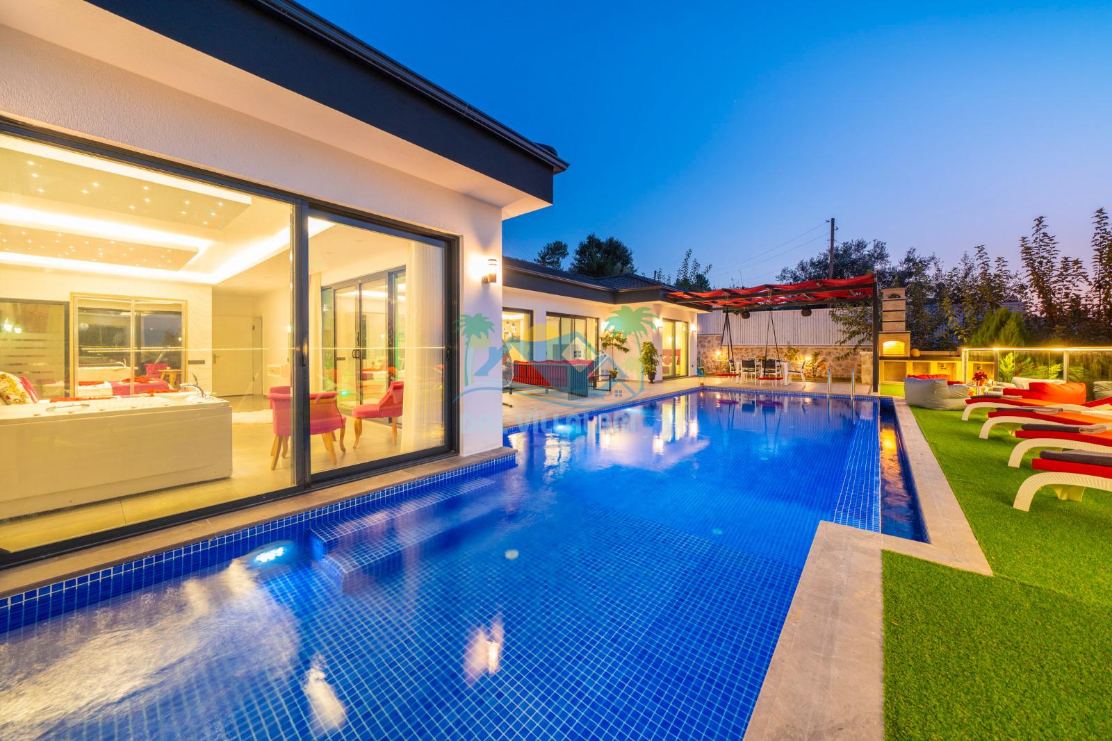 Geniş havuz alanı, güneşin tadını çıkarabileceğiniz şezlongları, hamağı, salıncakları ve günün tüm yorgunluğunu atabileceğiniz konforlu locasıyla villa tatili beklentilerinize tam karşılık verebilecek villamız sessiz, sakin ve oldukça huzurlu bir atmosferde unutamayacağınız anılar vadetmektedir.