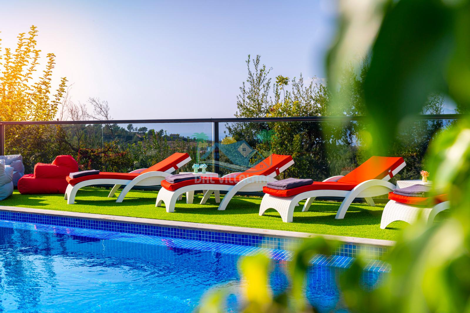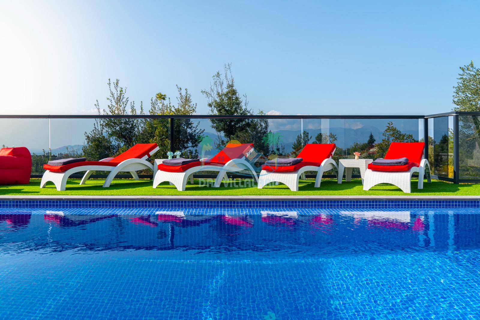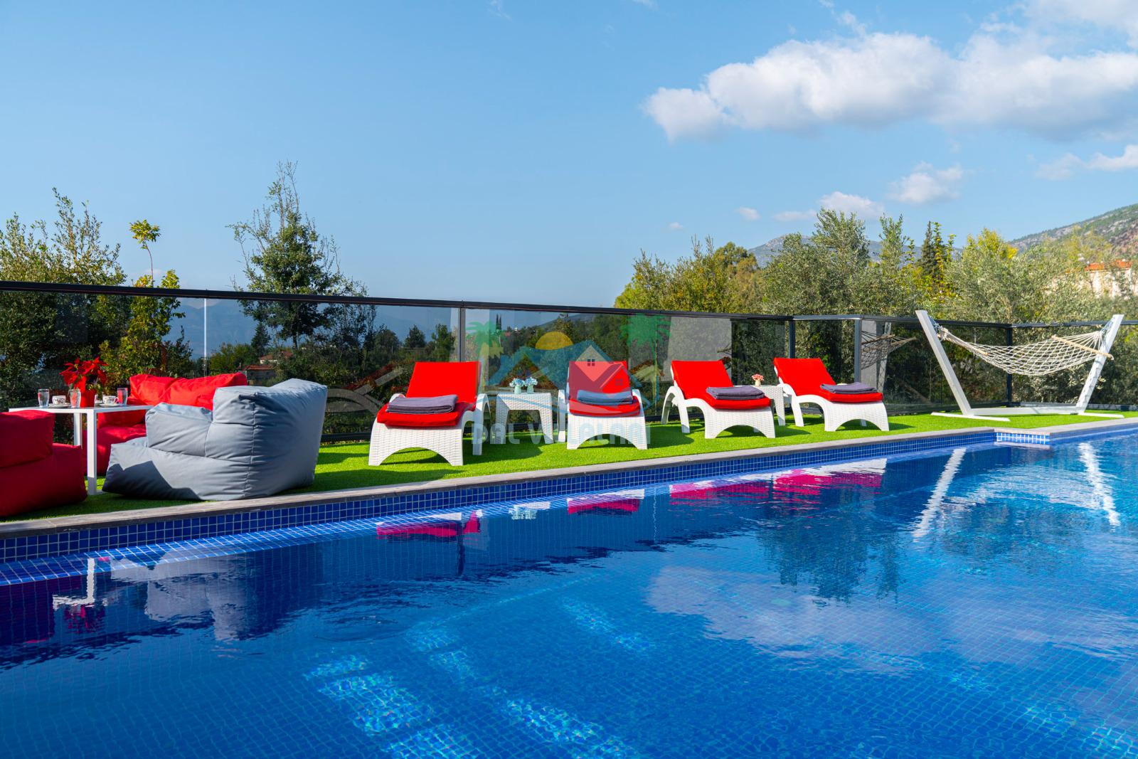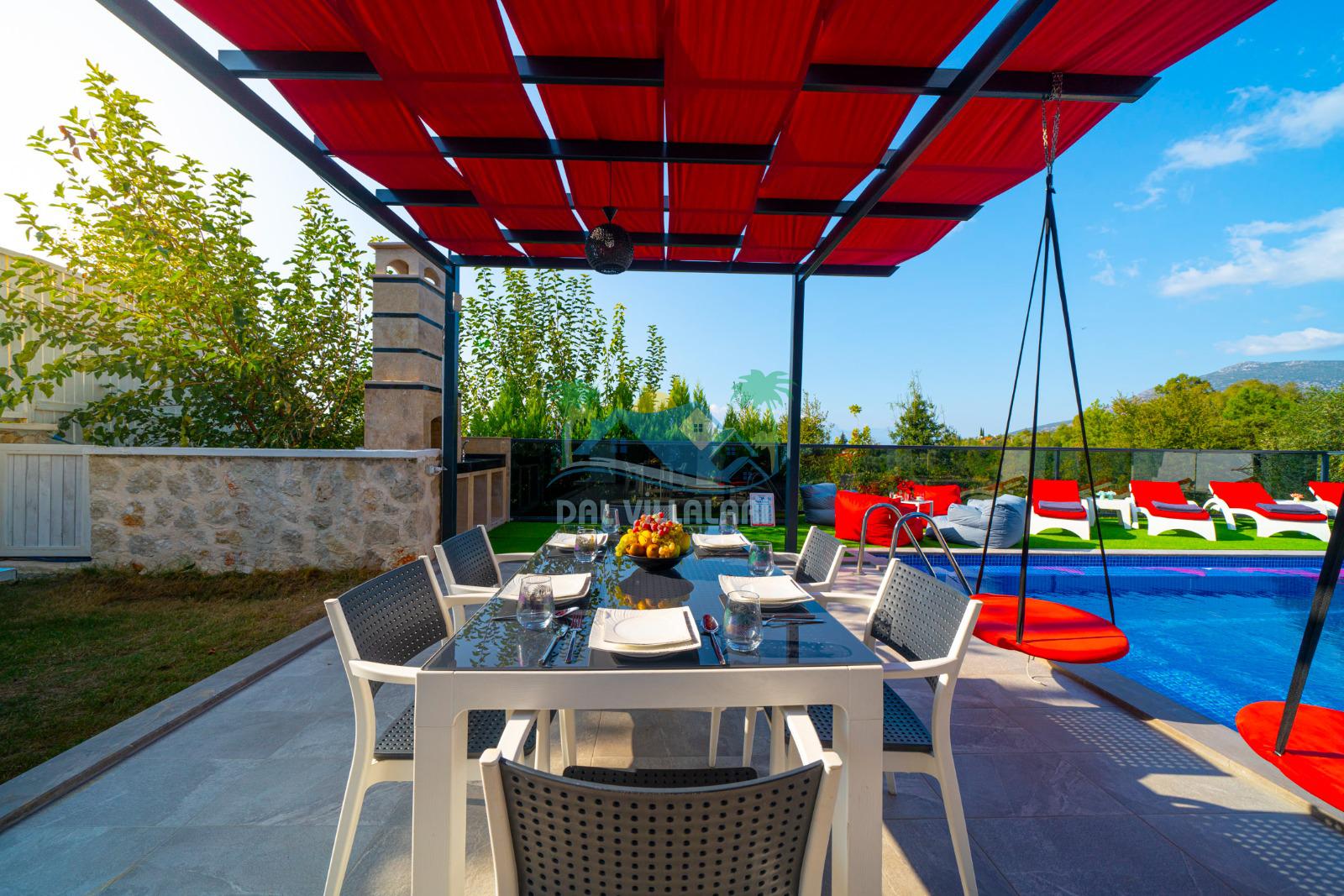 Geniş havuz alanı, güneşin tadını çıkarabileceğiniz şezlongları, hamağı, salıncakları ve günün tüm yorgunluğunu atabileceğiniz konforlu locasıyla villa tatili beklentilerinize tam karşılık verebilecek villamız sessiz, sakin ve oldukça huzurlu bir atmosferde unutamayacağınız anılar vadetmektedir.