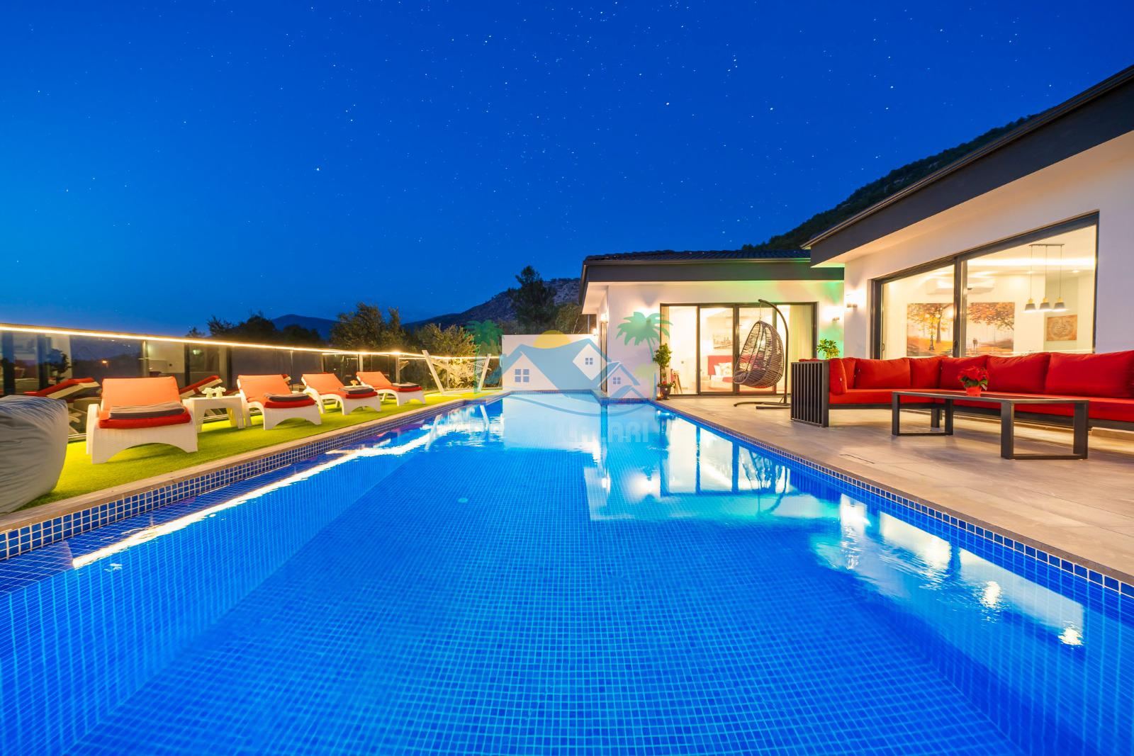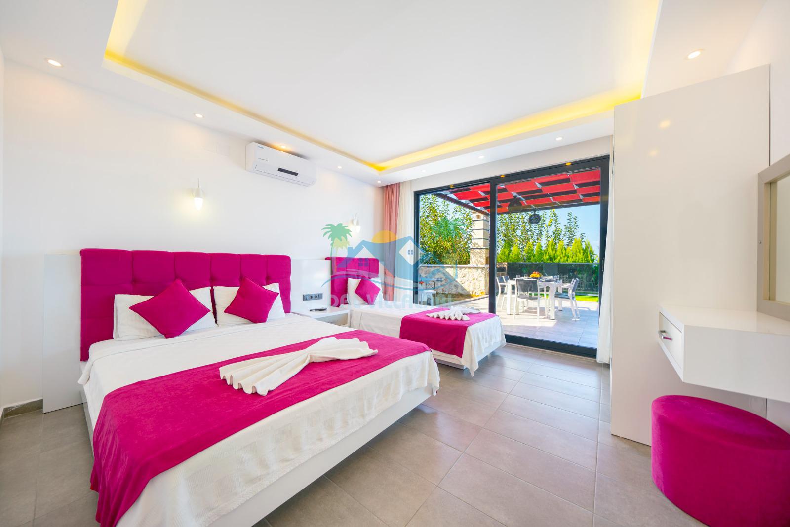 Kalkan Üzümlü bölgesinde konumlandırılan villamız 2 yatak odasıyla 5 kişilik konaklama kapasitesi sunmaktadır. Korunaklı havuz alanına sahip villa, konforunu gözeten balayı çiftleri ve çekirdek ailelerin tercihleri başında gelmektedir.