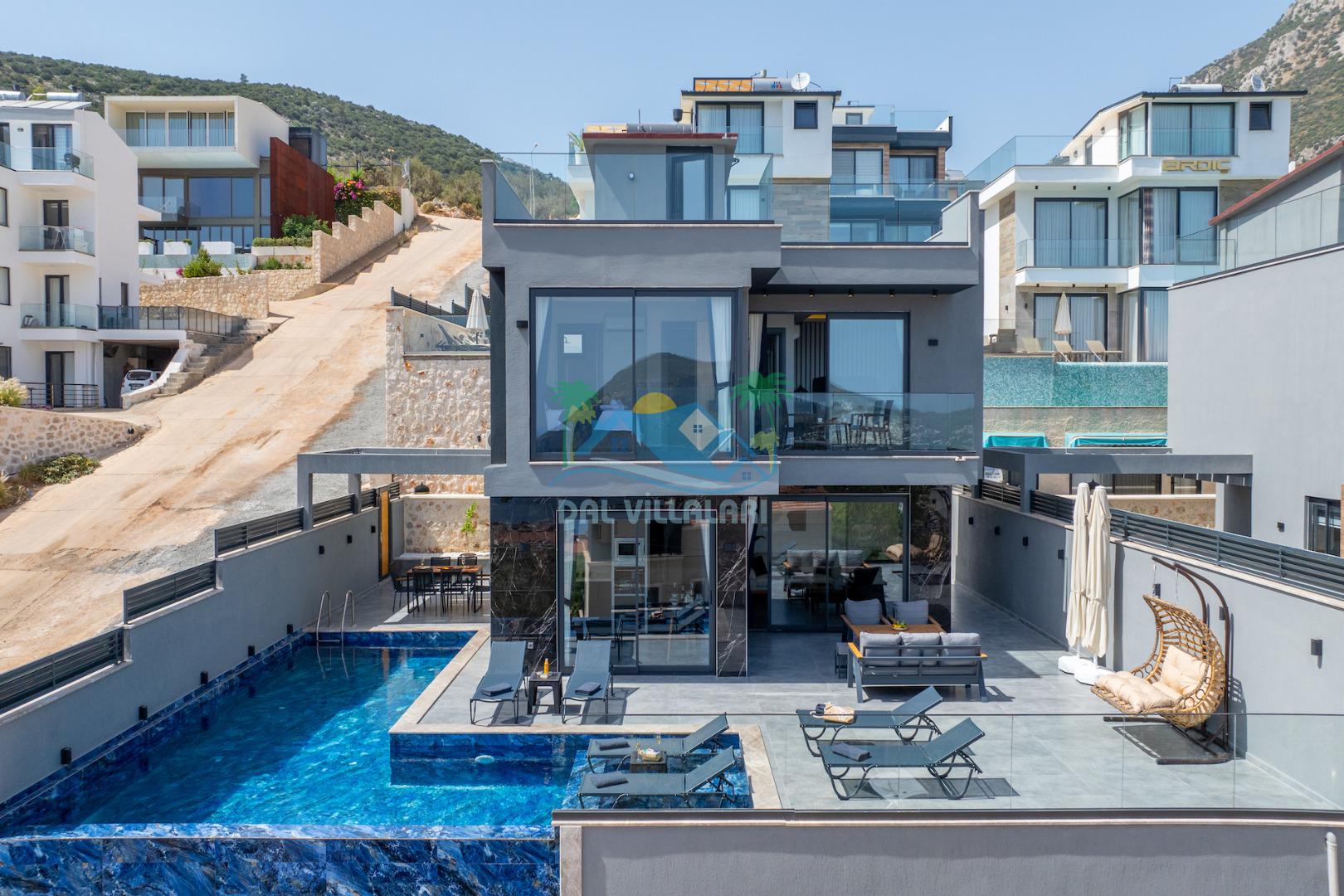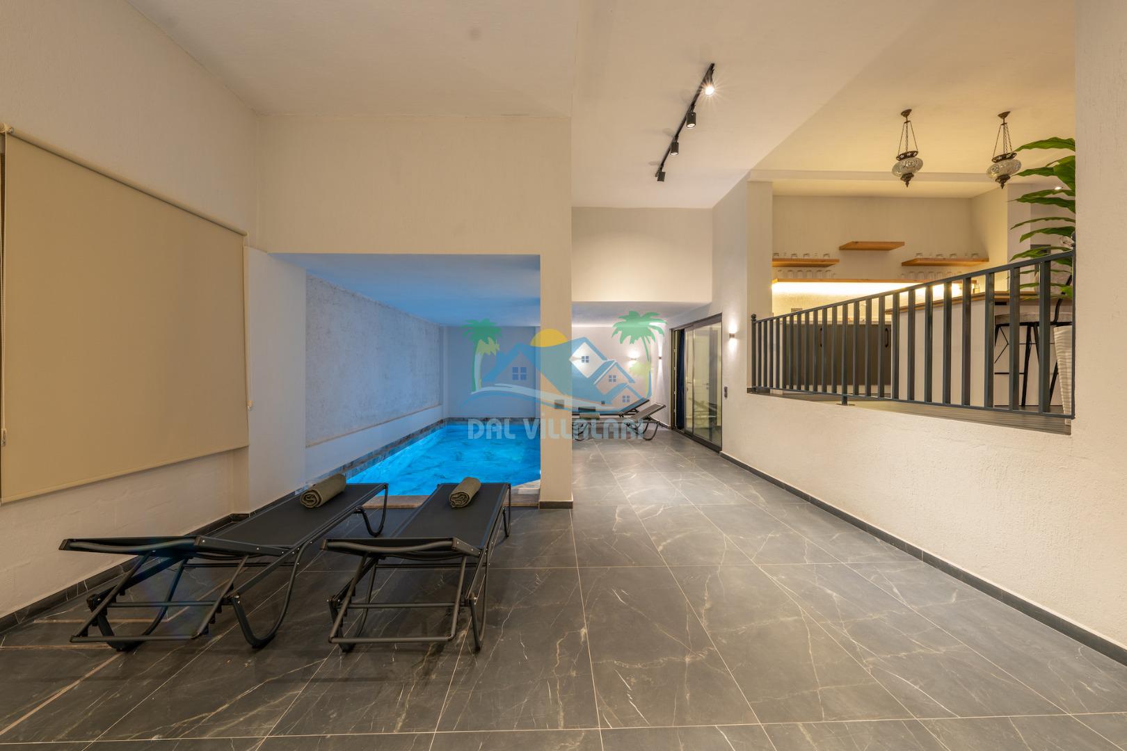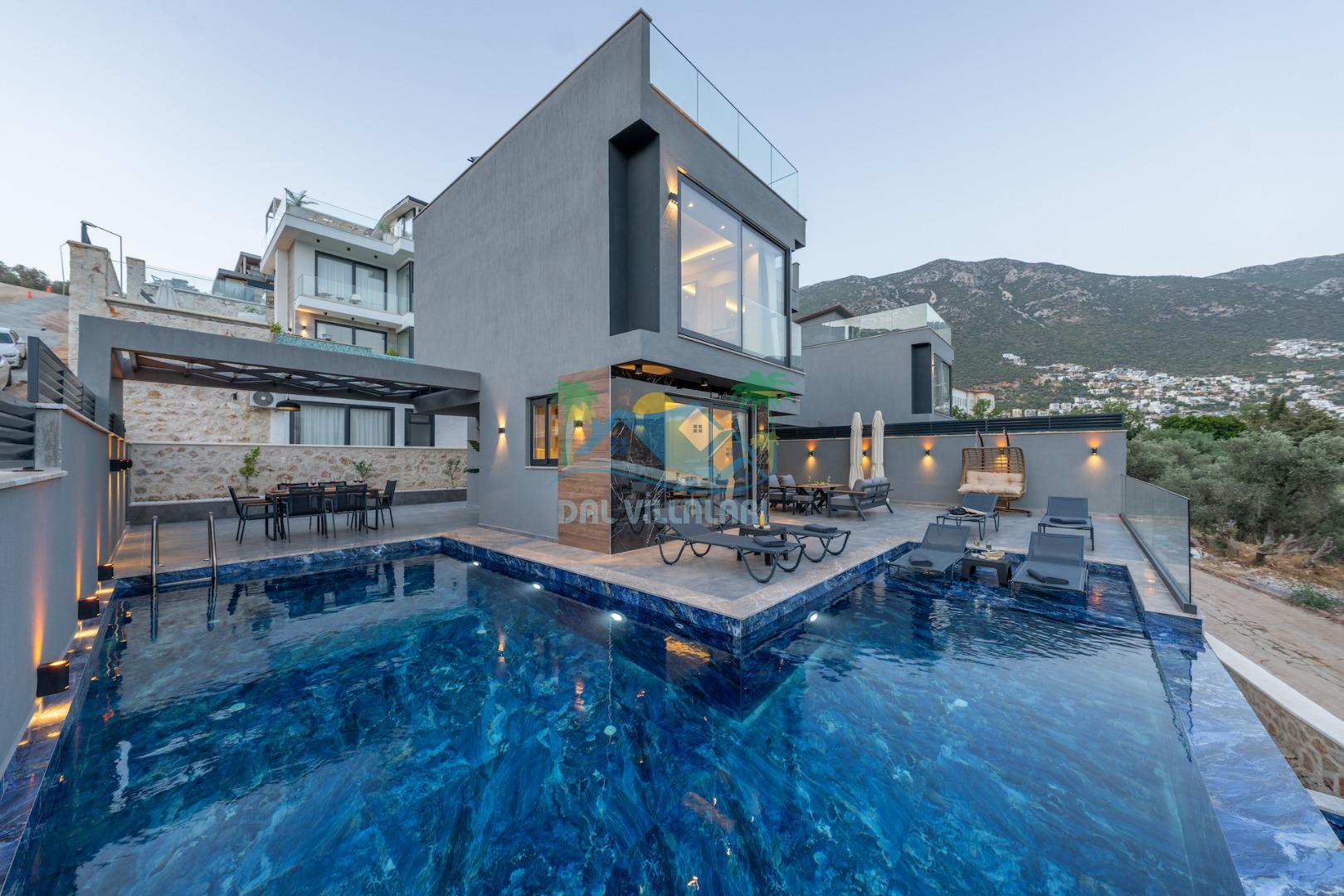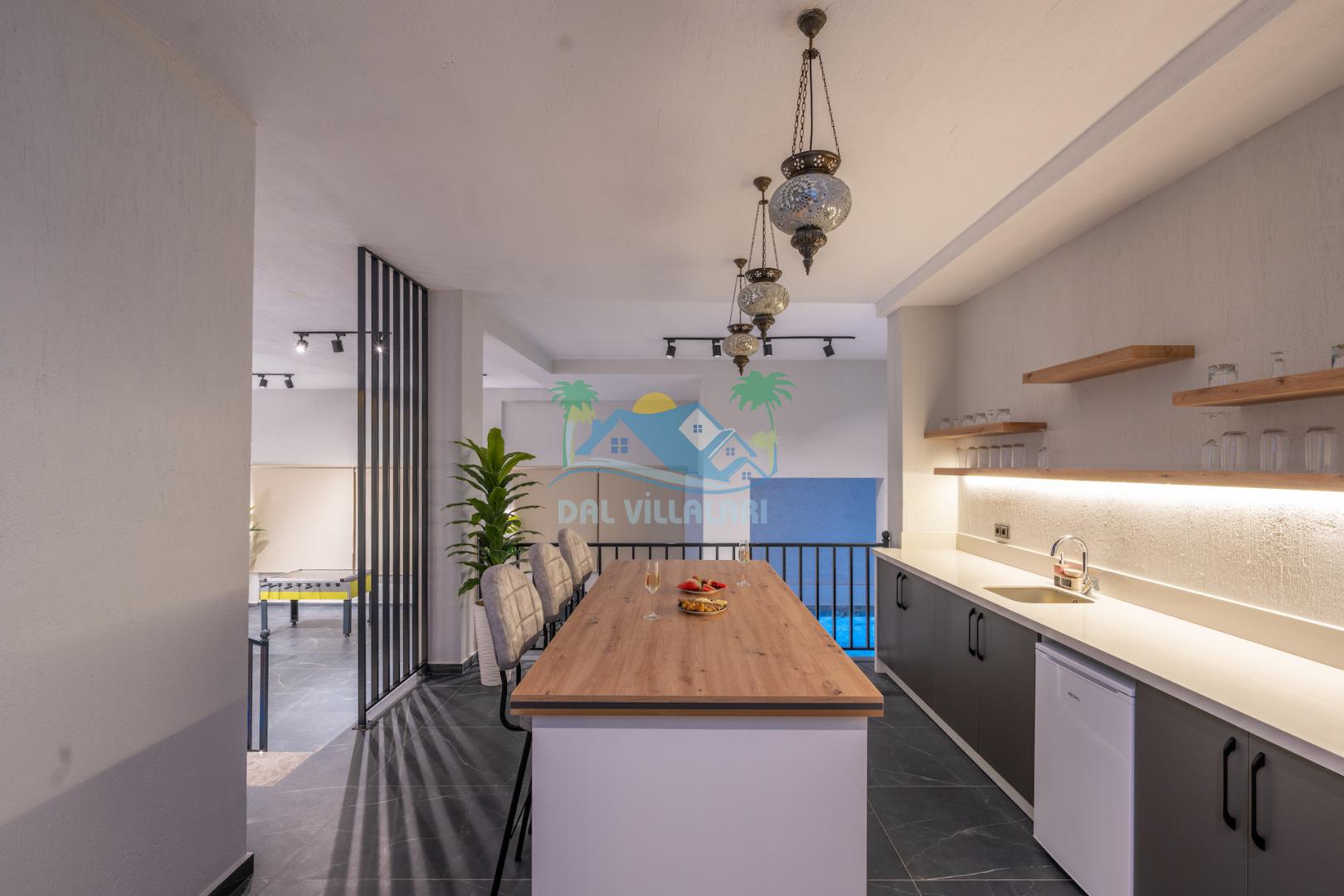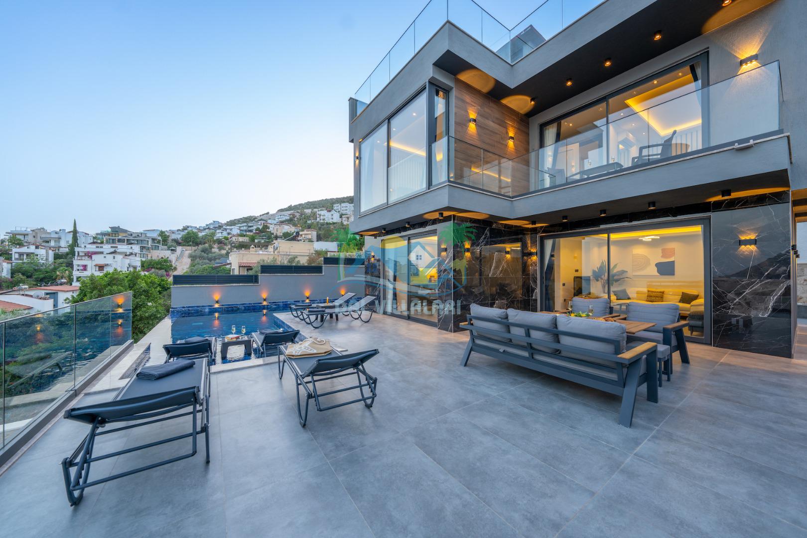 Villa Evren Kalkan'ın büyüleyici atmosferinde, muhteşem Akdeniz manzarasına hakim konumuyla tatilcilere büyük kolaylık sağlamaktadır . Hem iç hem dış havuzu bulunan bu etkileyici villa, sevdiklerinizle birlikte unutulmaz anılar biriktirmeniz için sizleri bekliyor.Kalkan merkezine sadece kısa bir mesafede bulunan Villa Evren, denizin mavisi ile doğanın yeşilinin kucaklaştığı eşsiz bir manzaraya sahiptir. Geniş terasında gün batımını izlerken, Akdeniz'in huzur veren esintisi eşliğinde dinlenebilirsiniz. Villamız, 4 geniş yatak odası ile 8 kişilik konaklama kapasitesine sahiptir. Her detay özenle düşünülerek dekore edilen odalar, konforlu yatakları ve modern tasarımları ile huzurlu bir uyku sunar. Özel banyolu odalar, misafirlerimizin mahremiyetine ve rahatına önem verilerek tasarlanmıştır. Tam donanımlı modern mutfağımız, tatiliniz boyunca ihtiyaç duyabileceğiniz her türlü ekipmanla donatılmıştır. Geniş yemek masasında aileniz ve arkadaşlarınızla keyifli yemekler yiyebilir, açık hava barbekü alanında mangal partileri düzenleyebilirsiniz. Şık ve ferah yaşam alanları ise günün yorgunluğunu atmanız için idealdir. Villamızda geçireceğiniz her anı daha özel kılmak için çeşitli eğlence ve aktivite imkanları sunuyoruz. Sinema odasında film keyfi yapabilir, villa çevresinde doğa yürüyüşleri yapabilir, Kalkan'ın tarihi ve kültürel zenginliklerini keşfe çıkabilirsiniz. Villa Evren iç havuz ölçüleri 6 metre boyunda 2.5 metre eninde olup 1.55 derinliğindedir.