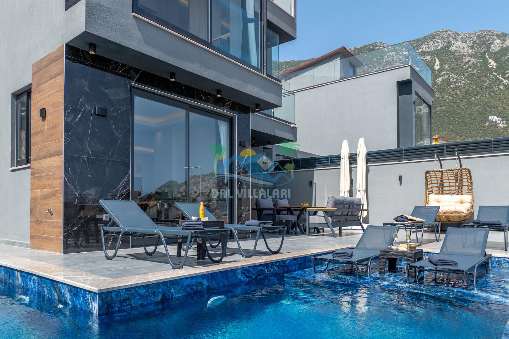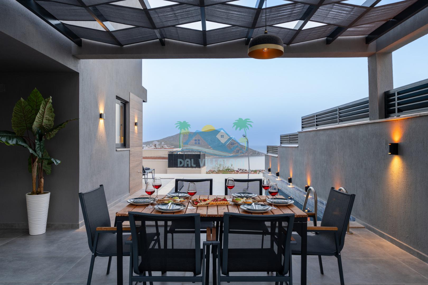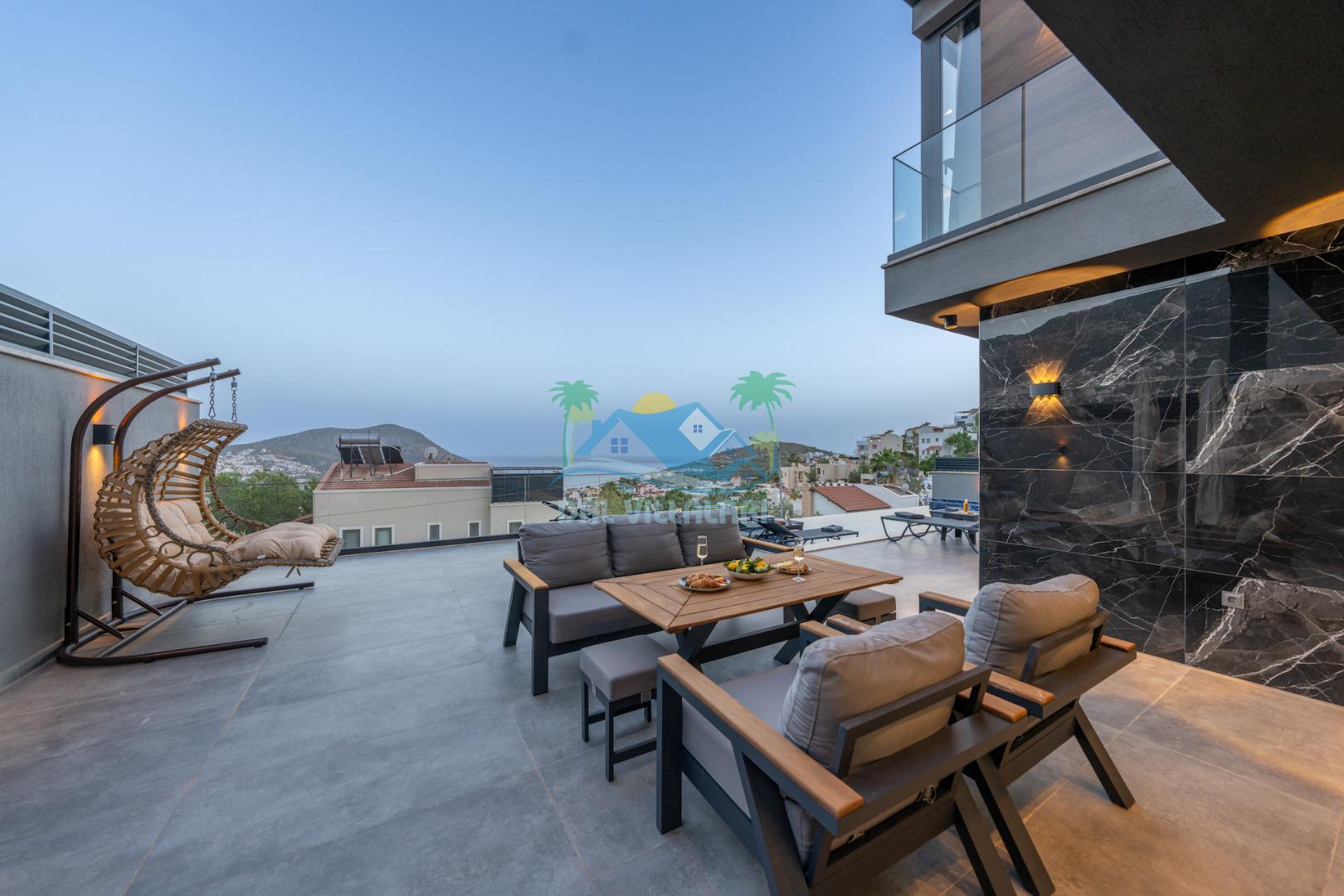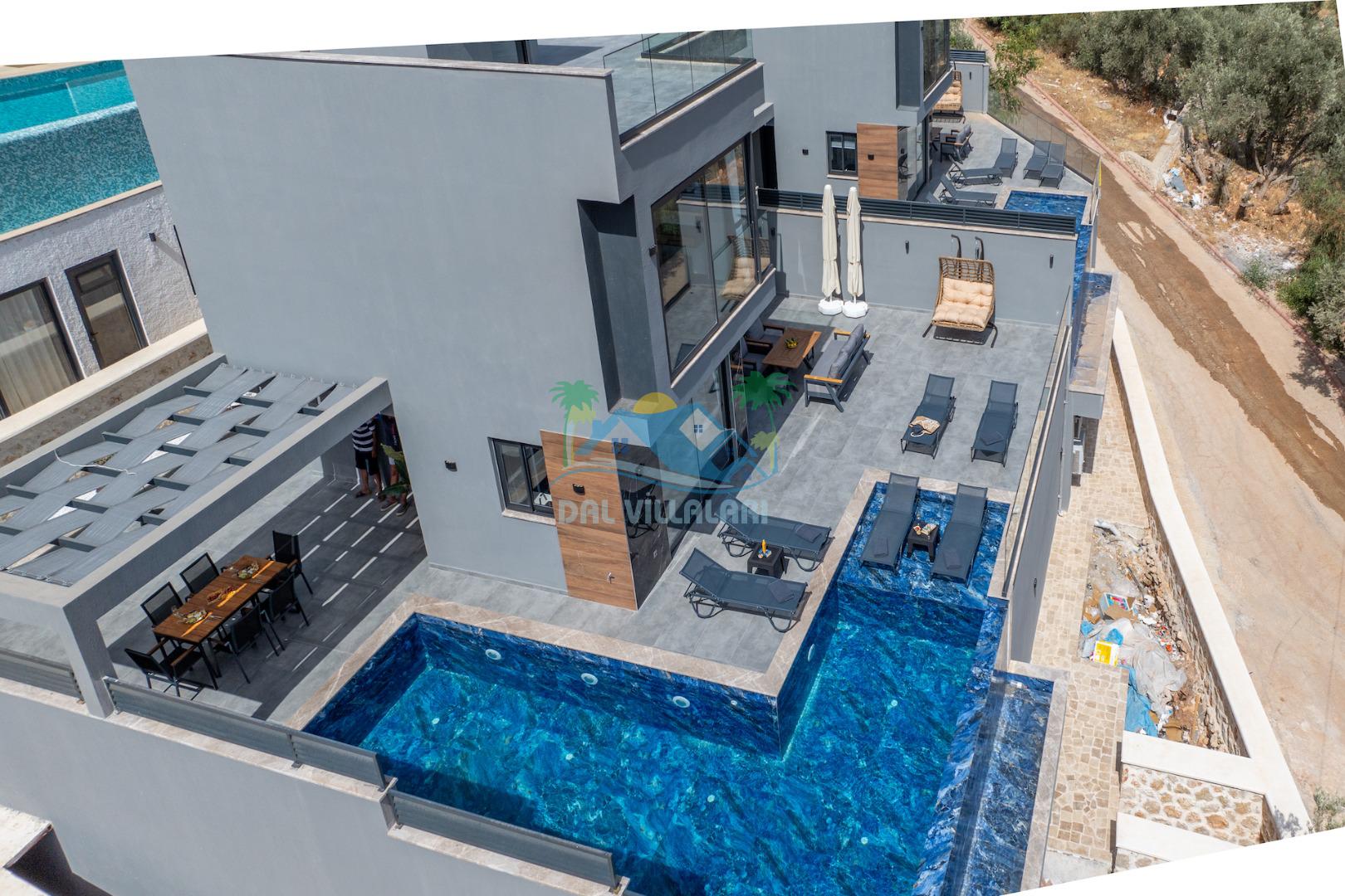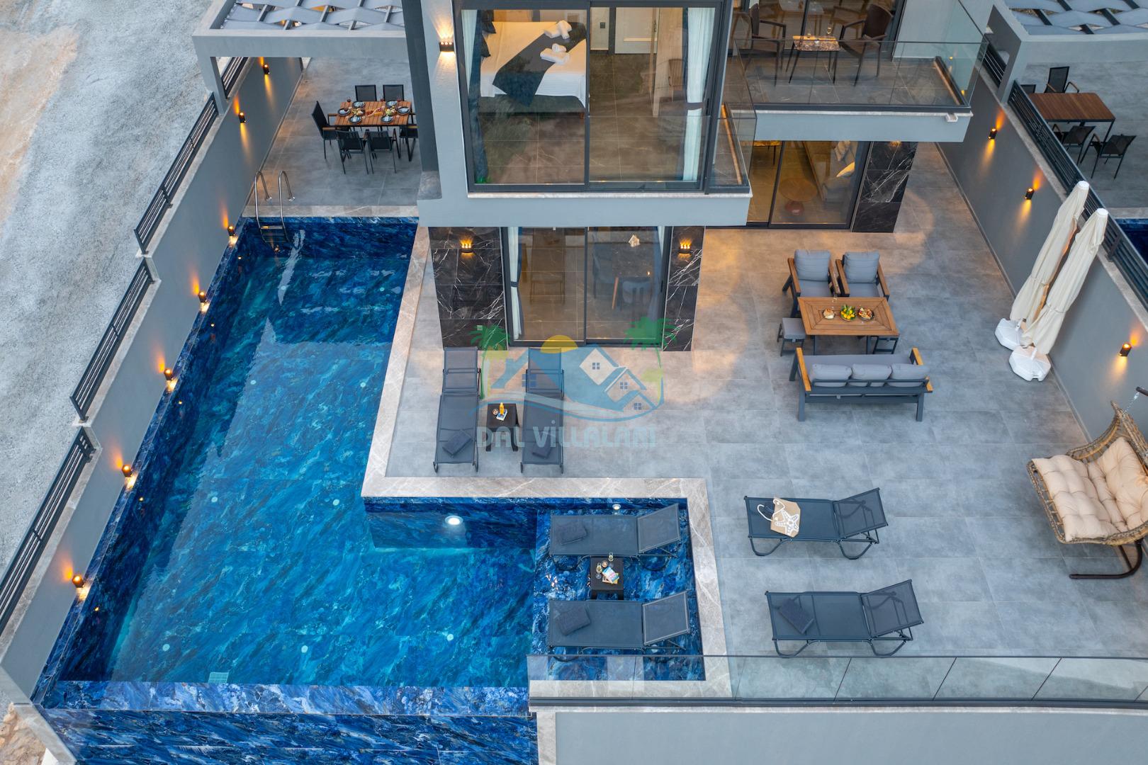Villa Evren Kalkan'ın büyüleyici atmosferinde, muhteşem Akdeniz manzarasına hakim konumuyla tatilcilere büyük kolaylık sağlamaktadır . Hem iç hem dış havuzu bulunan bu etkileyici villa, sevdiklerinizle birlikte unutulmaz anılar biriktirmeniz için sizleri bekliyor.Kalkan merkezine sadece kısa bir mesafede bulunan Villa Evren, denizin mavisi ile doğanın yeşilinin kucaklaştığı eşsiz bir manzaraya sahiptir. Geniş terasında gün batımını izlerken, Akdeniz'in huzur veren esintisi eşliğinde dinlenebilirsiniz. Villamız, 4 geniş yatak odası ile 8 kişilik konaklama kapasitesine sahiptir. Her detay özenle düşünülerek dekore edilen odalar, konforlu yatakları ve modern tasarımları ile huzurlu bir uyku sunar. Özel banyolu odalar, misafirlerimizin mahremiyetine ve rahatına önem verilerek tasarlanmıştır. Tam donanımlı modern mutfağımız, tatiliniz boyunca ihtiyaç duyabileceğiniz her türlü ekipmanla donatılmıştır. Geniş yemek masasında aileniz ve arkadaşlarınızla keyifli yemekler yiyebilir, açık hava barbekü alanında mangal partileri düzenleyebilirsiniz. Şık ve ferah yaşam alanları ise günün yorgunluğunu atmanız için idealdir. Villamızda geçireceğiniz her anı daha özel kılmak için çeşitli eğlence ve aktivite imkanları sunuyoruz. Sinema odasında film keyfi yapabilir, villa çevresinde doğa yürüyüşleri yapabilir, Kalkan'ın tarihi ve kültürel zenginliklerini keşfe çıkabilirsiniz. Villa Evren iç havuz ölçüleri 6 metre boyunda 2.5 metre eninde olup 1.55 derinliğindedir.