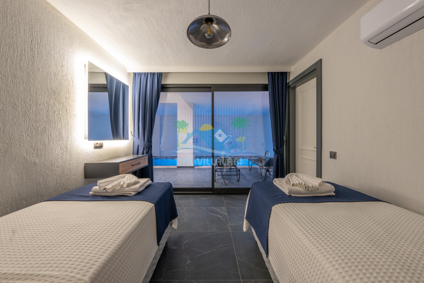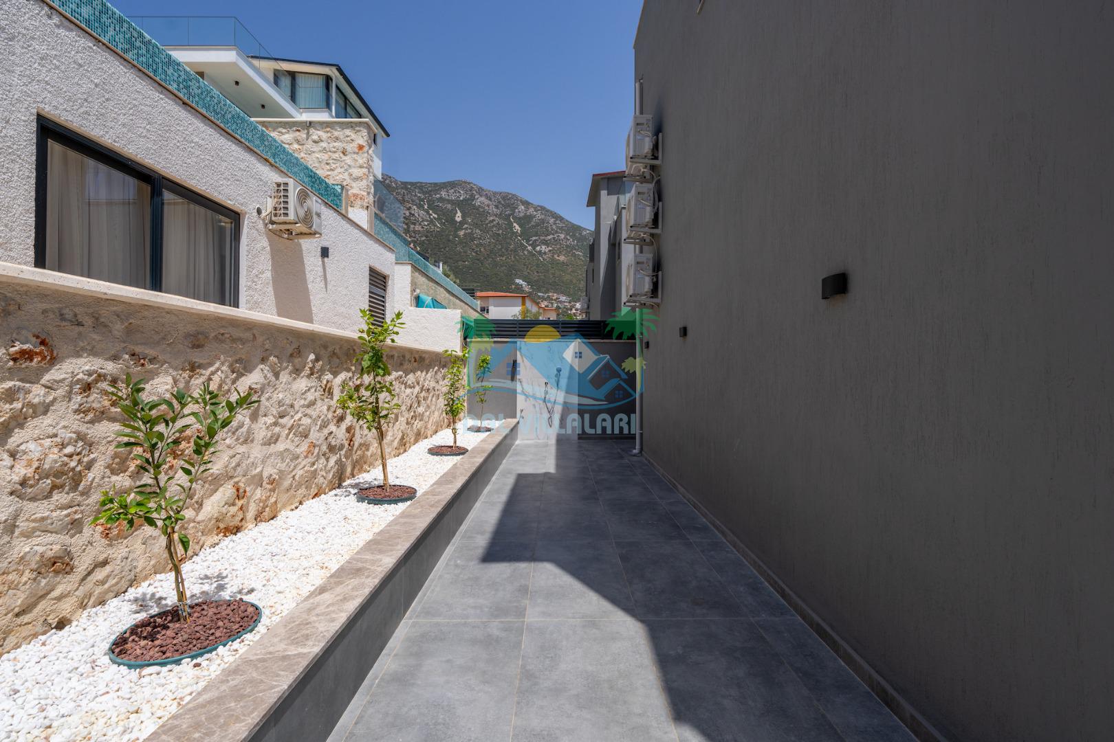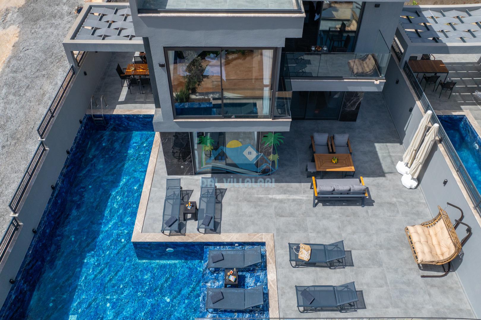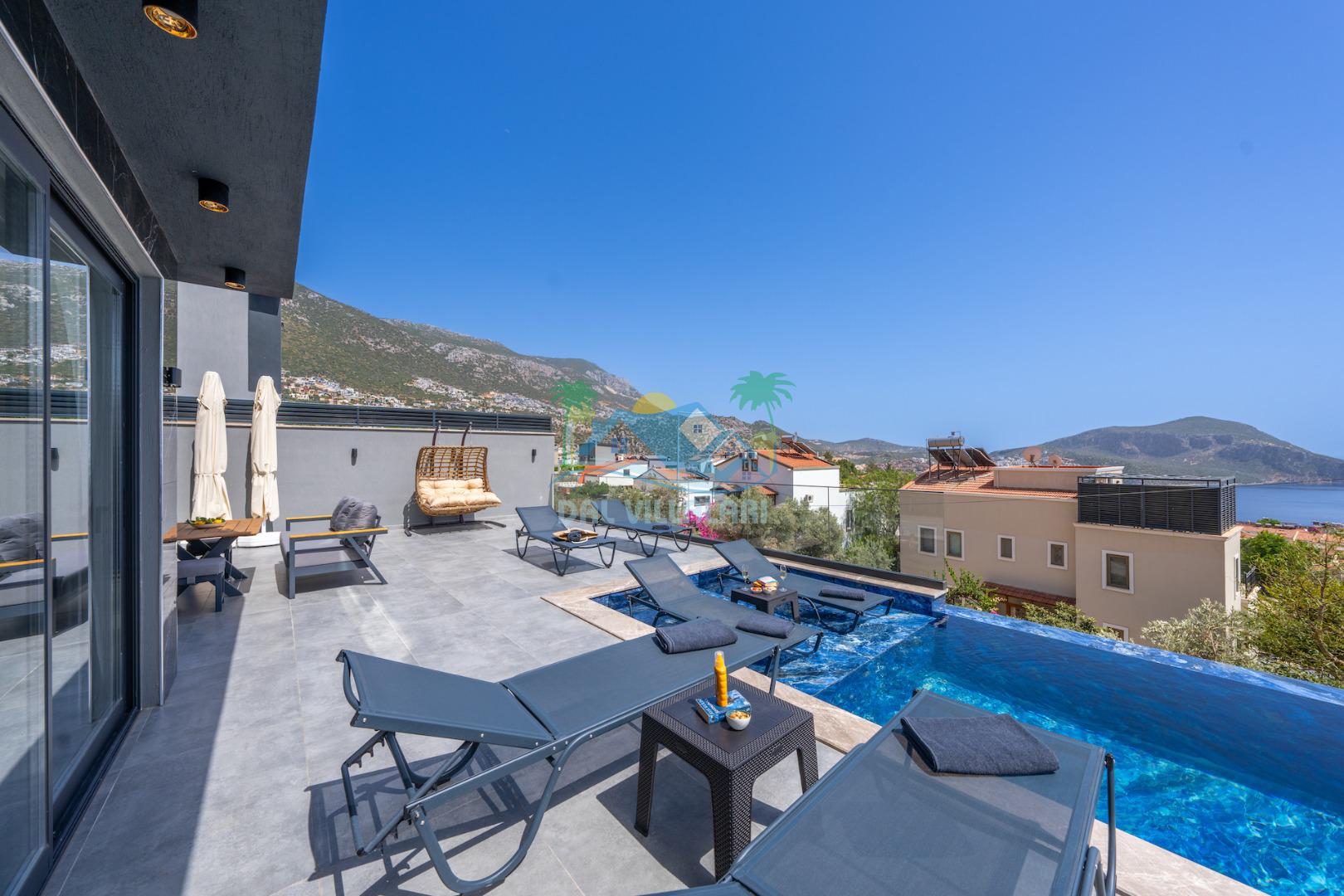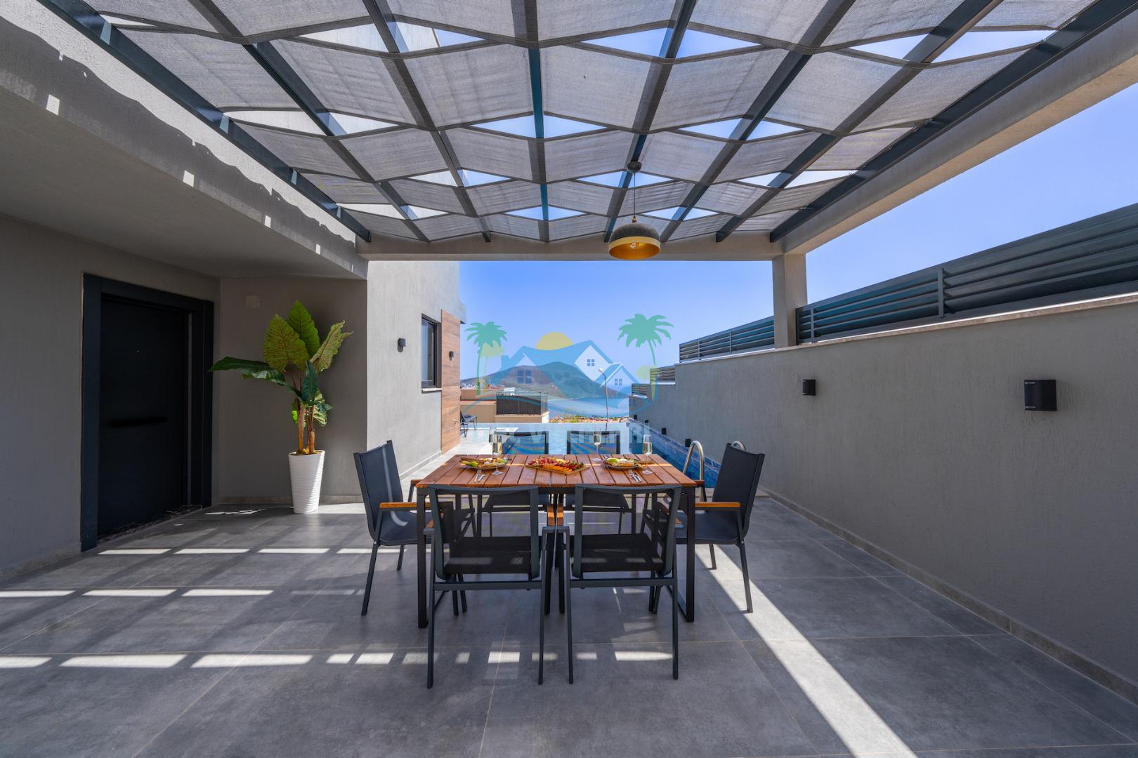 Villa Evren Kalkan'ın büyüleyici atmosferinde, muhteşem Akdeniz manzarasına hakim konumuyla tatilcilere büyük kolaylık sağlamaktadır . Hem iç hem dış havuzu bulunan bu etkileyici villa, sevdiklerinizle birlikte unutulmaz anılar biriktirmeniz için sizleri bekliyor.Kalkan merkezine sadece kısa bir mesafede bulunan Villa Evren, denizin mavisi ile doğanın yeşilinin kucaklaştığı eşsiz bir manzaraya sahiptir. Geniş terasında gün batımını izlerken, Akdeniz'in huzur veren esintisi eşliğinde dinlenebilirsiniz. Villamız, 4 geniş yatak odası ile 8 kişilik konaklama kapasitesine sahiptir. Her detay özenle düşünülerek dekore edilen odalar, konforlu yatakları ve modern tasarımları ile huzurlu bir uyku sunar. Özel banyolu odalar, misafirlerimizin mahremiyetine ve rahatına önem verilerek tasarlanmıştır. Tam donanımlı modern mutfağımız, tatiliniz boyunca ihtiyaç duyabileceğiniz her türlü ekipmanla donatılmıştır. Geniş yemek masasında aileniz ve arkadaşlarınızla keyifli yemekler yiyebilir, açık hava barbekü alanında mangal partileri düzenleyebilirsiniz. Şık ve ferah yaşam alanları ise günün yorgunluğunu atmanız için idealdir. Villamızda geçireceğiniz her anı daha özel kılmak için çeşitli eğlence ve aktivite imkanları sunuyoruz. Sinema odasında film keyfi yapabilir, villa çevresinde doğa yürüyüşleri yapabilir, Kalkan'ın tarihi ve kültürel zenginliklerini keşfe çıkabilirsiniz. Villa Evren iç havuz ölçüleri 6 metre boyunda 2.5 metre eninde olup 1.55 derinliğindedir.