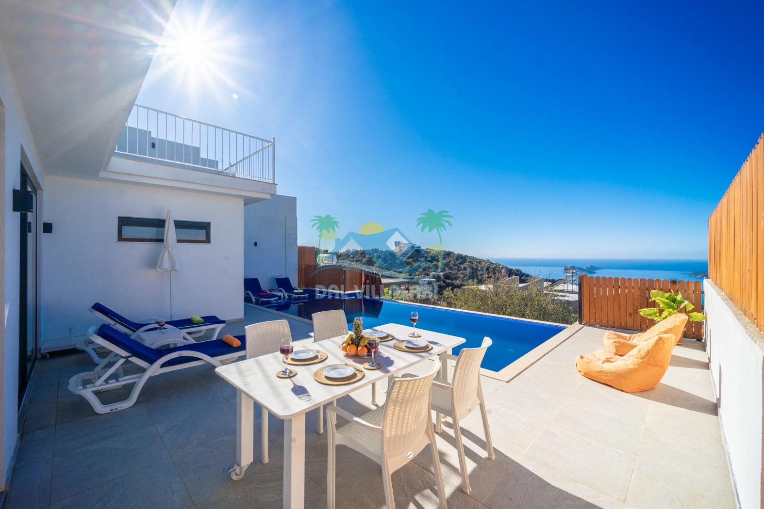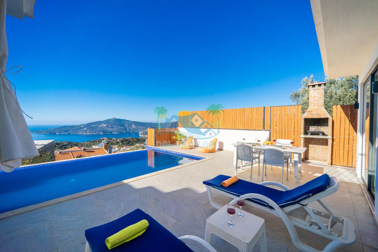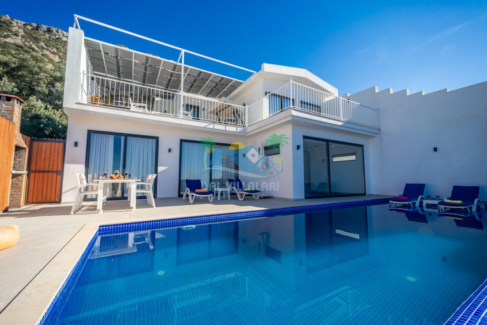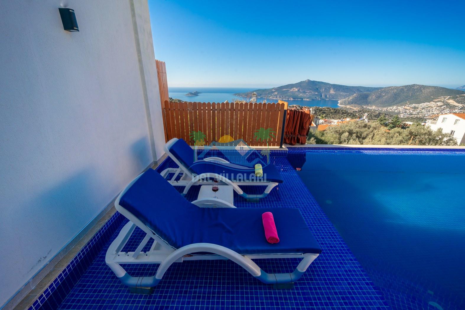 Kalkan Kördere mevkiinde konumlanmakta olan Villa Fantastik, deniz ve doğa manzarasına sahip kiralık villalarımız arasında yer almaktadır. Modern ve konforlu bir şekilde dekore edilen yazlık villamızda 2 adet yatak odası bulunmakta olup, 4 kişiye konaklama imkanı sağlamaktadır. Yatak odalarından bir tanesinin içerisinde tüm yılın vermiş olduğu yorgunluğu giderebileceğiniz jakuzi bulunmaktadır. Aynı zamanda kış aylarında da tatil planı yapan misafirlerimiz için kiralık villamızda jakuzili kapalı ısıtma havuzu yer almaktadır. Villamızın dış özel yüzme havuzuna entegre sığ havuz mevcuttur. Havuz ve havuz terası korunaklı hale getirilen kiralık villamızı muhafazakar aileler ve balayı çiftleri rahatlıkla tercih edebililer. Sessizlik ve sakinlik çerisinde hayallerinizin de ötesinde keyif dolu bir yazlık villada tatil için Villa Fantastik' i tercih edebilirsiniz.