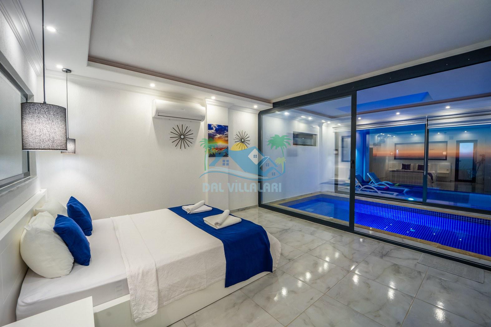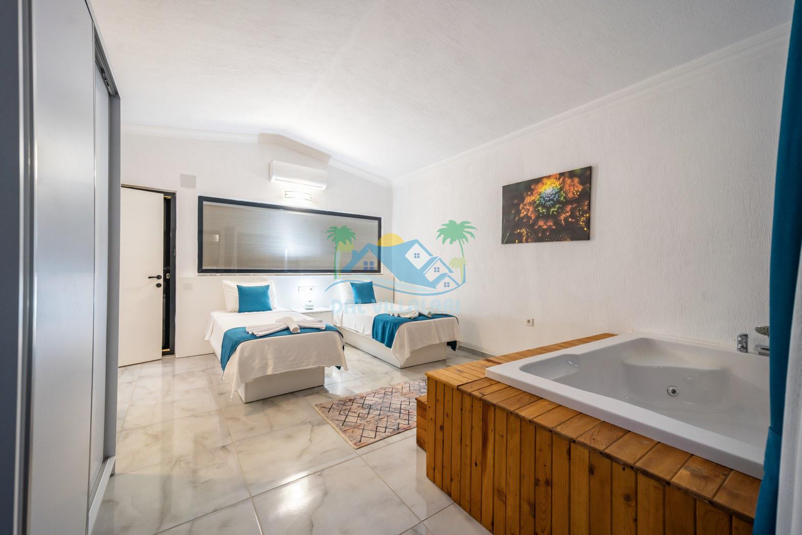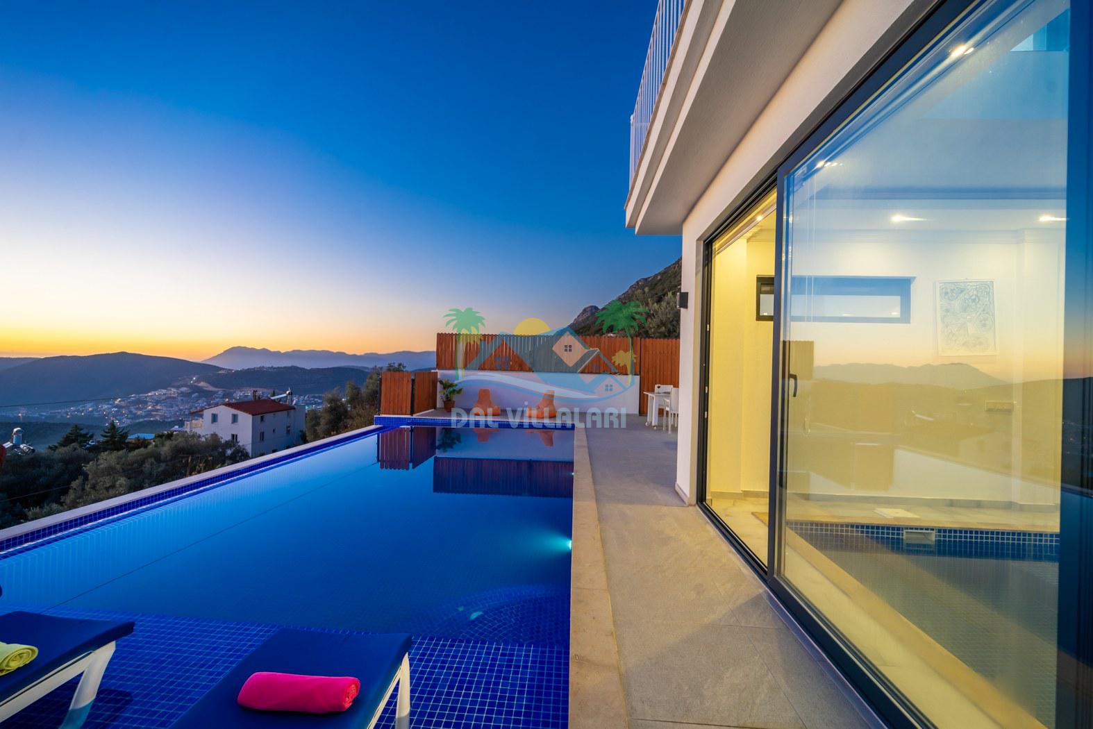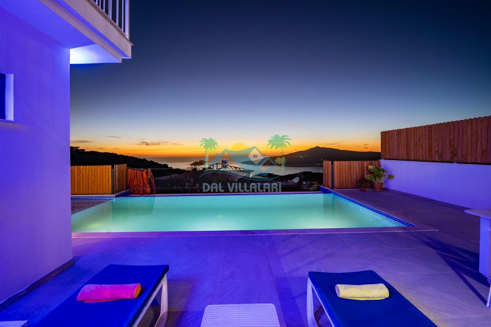 Kalkan Kördere mevkiinde konumlanmakta olan Villa Fantastik, deniz ve doğa manzarasına sahip kiralık villalarımız arasında yer almaktadır. Modern ve konforlu bir şekilde dekore edilen yazlık villamızda 2 adet yatak odası bulunmakta olup, 4 kişiye konaklama imkanı sağlamaktadır. Yatak odalarından bir tanesinin içerisinde tüm yılın vermiş olduğu yorgunluğu giderebileceğiniz jakuzi bulunmaktadır. Aynı zamanda kış aylarında da tatil planı yapan misafirlerimiz için kiralık villamızda jakuzili kapalı ısıtma havuzu yer almaktadır. Villamızın dış özel yüzme havuzuna entegre sığ havuz mevcuttur. Havuz ve havuz terası korunaklı hale getirilen kiralık villamızı muhafazakar aileler ve balayı çiftleri rahatlıkla tercih edebililer. Sessizlik ve sakinlik çerisinde hayallerinizin de ötesinde keyif dolu bir yazlık villada tatil için Villa Fantastik' i tercih edebilirsiniz.