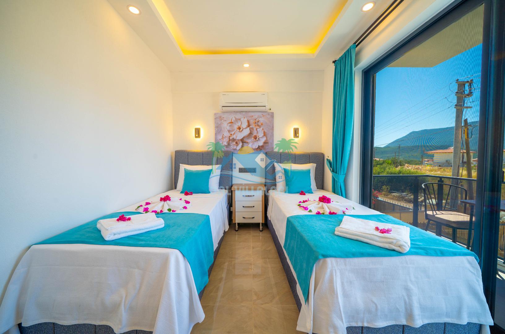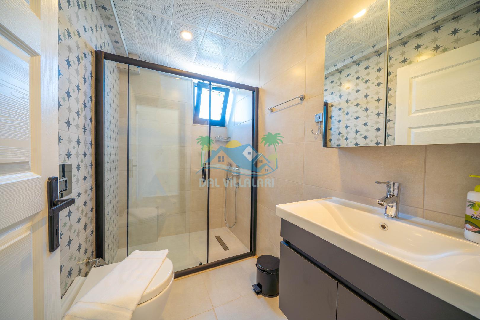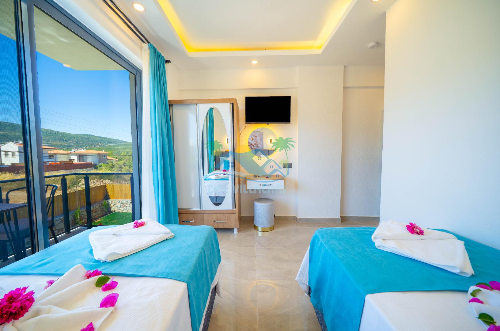 3 suit yatak odalı villamız 6 kişiye kadar konaklama imkanı sunmaktadır. 2 adet double yatak ve 2 adet single yataktan oluşan villamızın her 3 yatak odasında özel banyo tuvalet ve klima, bir yatak odasında jakuzi bulunmaktadır.