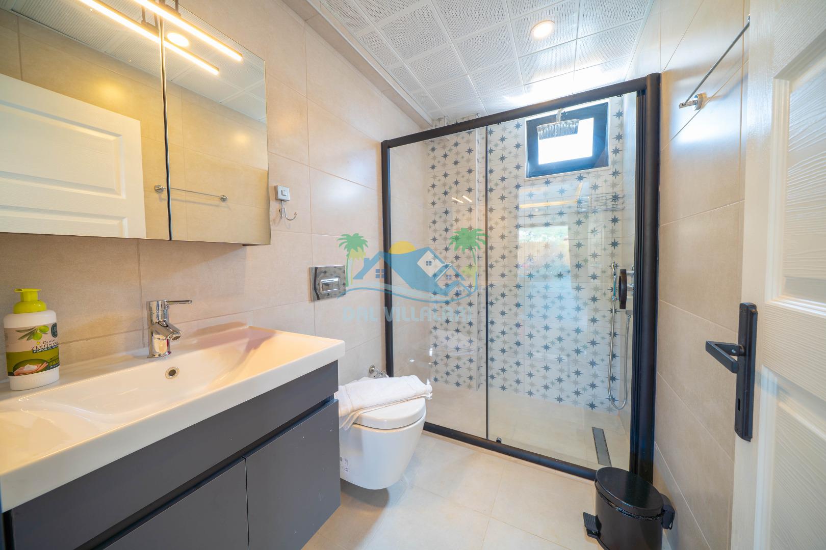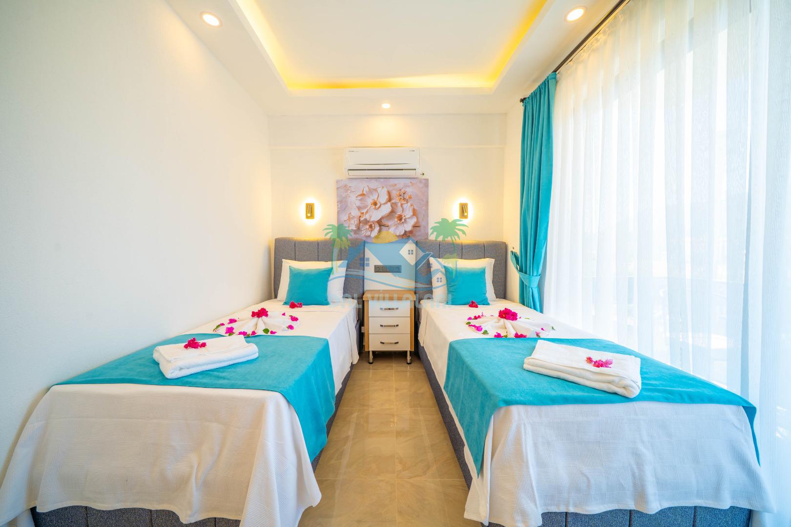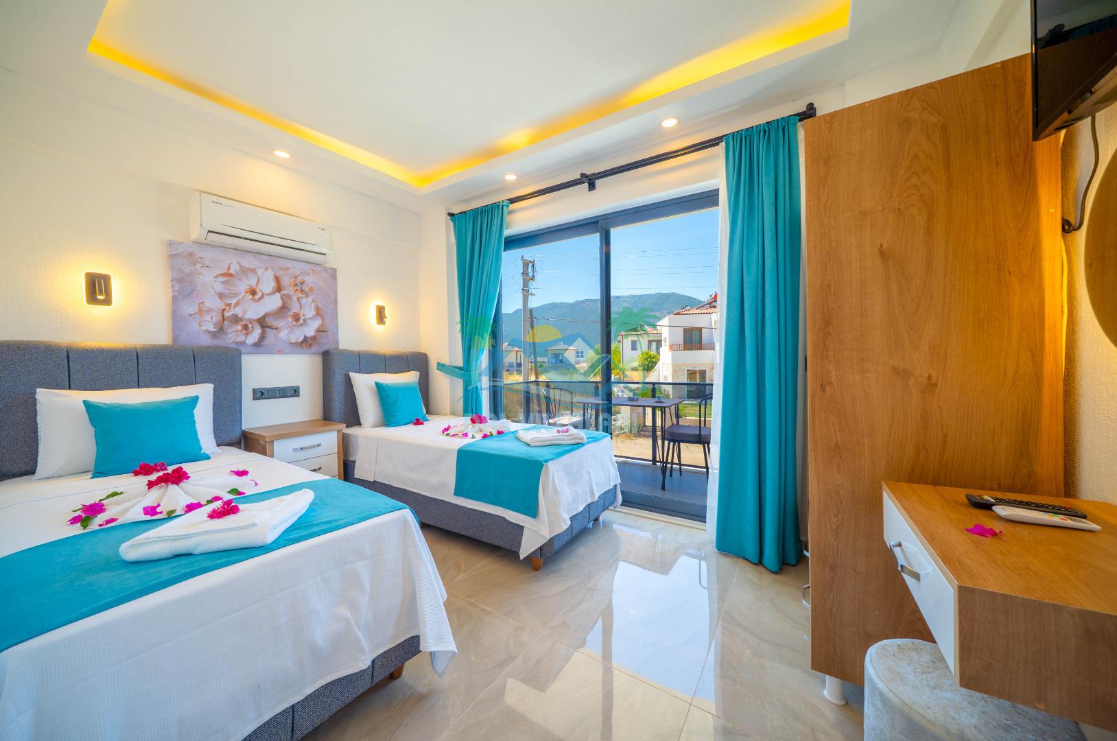 3 suit yatak odalı villamız 6 kişiye kadar konaklama imkanı sunmaktadır. 2 adet double yatak ve 2 adet single yataktan oluşan villamızın her 3 yatak odasında özel banyo tuvalet ve klima, bir yatak odasında jakuzi bulunmaktadır.