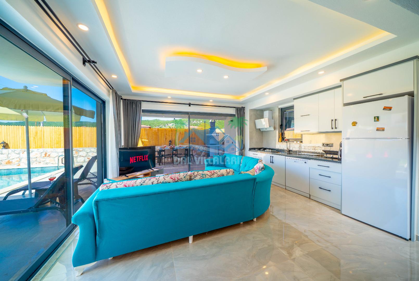 Modern mimariye keyifli ve konforlu yaşam alanlarına sahip villamız Kaş merkez ve plajlara 6-8 kilometre, market restoran ve otogara ise yürüyüş mesafesindedir.