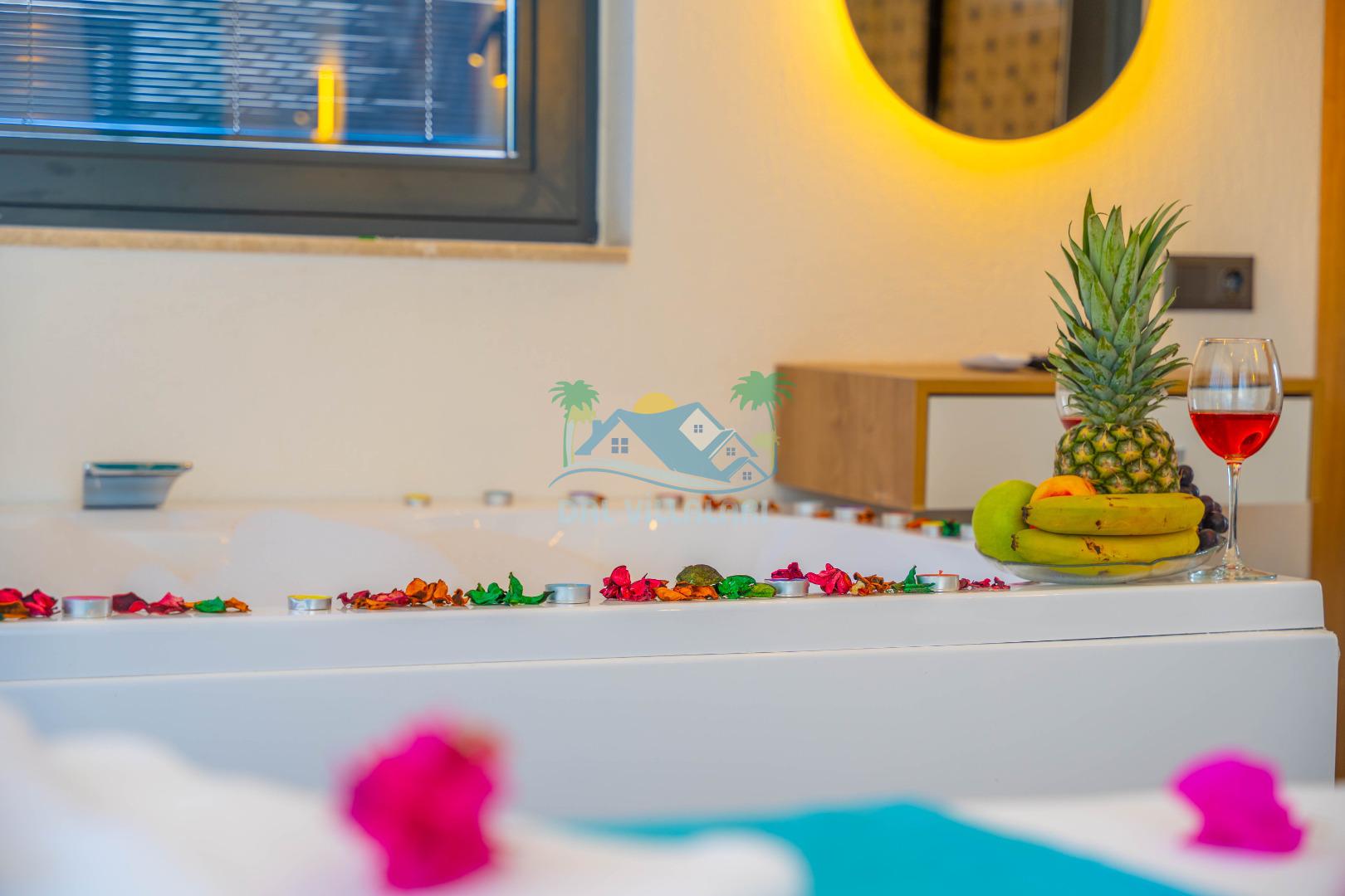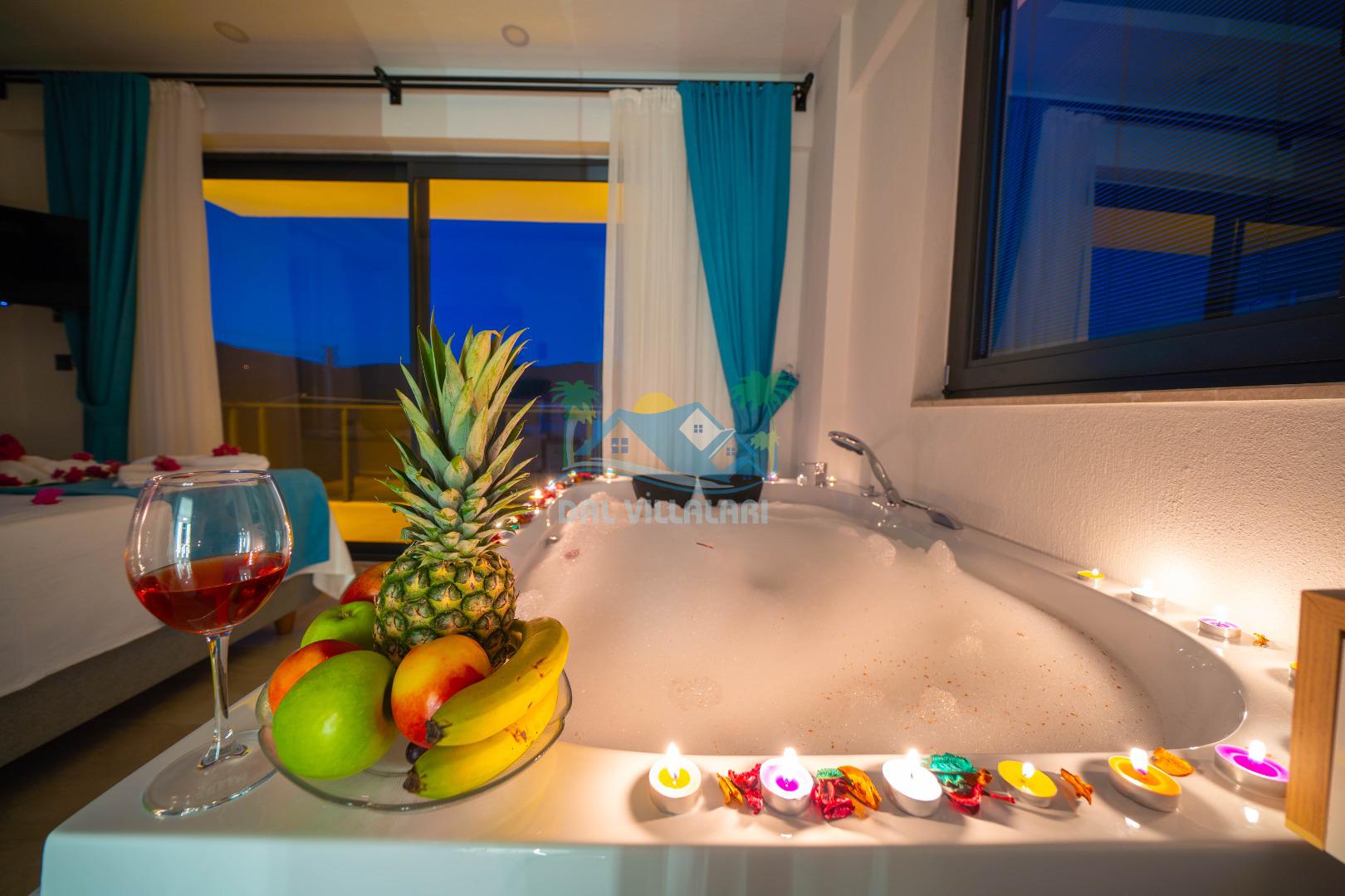 Jakuzili villa, korunaklı villa ve balayı villası seçeneklerimiz arasında yer alan villamız, balayı çiftleri ve çekirdek aileler için ideal bir tatil villası seçeneği sunmaktadır.
