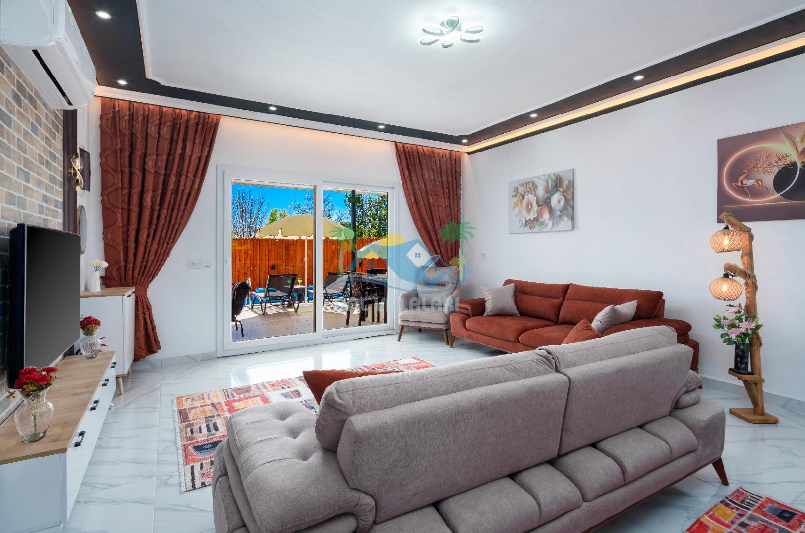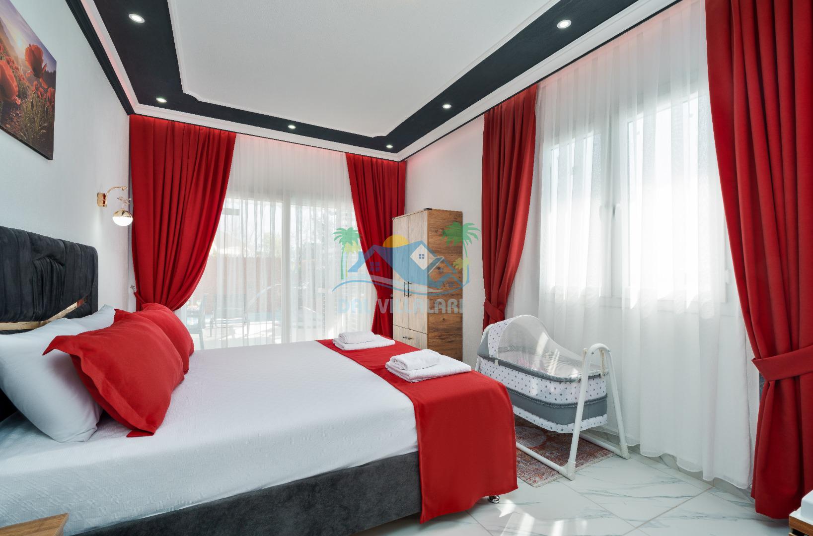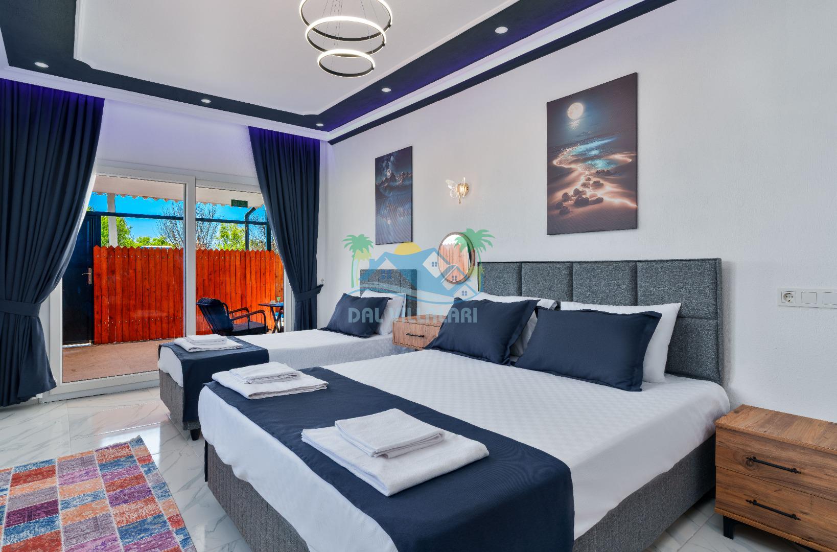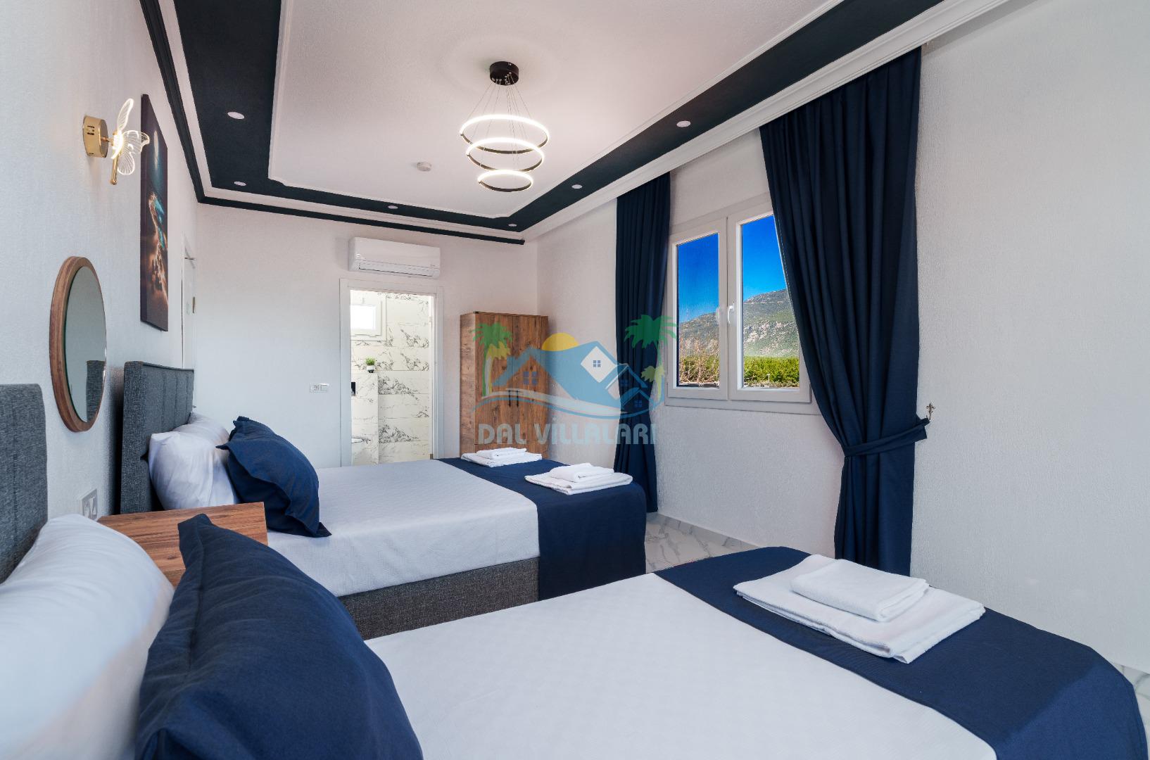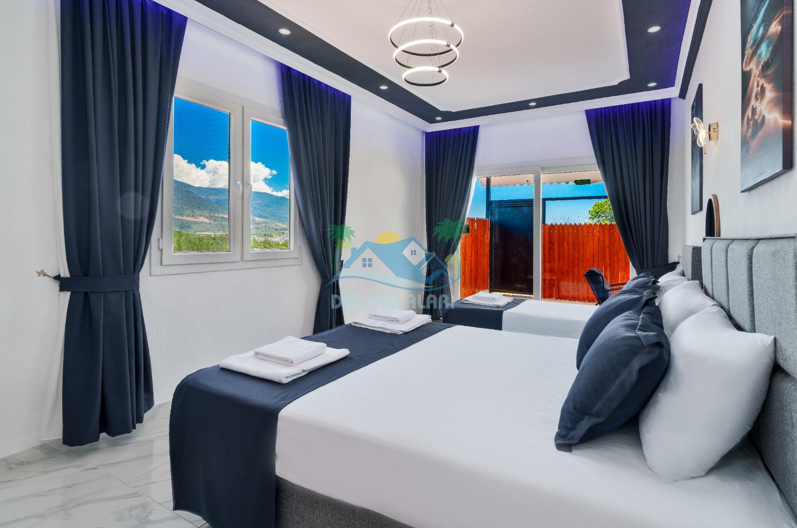 Modern detaylarla dizayn edilen villa iç mekânı, konforlu bir tatil için ihtiyaç duyulan tüm donanımlara sahiptir. Geniş salon, kullanışlı mutfak ve rahat yatak odaları sayesinde misafirlerimiz ev konforunda bir konaklama deneyimi yaşayabilirler.