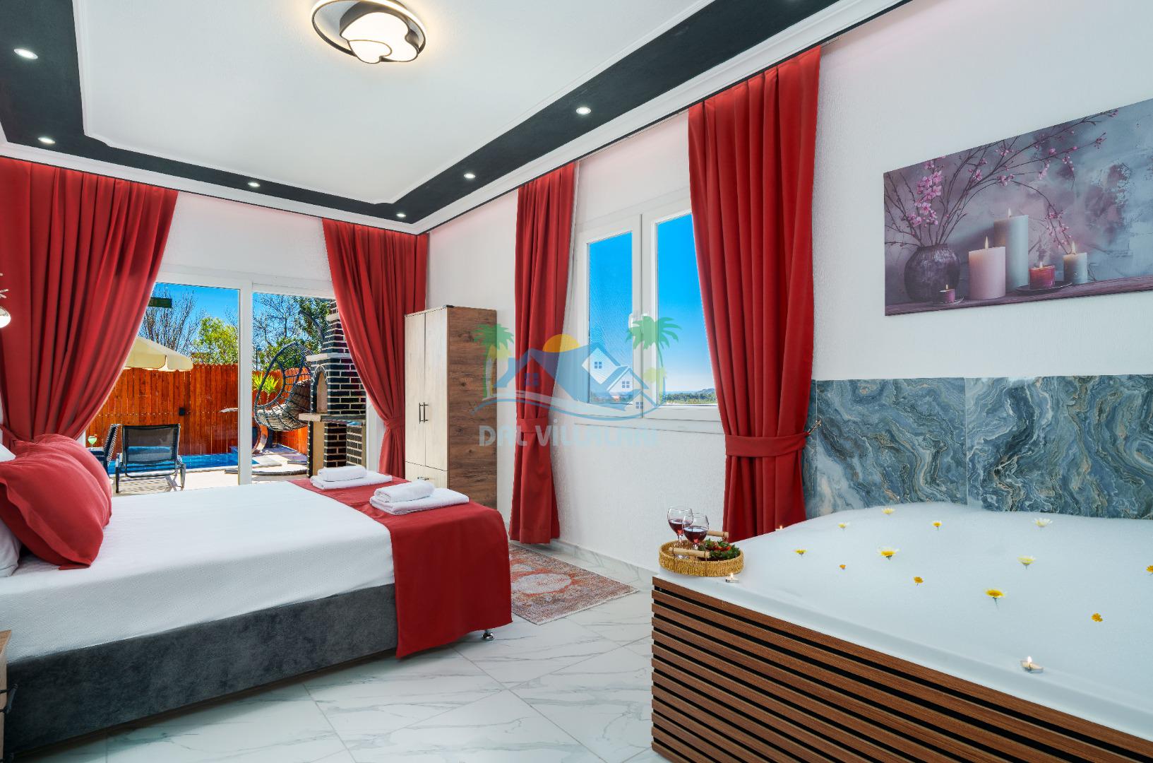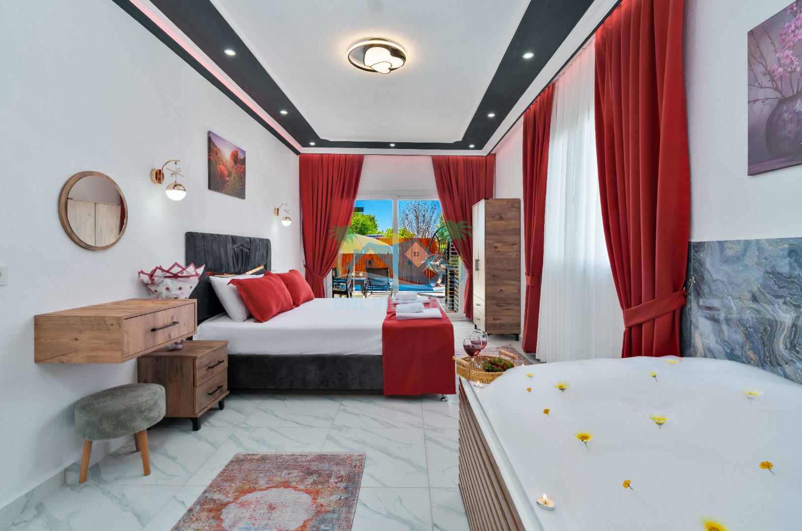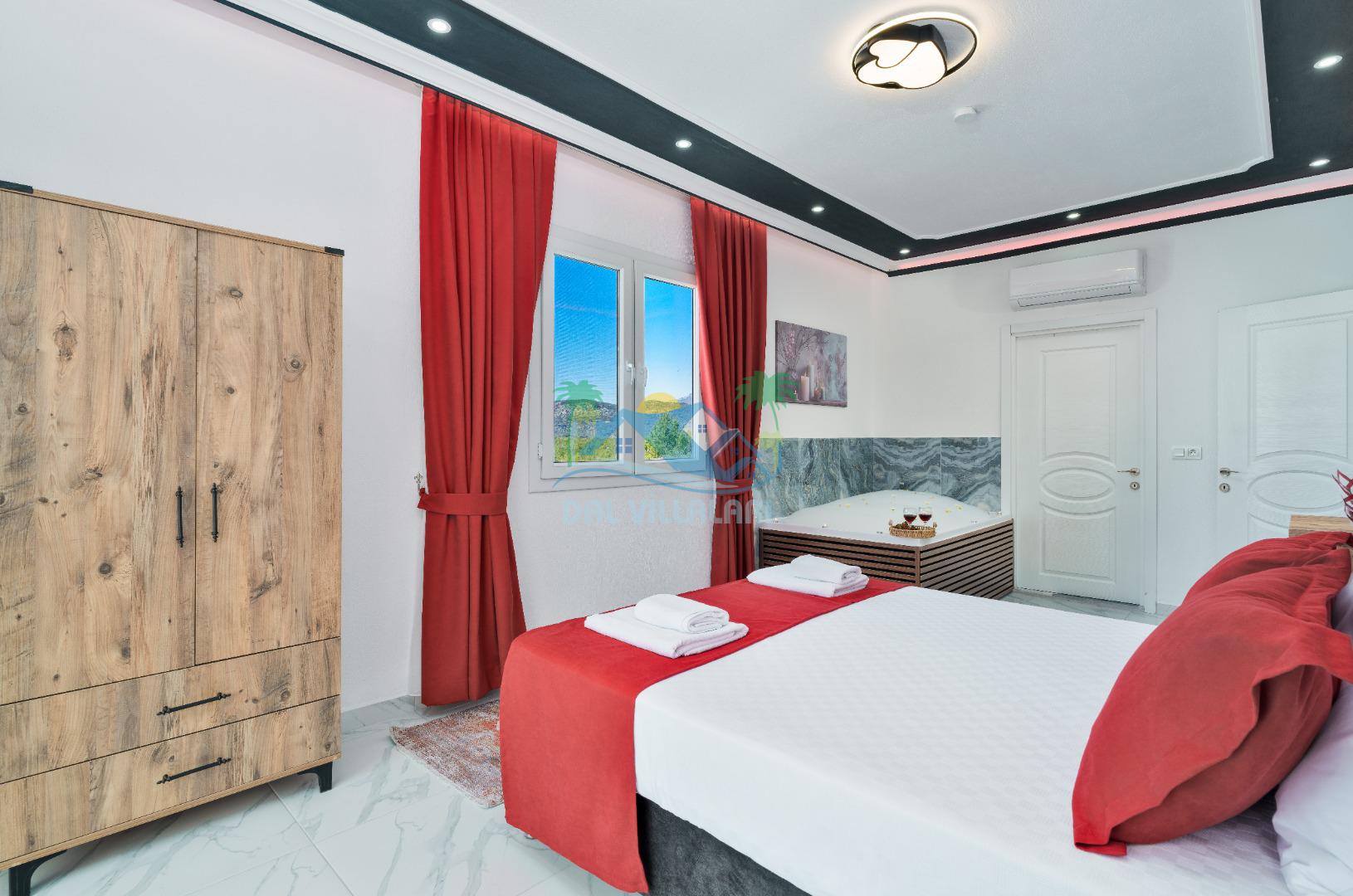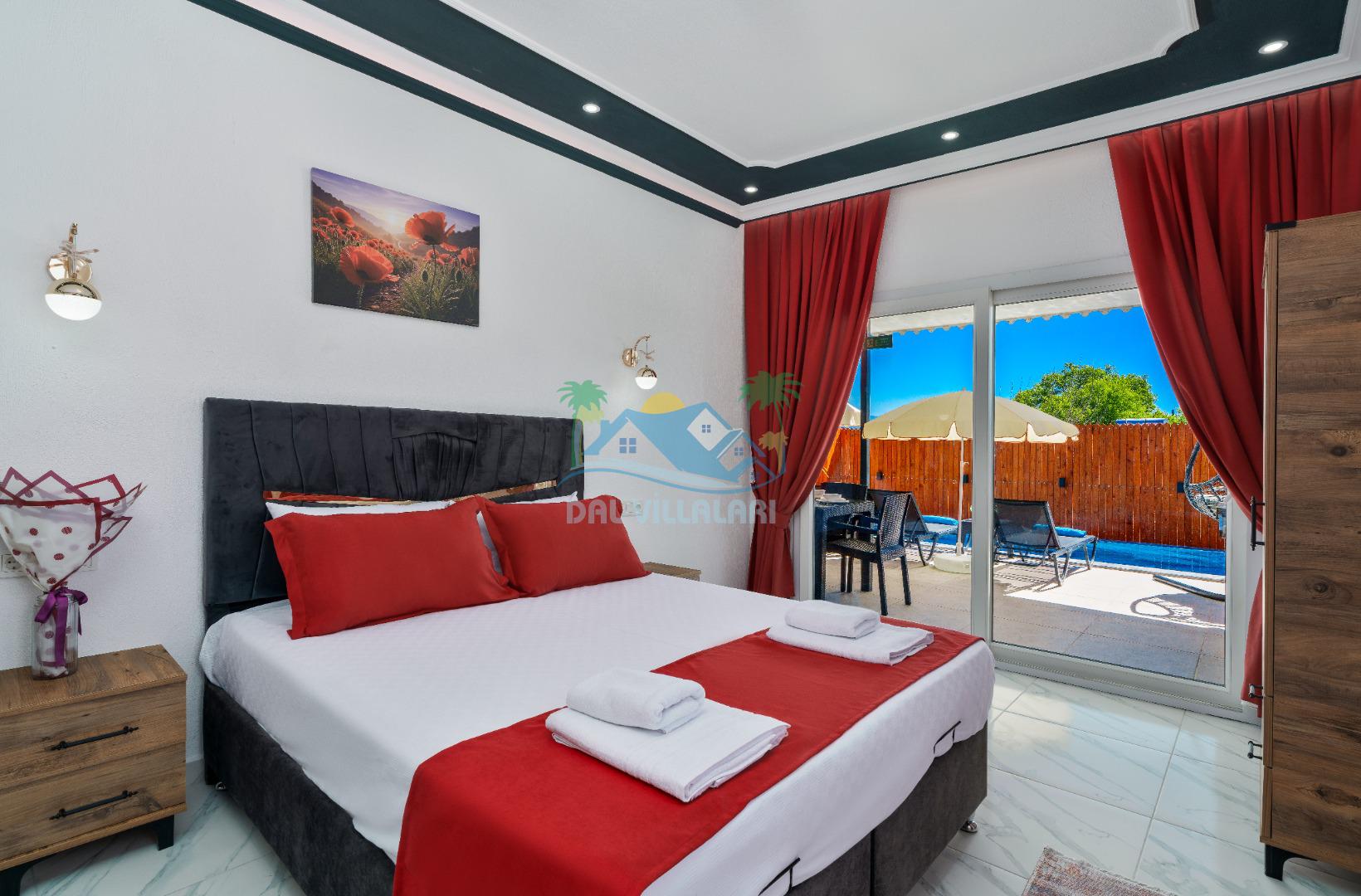 Modern detaylarla dizayn edilen villa iç mekânı, konforlu bir tatil için ihtiyaç duyulan tüm donanımlara sahiptir. Geniş salon, kullanışlı mutfak ve rahat yatak odaları sayesinde misafirlerimiz ev konforunda bir konaklama deneyimi yaşayabilirler.