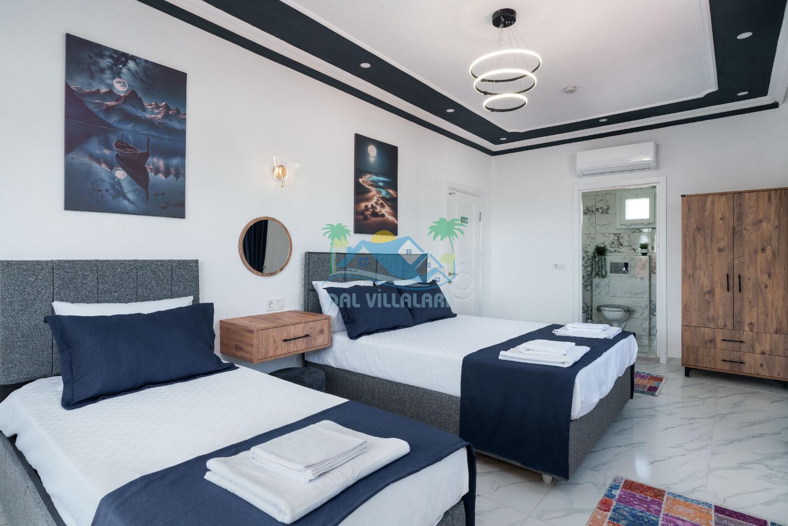 Toplamda 2 yatak odasına sahip olan villamızda her iki odada da özel banyo ve tuvalet bulunmaktadır. Kullanışlı oda yapısı ve ferah iç tasarımı sayesinde aile konaklamaları için rahat ve düzenli bir yaşam alanı sunulmaktadır.