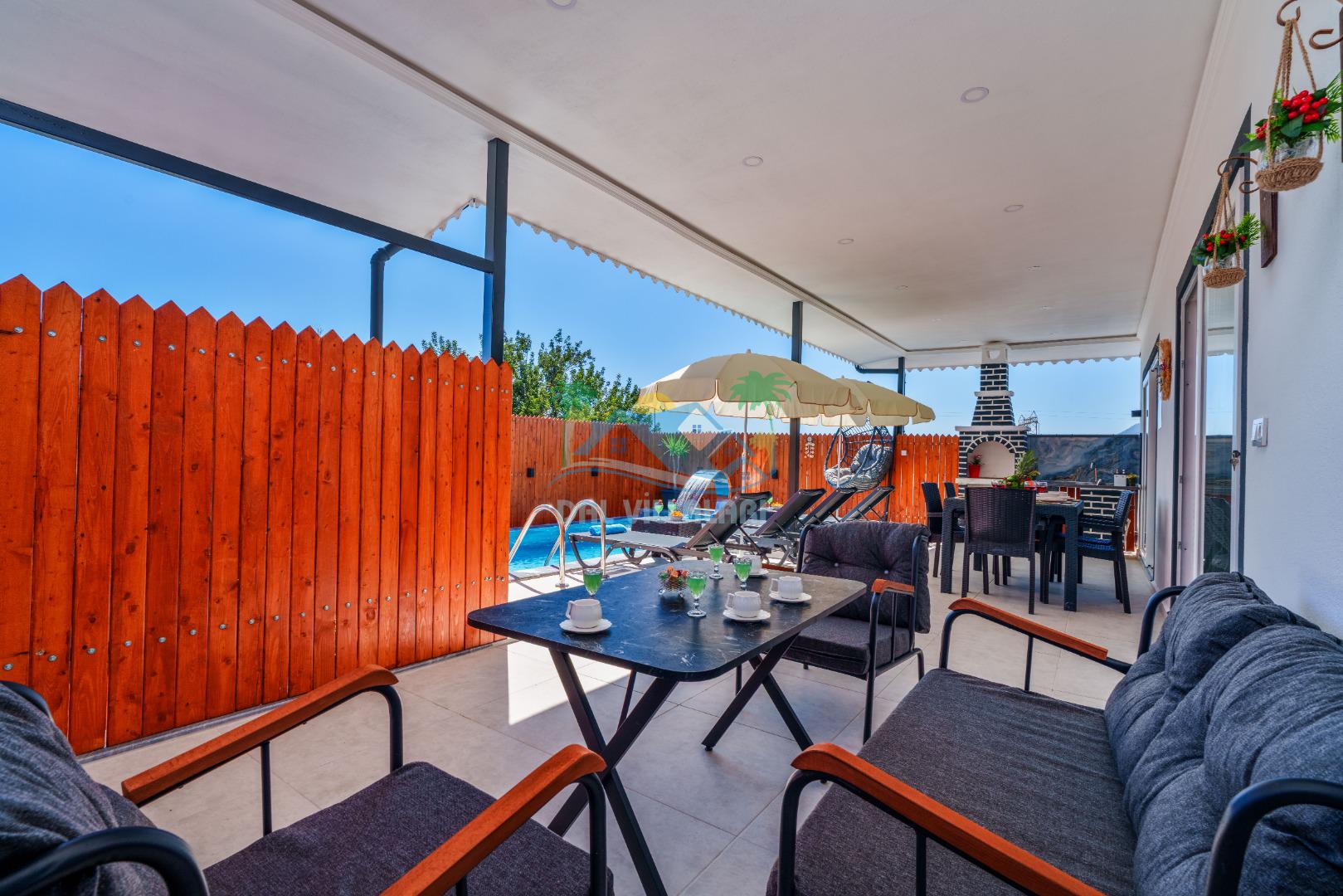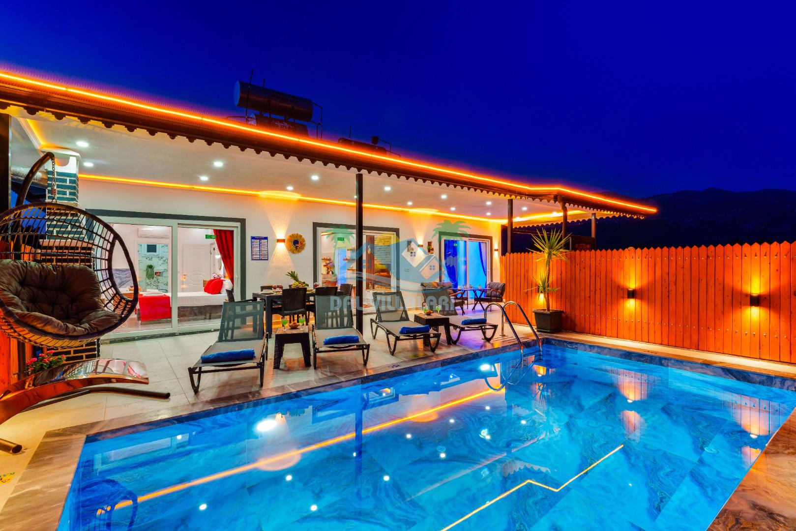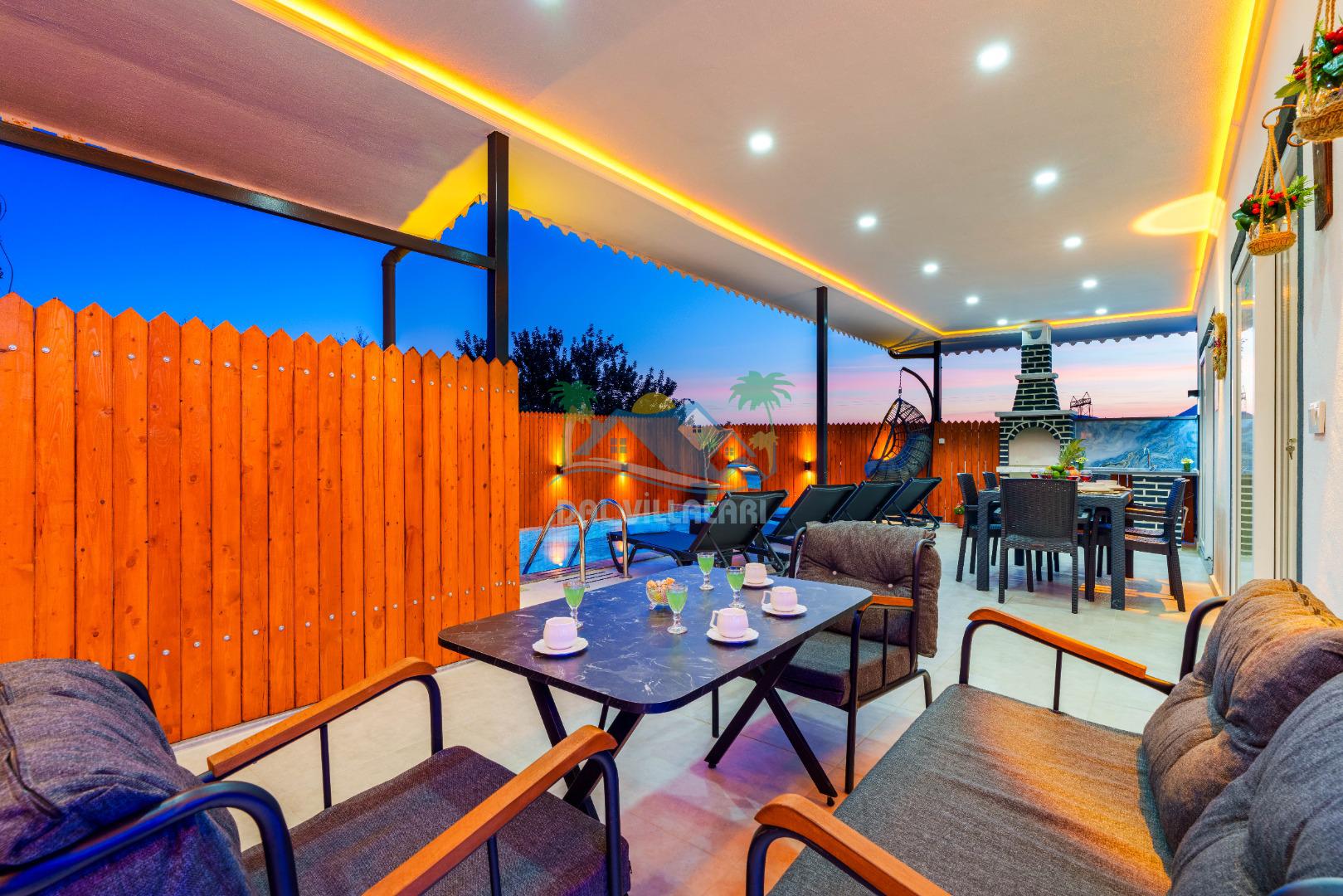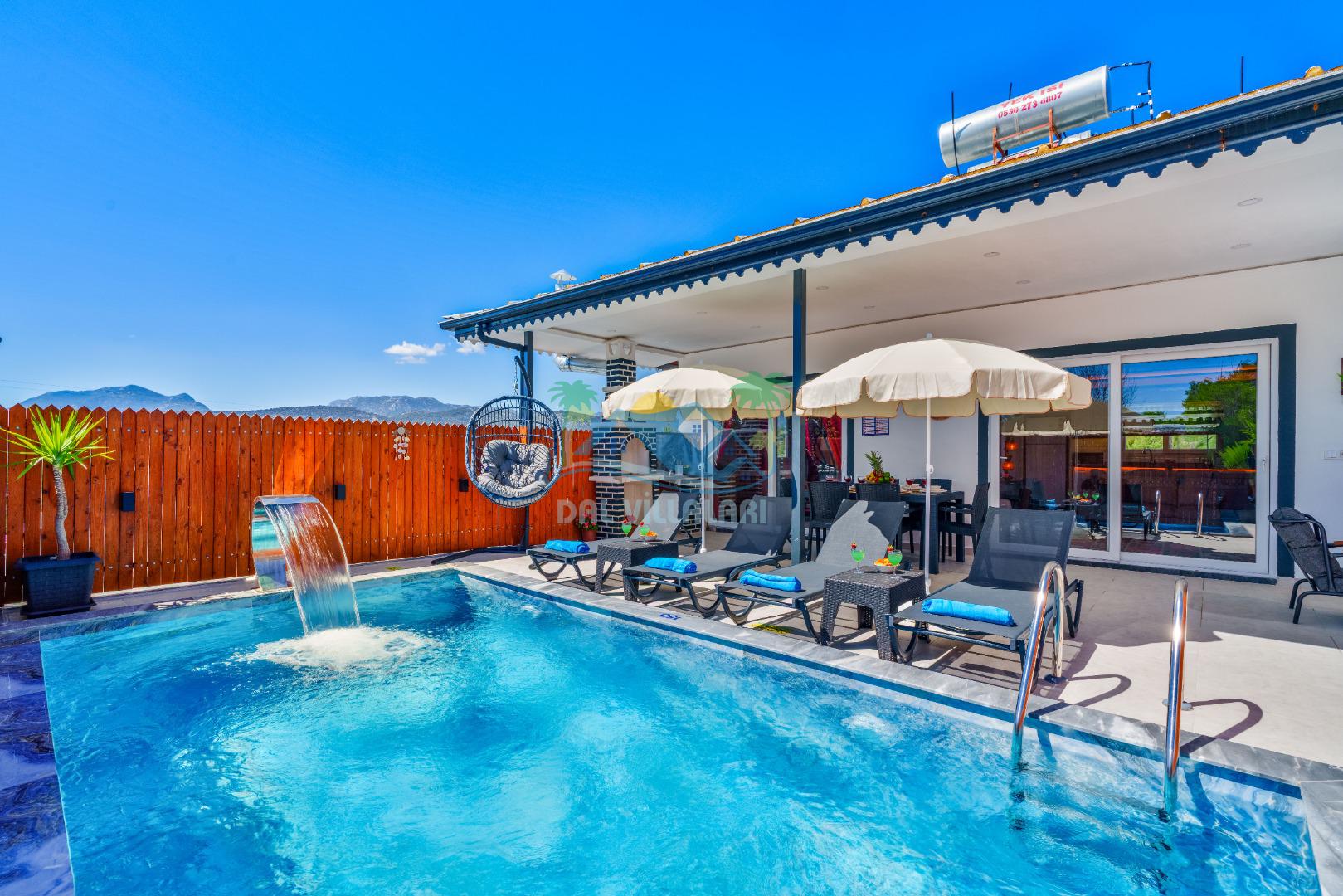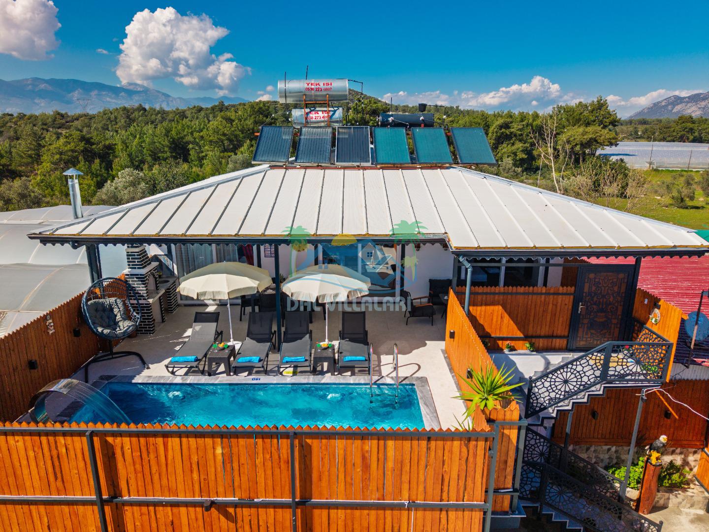 Villamızın en önemli özelliklerinden biri tam korunaklı özel yüzme havuzuna sahip olmasıdır. Dışarıdan görünmeyen havuz alanı sayesinde misafirlerimiz gün boyunca rahat ve özgür bir şekilde tatilin keyfini çıkarabilirler.