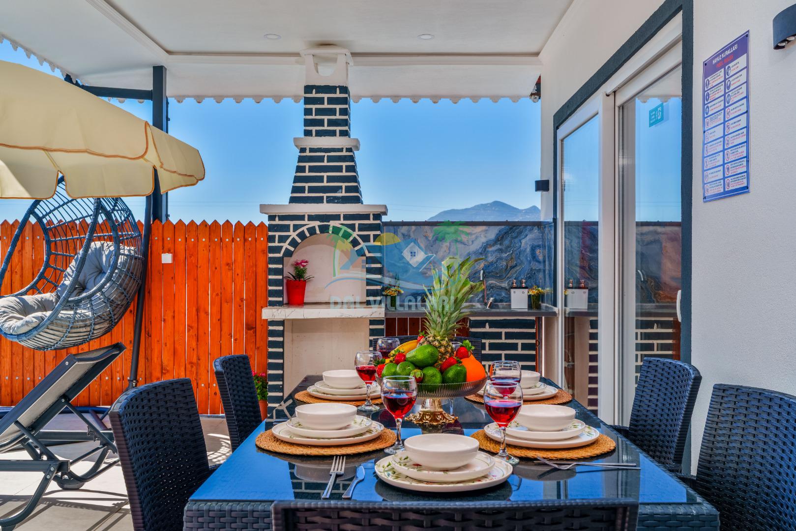 Geniş bahçe alanında yer alan yemek masası ve barbekü alanı, ailece keyifli vakit geçirmek için ideal bir ortam sunmaktadır. Gün batımında sevdiklerinizle birlikte yemek yiyebilir, doğa içerisinde huzurlu anlar yaşayabilirsiniz.