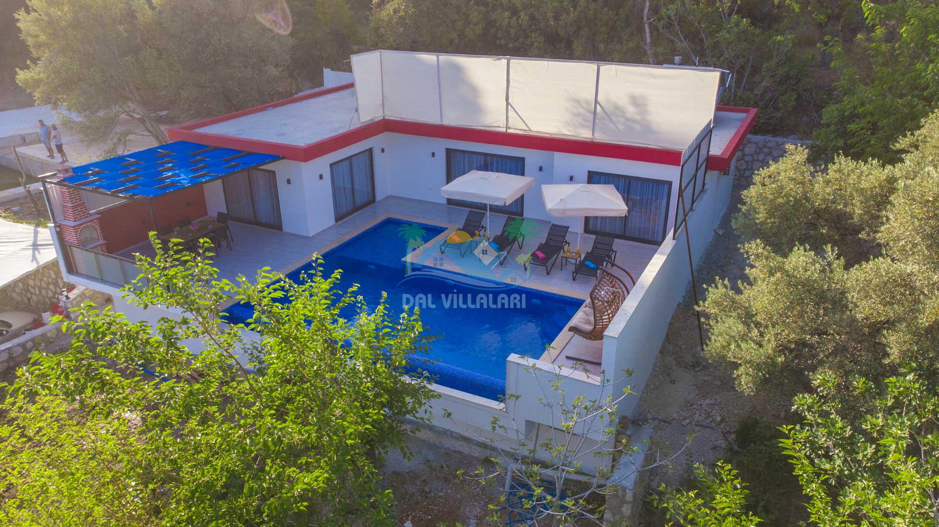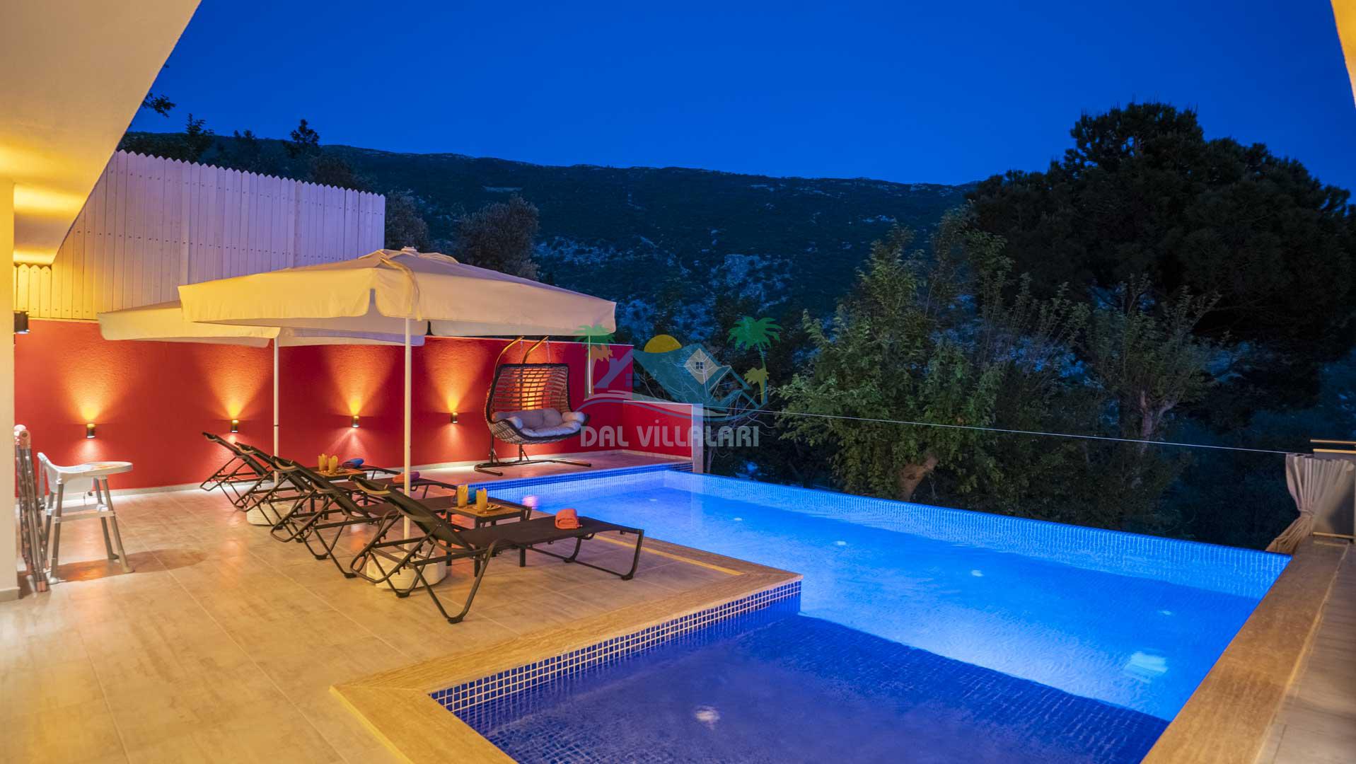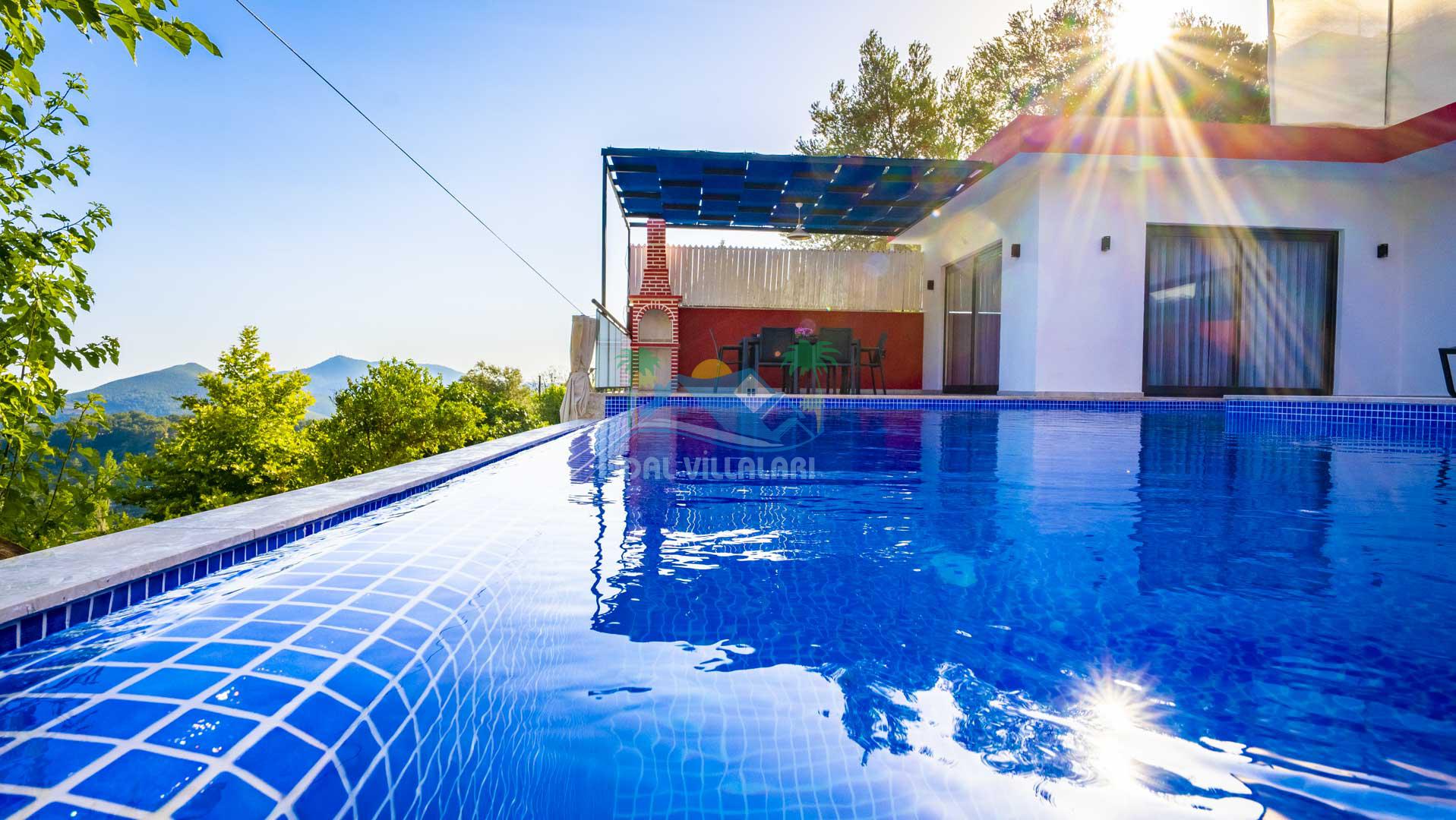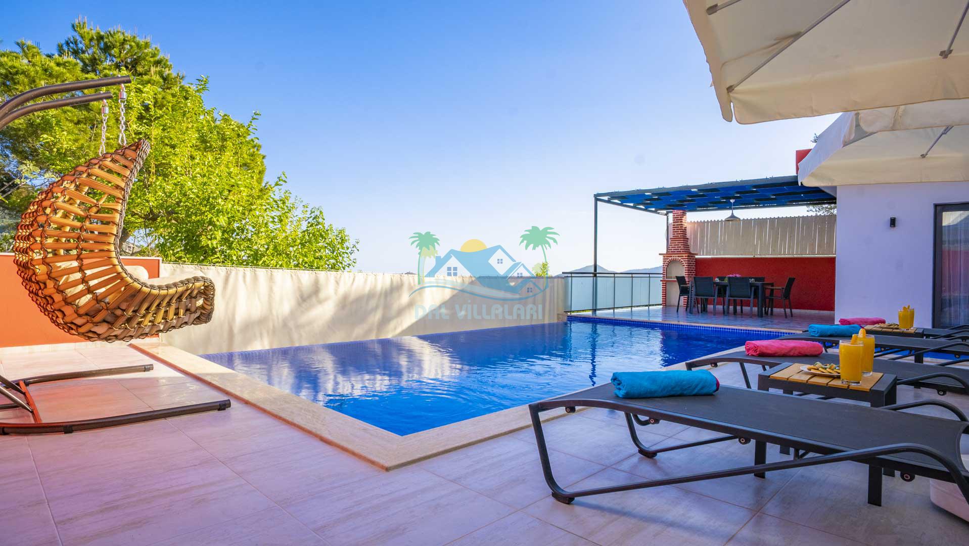 Korunaklı Havuz: Villa Gökdağ, dışarıdan görünmeyen havuz alanı ile gizlilik ve huzur dolu bir tatil sunar.