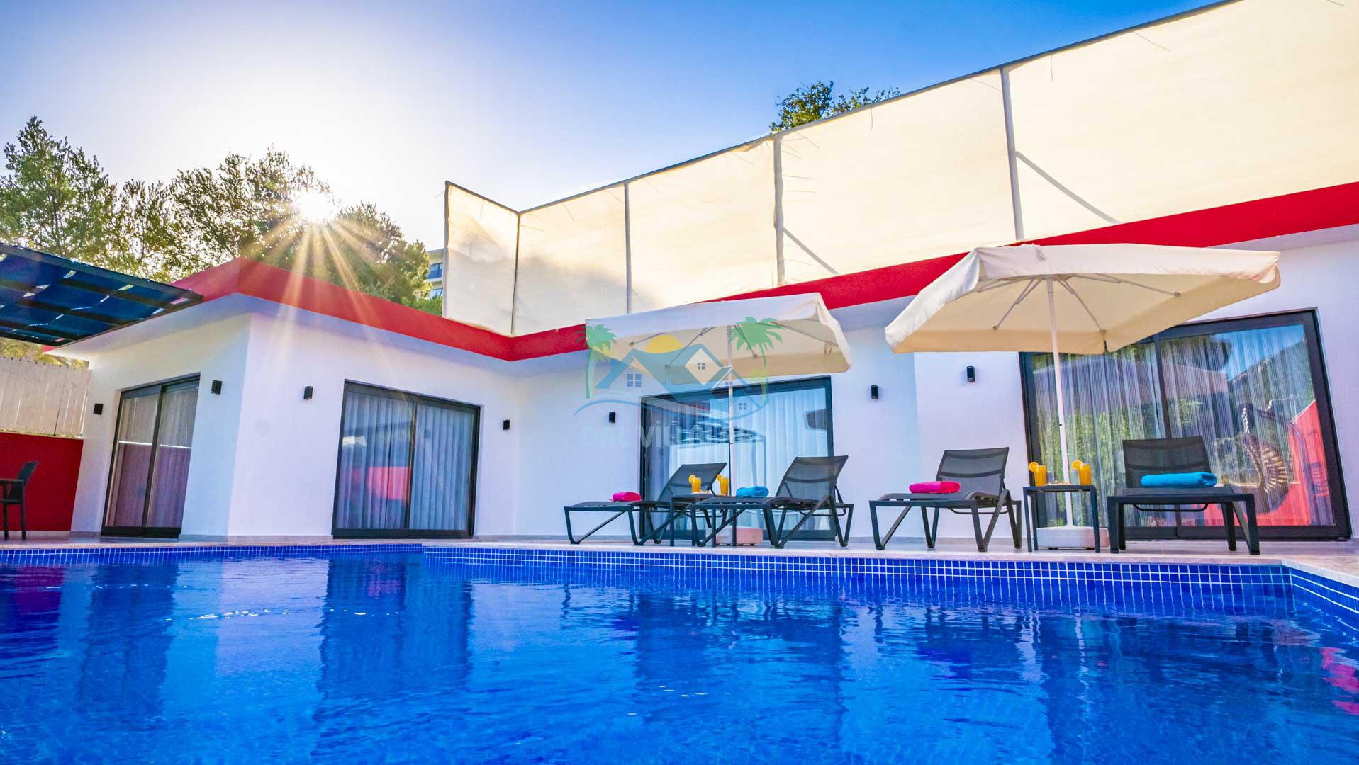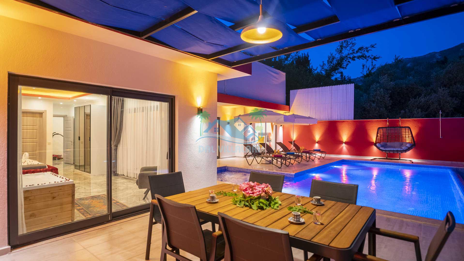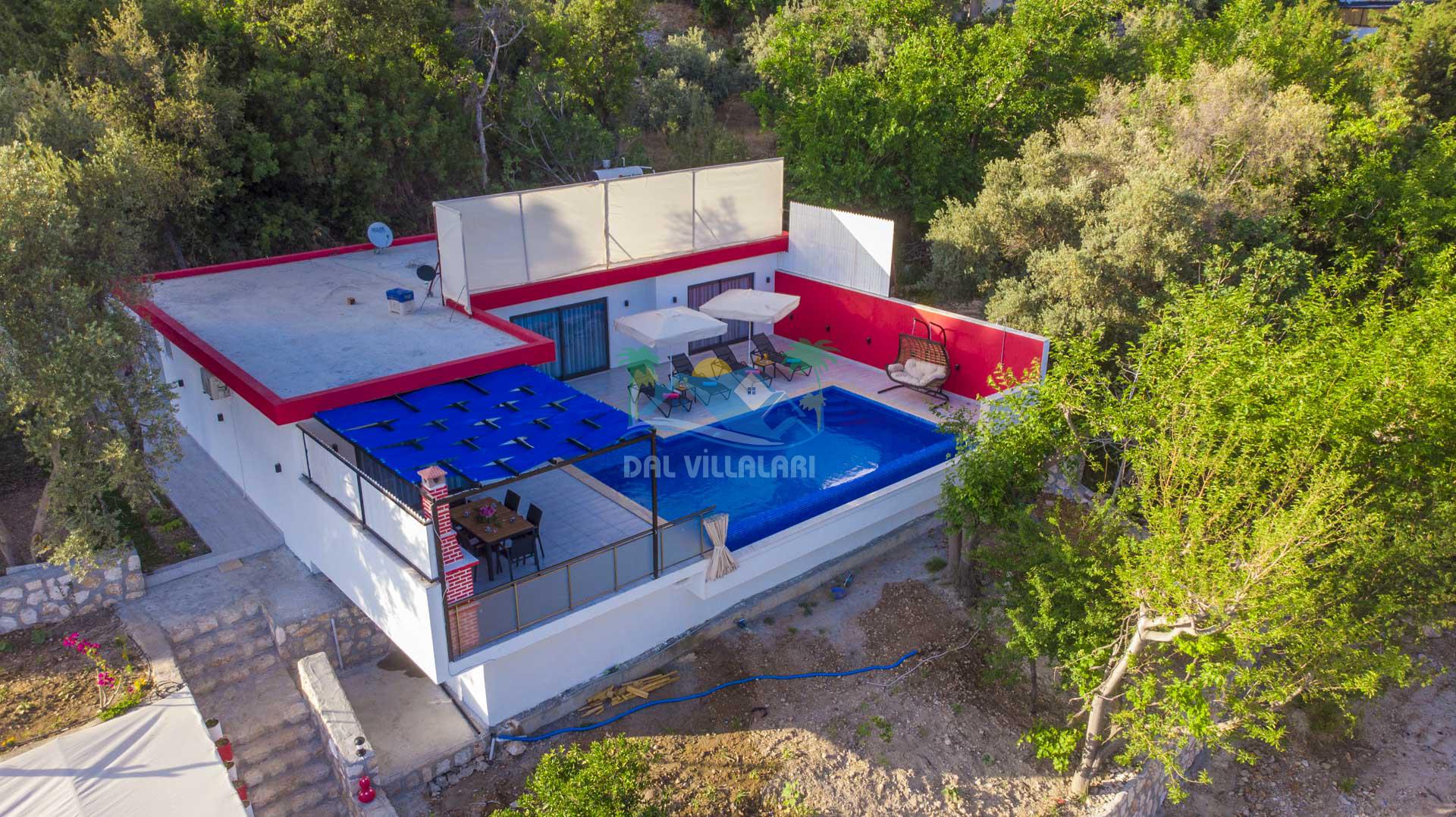 Korunaklı Havuz: Villa Gökdağ, dışarıdan görünmeyen havuz alanı ile gizlilik ve huzur dolu bir tatil sunar.