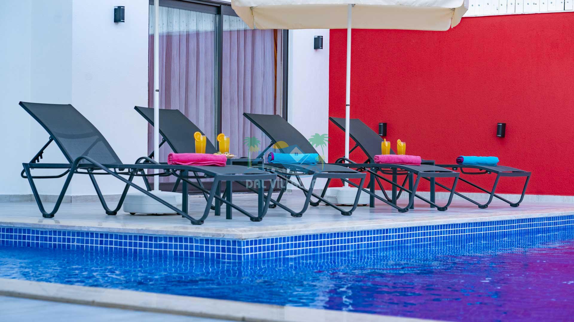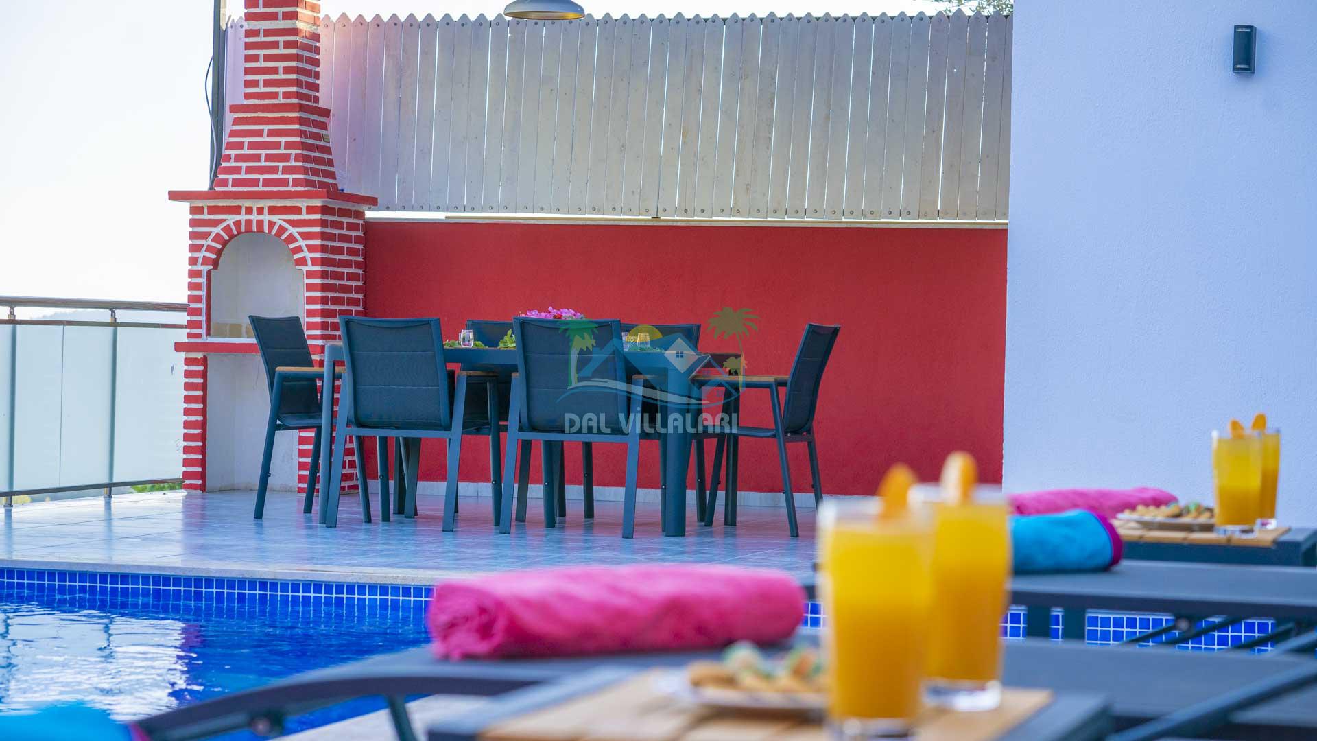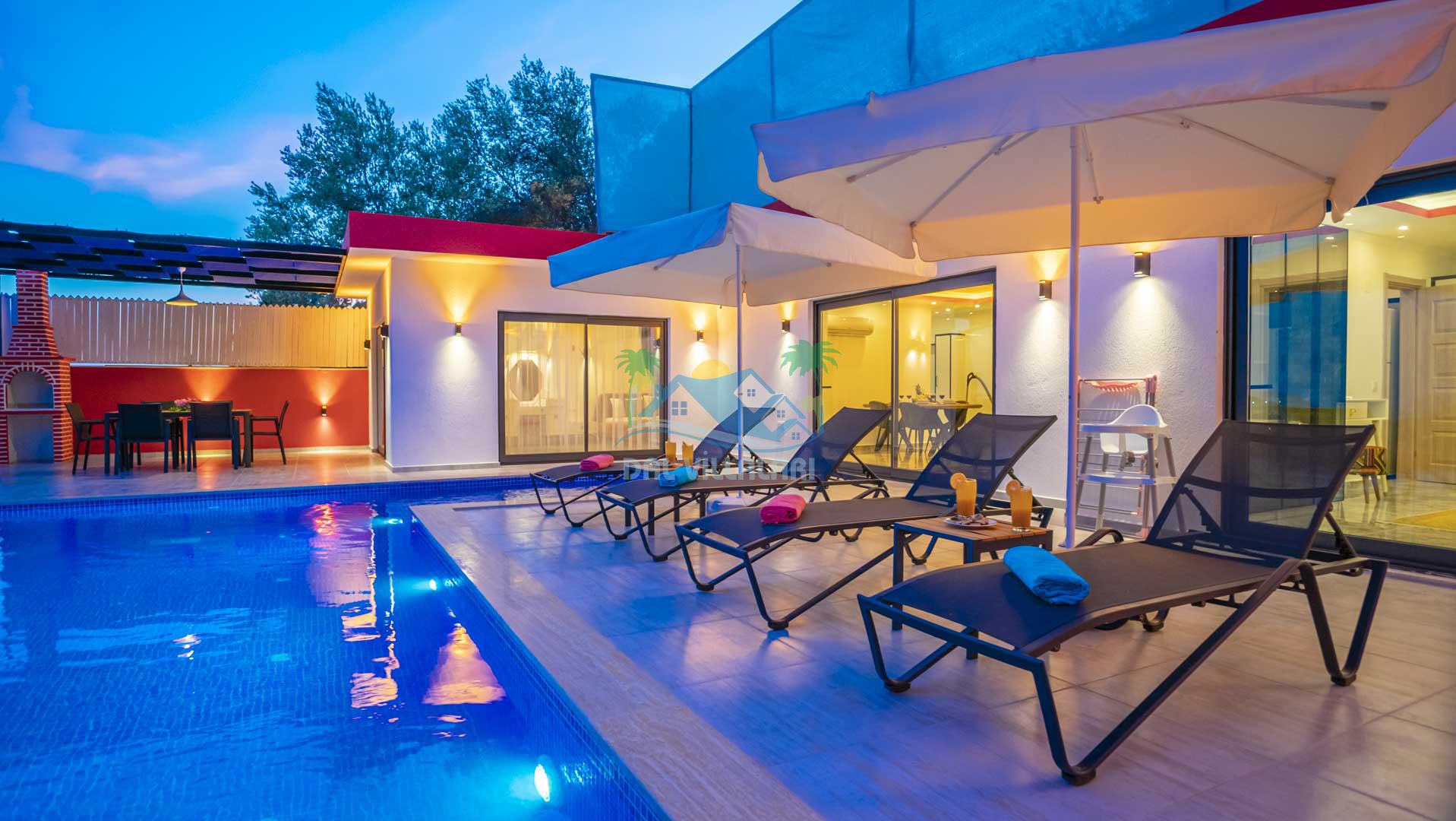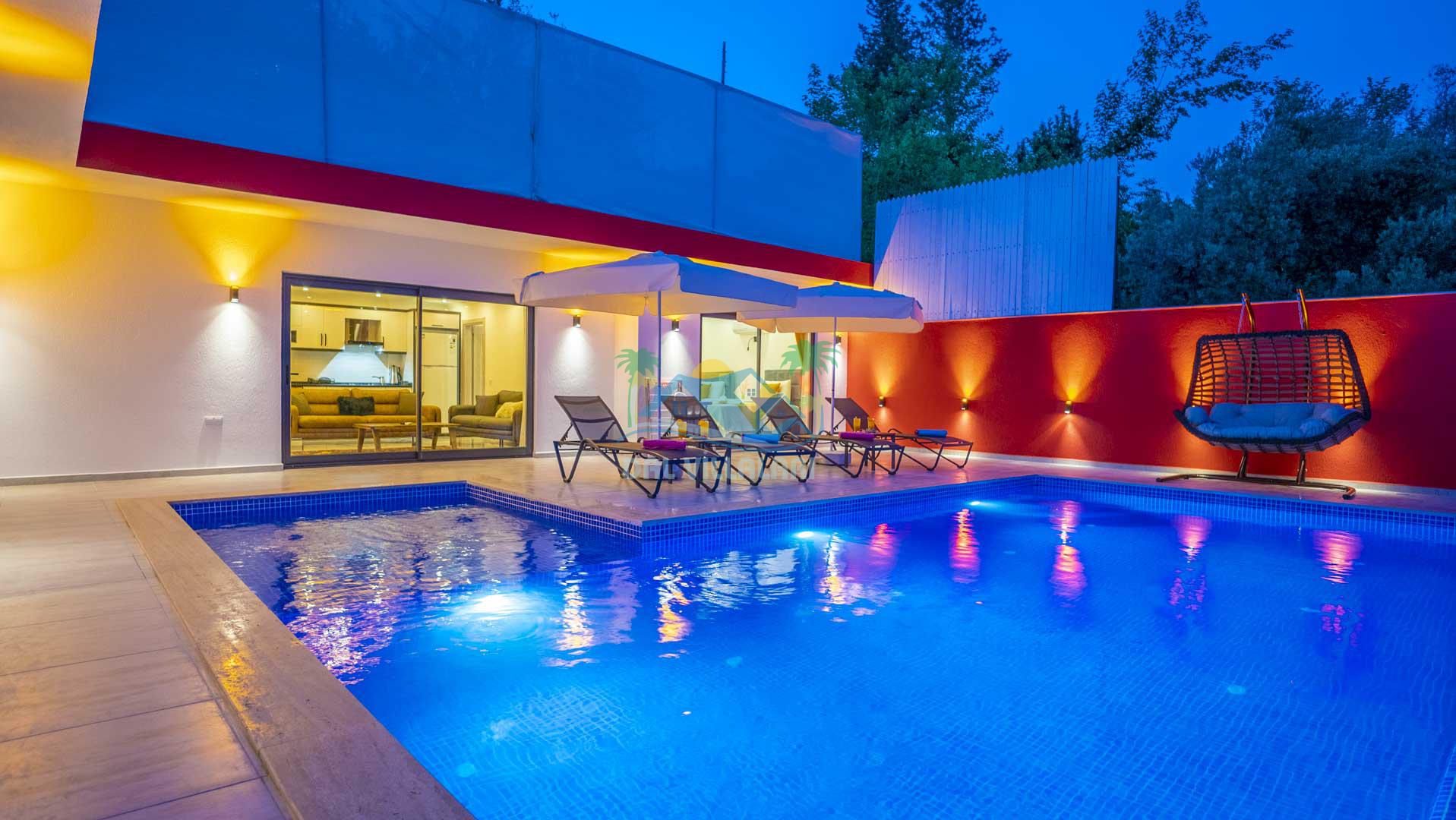 Korunaklı Havuz: Villa Gökdağ, dışarıdan görünmeyen havuz alanı ile gizlilik ve huzur dolu bir tatil sunar.
