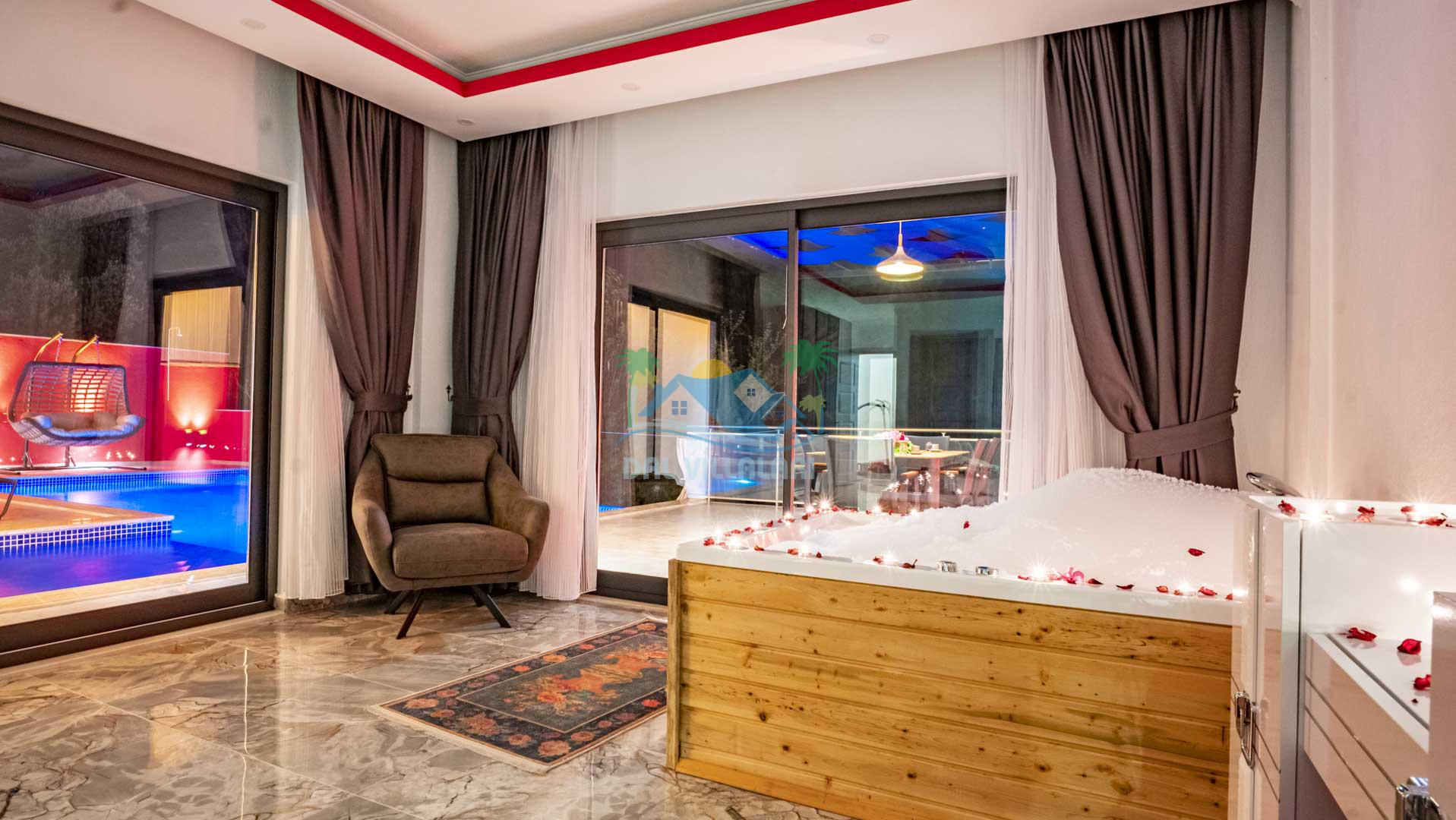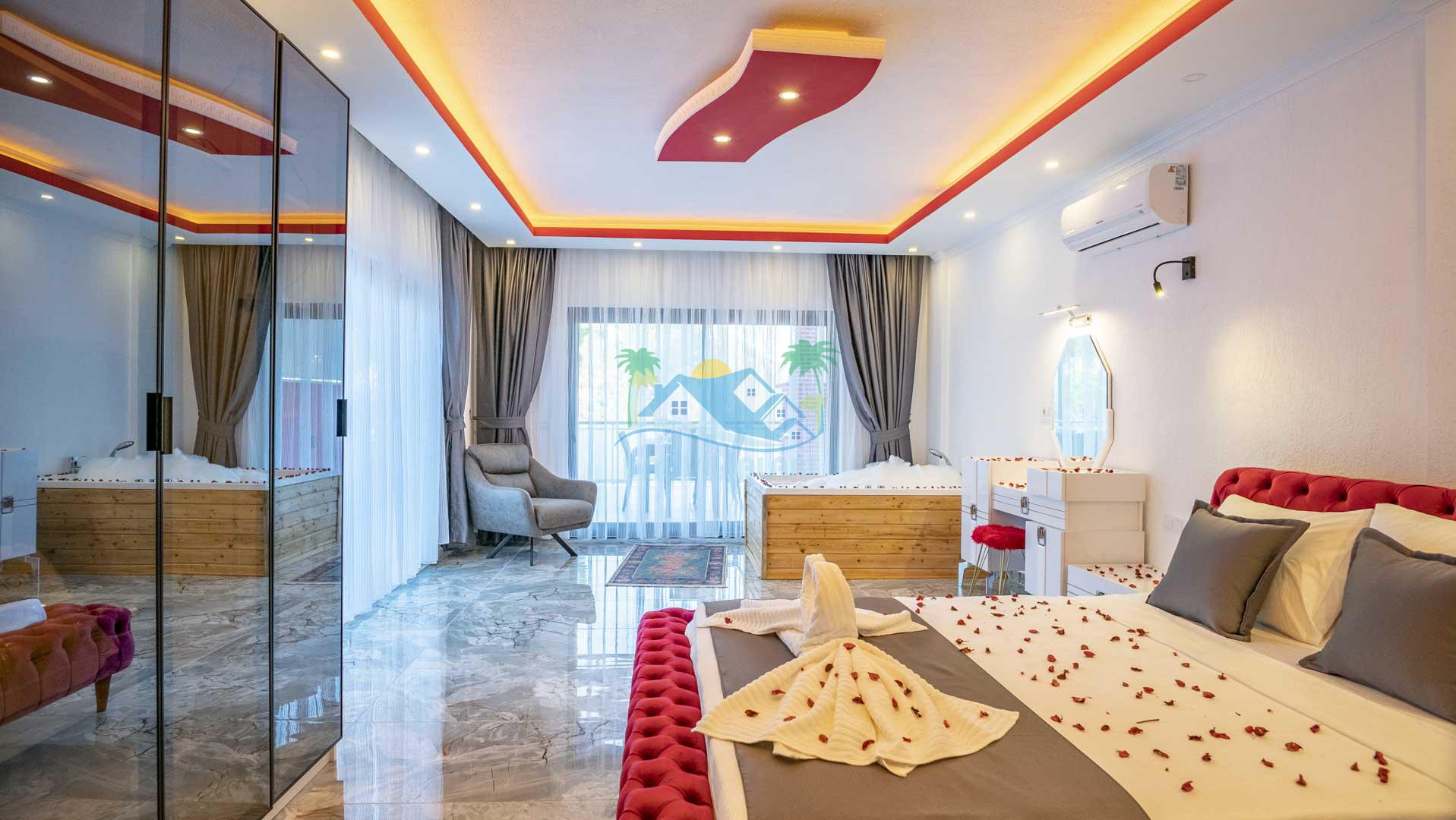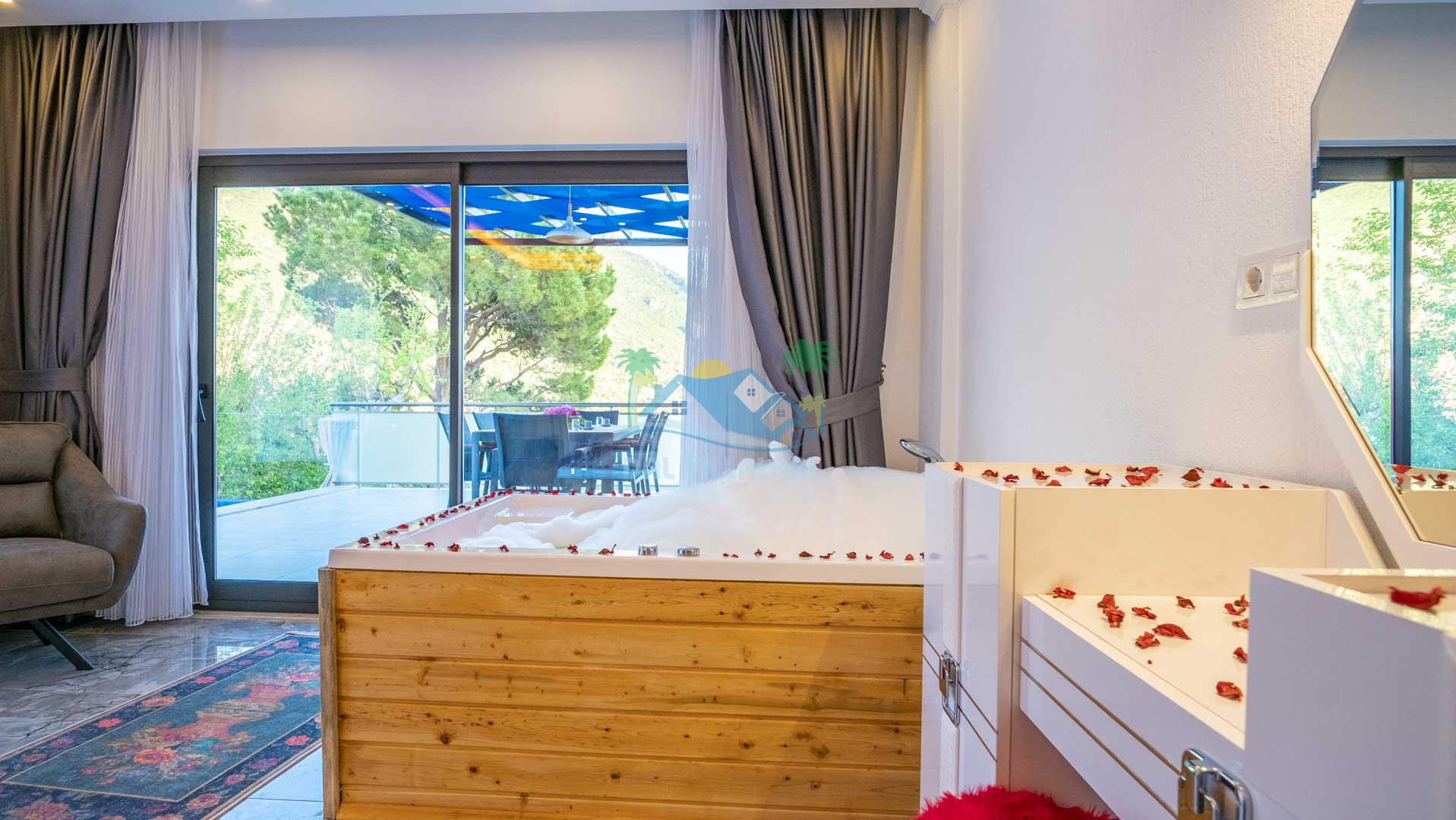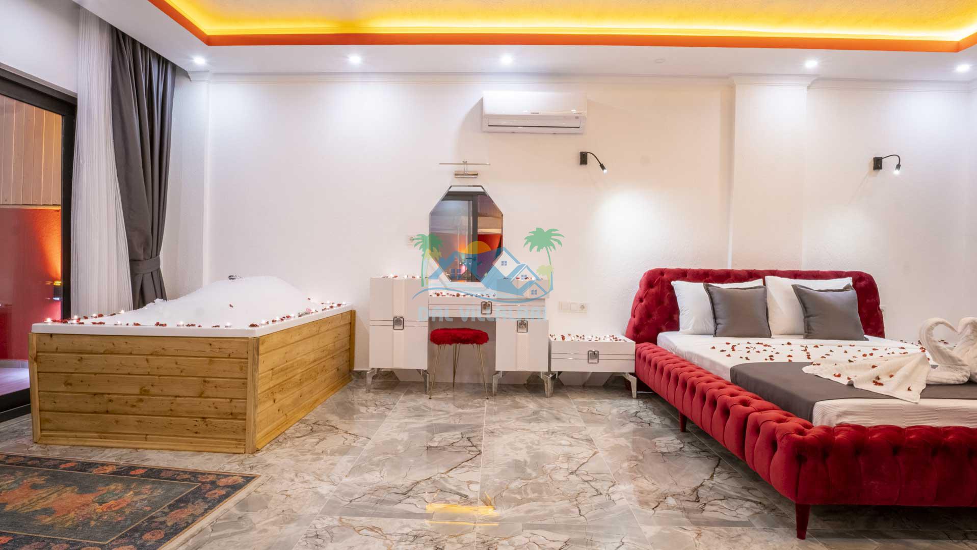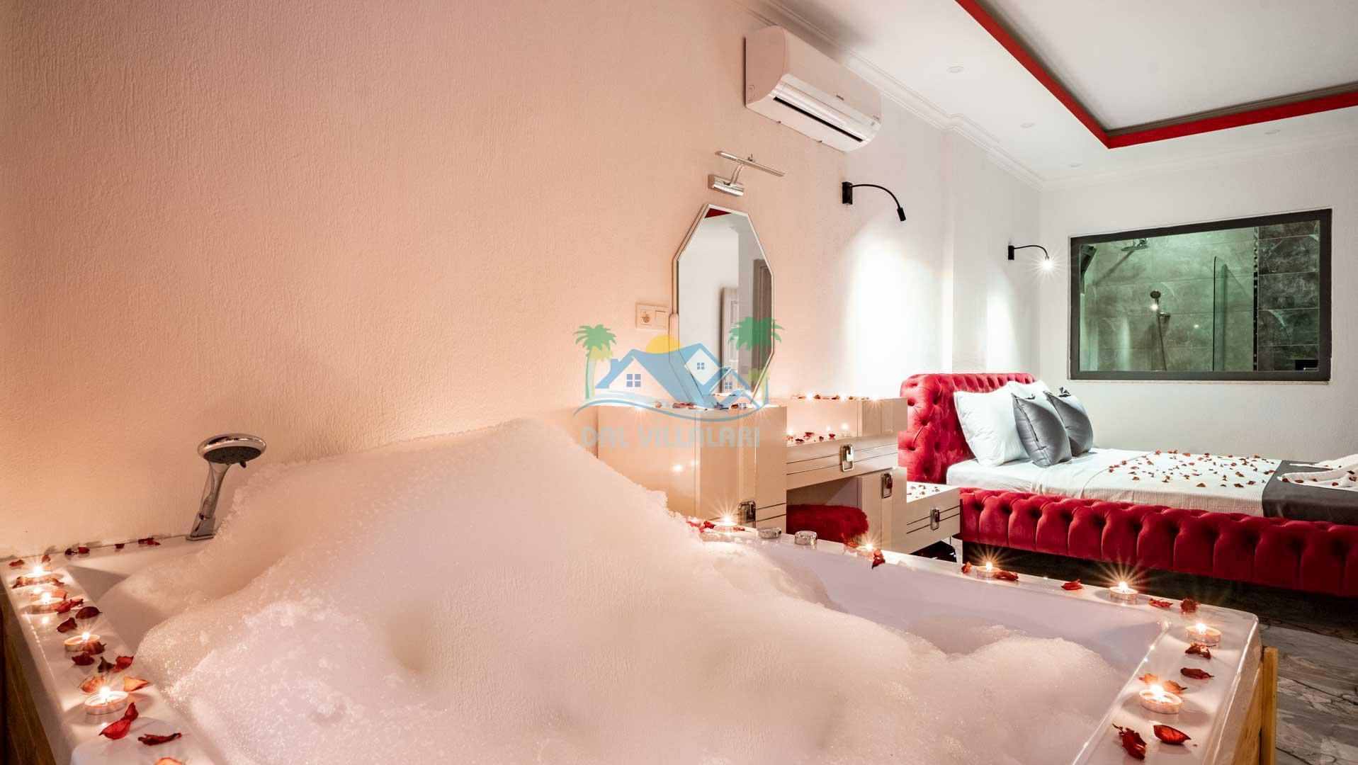 Jakuzi: Ana yatak odasında bulunan jakuzi ile günün yorgunluğunu atarak rahatlayabilirsiniz.