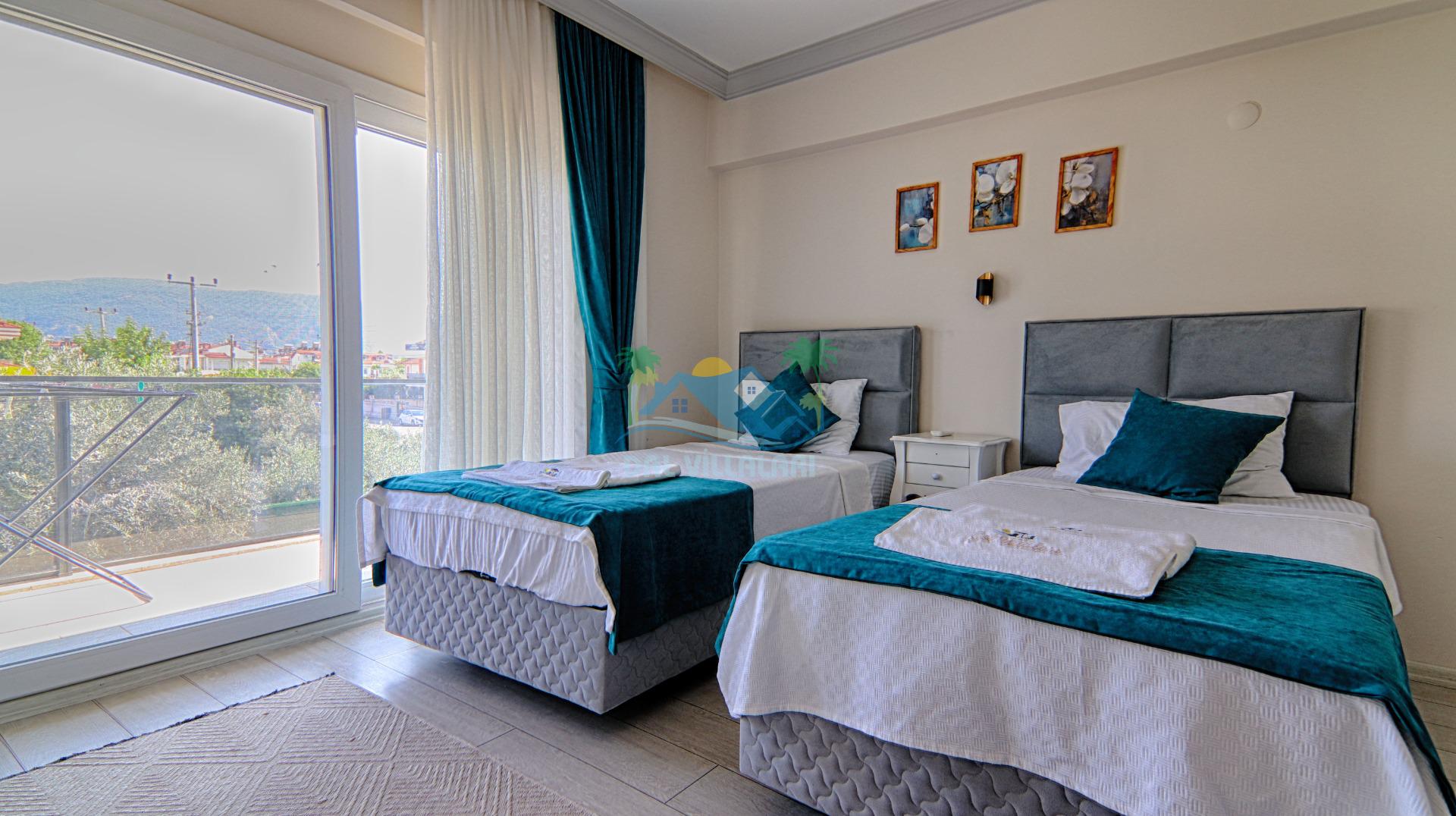Villa Gölcük 2, Fethiye'nin Çalış-Akarca Mah. mevkiinde yer alan özel havuzlu villamızdır Modern ve konforlu bir iç ayrılığa sahip olan villamız, 3 yatak odalı ve 6 kişilik kapasitedir. Birinci yatak odası içerisinde bir adet çift kişilik yatak, klima ; ikinci yatak odası içerisinde bir adet çift kişilik yatak ve klima; Üçüncü yatak odasının içerisinde ise iki adet tek kişilik yatak ve klima bulunmaktadır. Ortak alanda se salon-mutfak, 2 adet ortak WC-banyo, klima ve TV yer almaktadır.