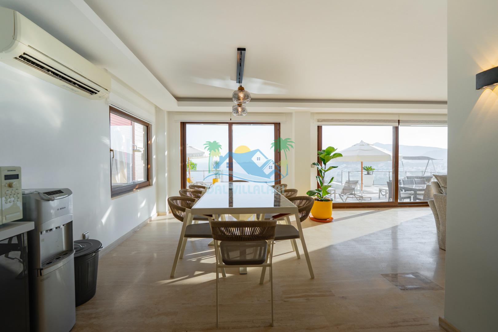 Villamızın giriş katında deniz ve doğa manzaralı Amerikan mutfak ve salon, üst katlarında beş adet suit yatak odası bulunmakta olup, ana ebeveyn odamızda yer alan jakuzide manzaraya karşı keyif yapabileceksiniz. Hayallerinizin ötesinde bir tatil imkanı sunmakta olan villamız, bodrum katta spor salonu (bilardo, masa tenisi, koşu bandı, kondisyon bisikleti) ile bütün bir yılın yorgunluğunu üzerinizden atmanız için, kusursuz bir şekilde tasarlanmıştır.