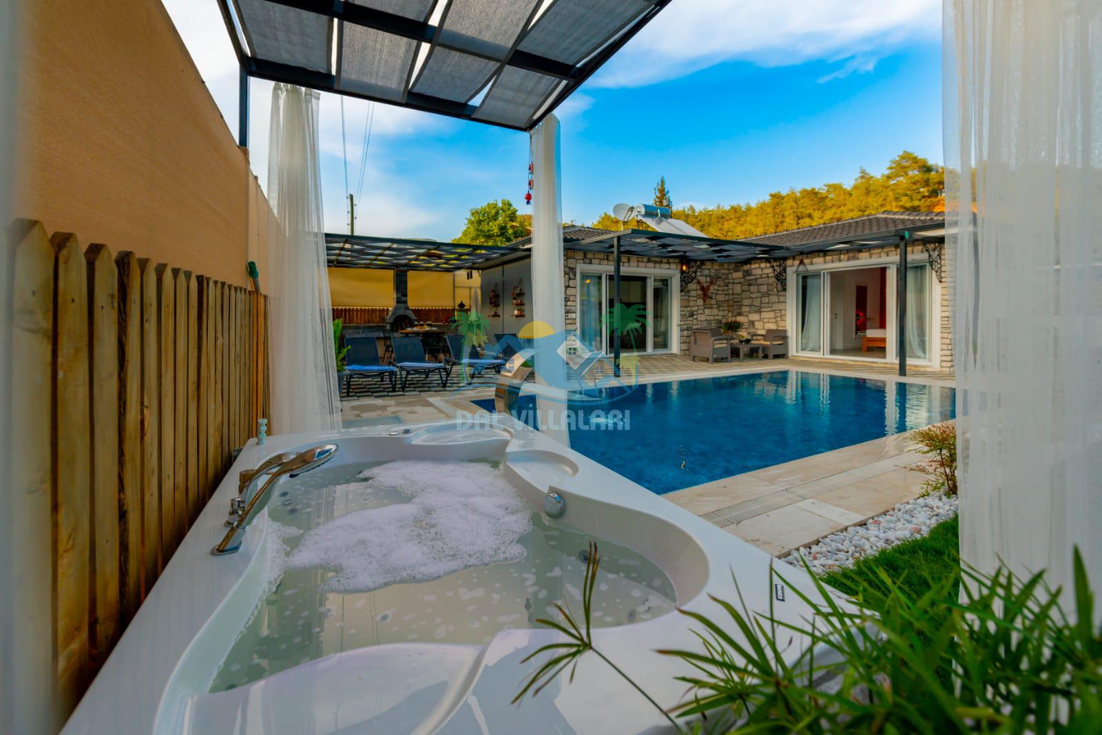 Villa Gürgen, Fethiye'nin Kargı mevkiinde konumlanmıştır. Villamız yemyeşil bahçesi ve korunaklı havuzu sayesinde muhafazakar ve balayı tatilcilerine özel bir seçenektir. Villamız iki yatak odasına sahip olup, 4 kişi konaklama kapasitelidir.