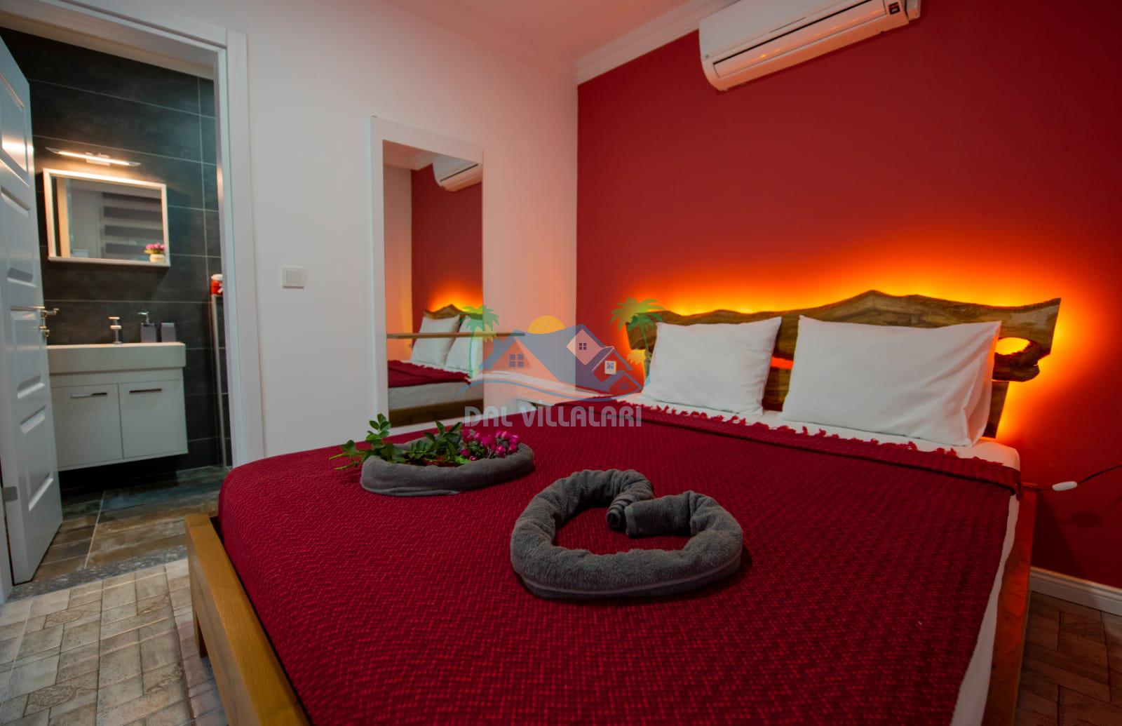 Doğa içerisinde yer alan villamızın birinci yatak odası içerisinde bir adet çift kişilik yatak, ebeveyn banyosu ve klima bulunmaktadır. İkinci yatak odasında ise bir adet çift kişilik yatak ve klima mevcuttur. Ortak alanda ise açık mutfak- salon, WC - Duş, klima ve TV yer almaktadır. Toplamda 4 kişilik konaklama kapasitesiyle Villa Dedekavak siz misafirlerimiz için güzel bir tatil seçeneğidir.