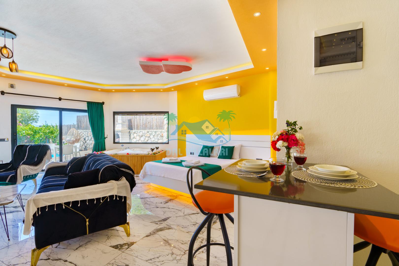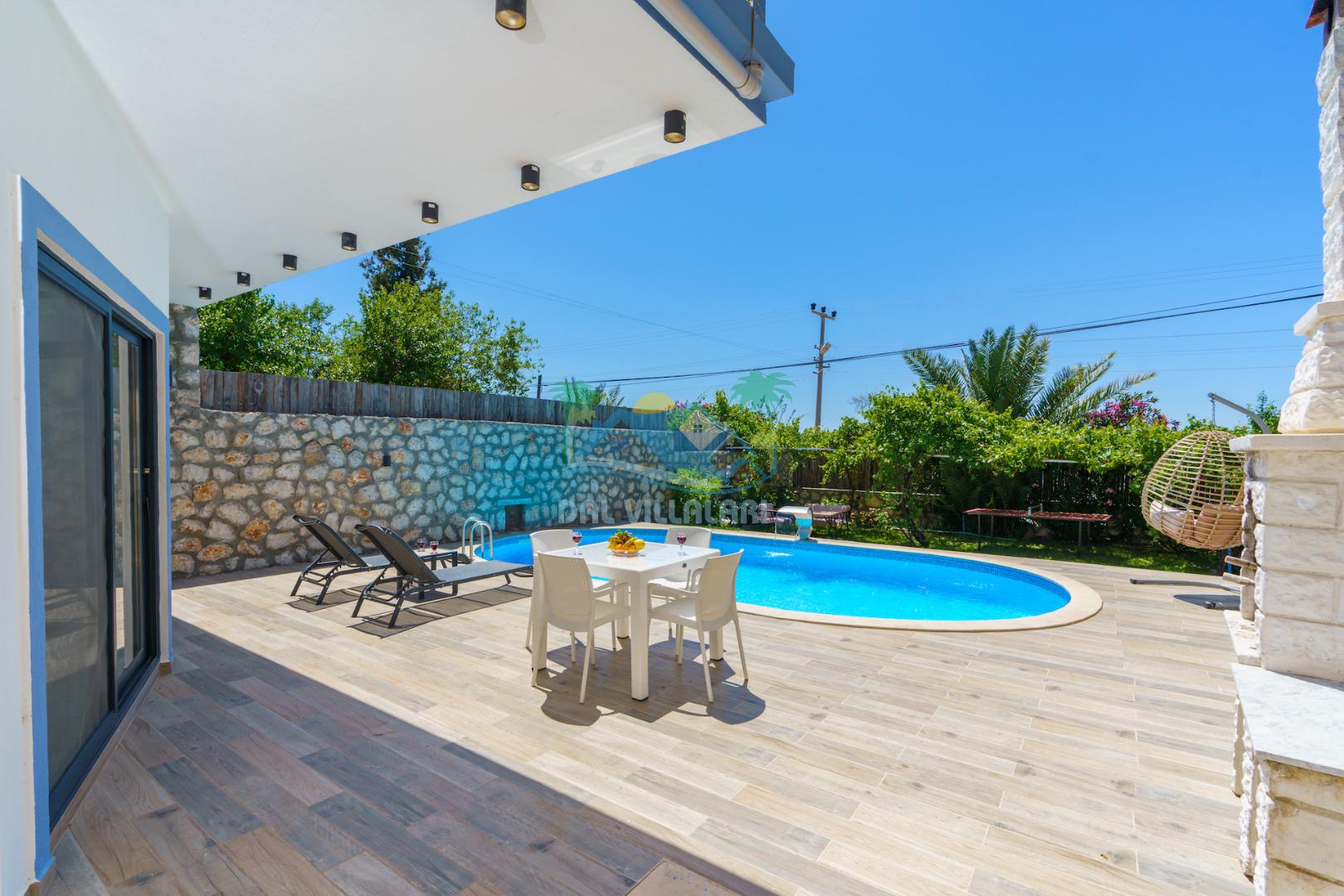 Villa Helyon Balayı , Kalkan Üzümlü bölgesinde konumlanan havuzu tam korunaklı villamızdır. Balayı misafirleri için muhteşem bir seçenek olan villamızdır. Misafirlerimizin memnuniyeti düşünülerek tasarlanan villamızda aileniz ile keyifli zamanlar geçirebilirsiniz.