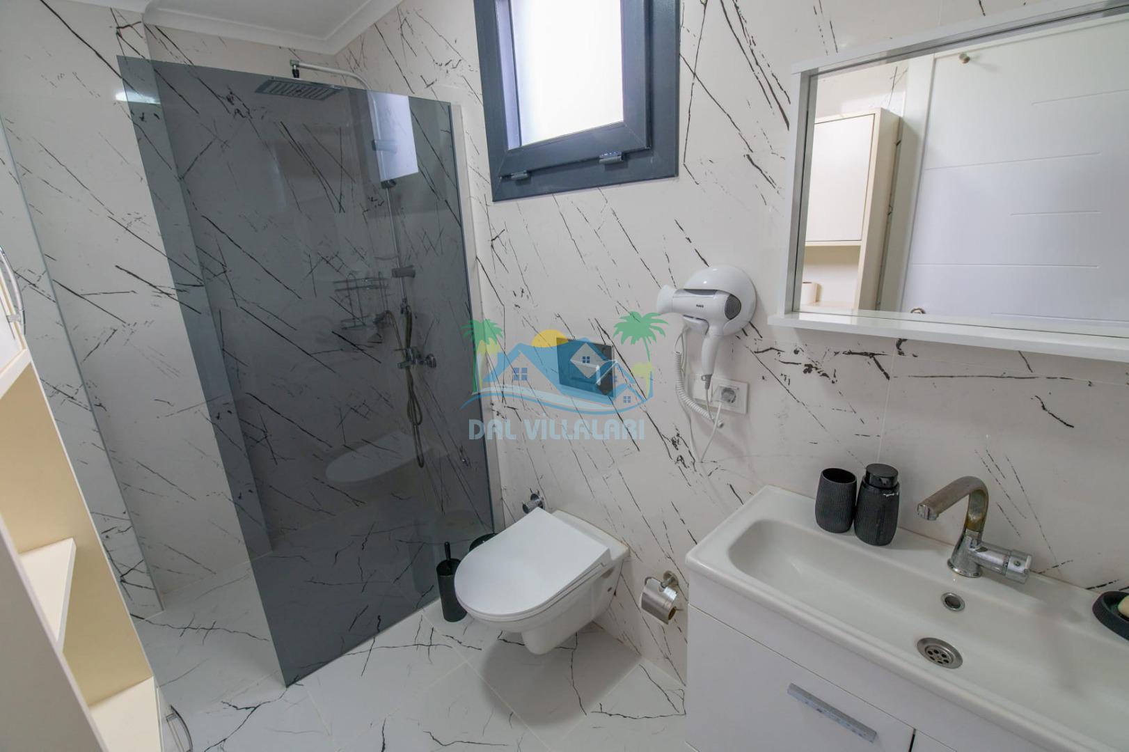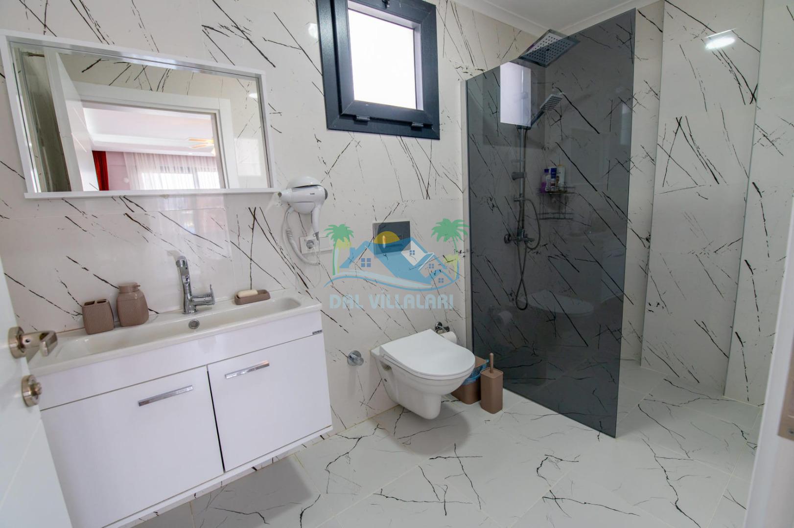 Tek katlı ve müstakil yapıda inşa edilmiş olan villa, modern mimarisi ve kaliteli eşyalarıyla misafirlerine ev konforunda bir tatil sunar. Tam donanımlı mutfağı, şık oturma alanı, klimalı odaları ve özel banyoları sayesinde tüm ihtiyaçlarınıza karşılık verecek şekilde düzenlenmiştir.