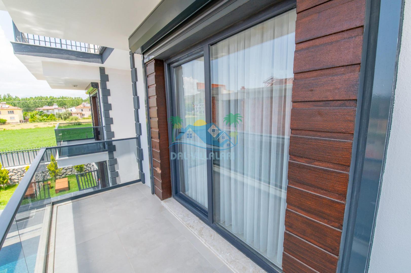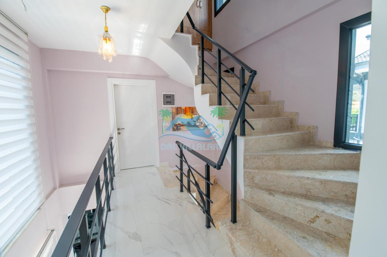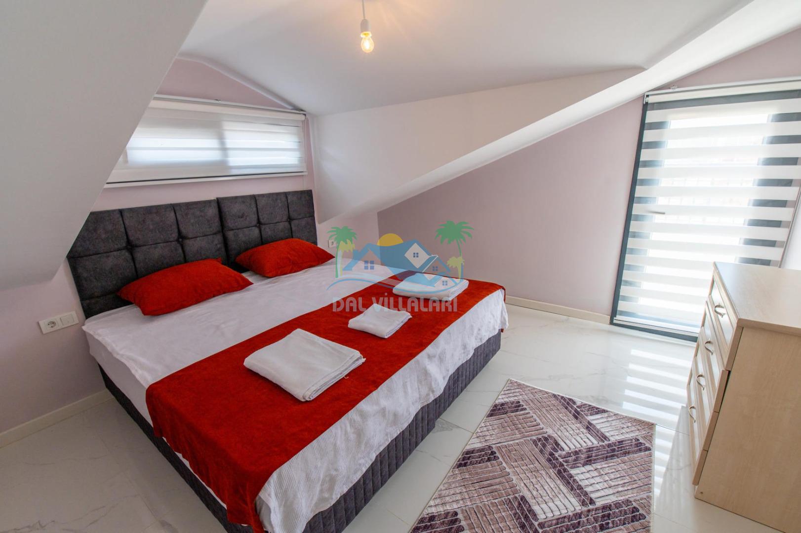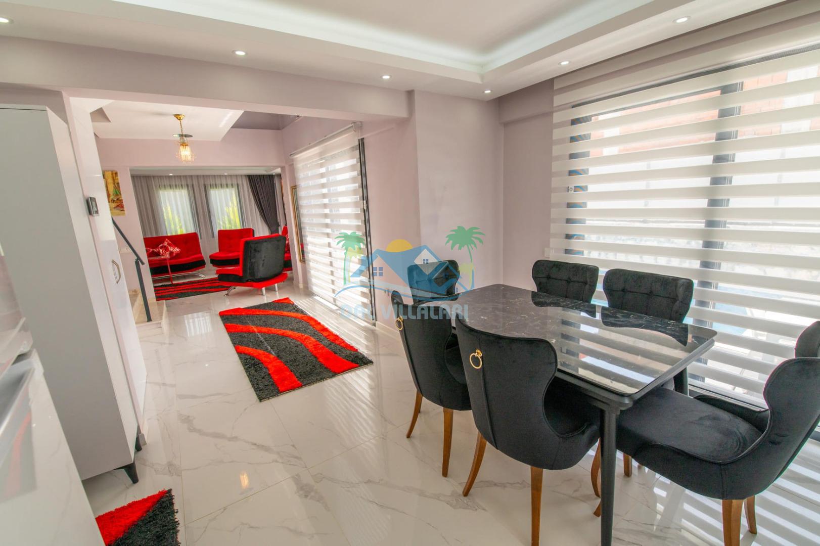 Villanın dış alanında ise geniş bir yüzme havuzu, güneşlenme terası, şezlonglar ve oturma grubu yer alır. Yeşillikler içinde yer alan bahçesi, çocuklu aileler için güvenli ve keyifli bir oyun alanı sunarken, doğayla iç içe kahvaltı ya da akşam yemekleri için de huzurlu bir ortam yaratır.
