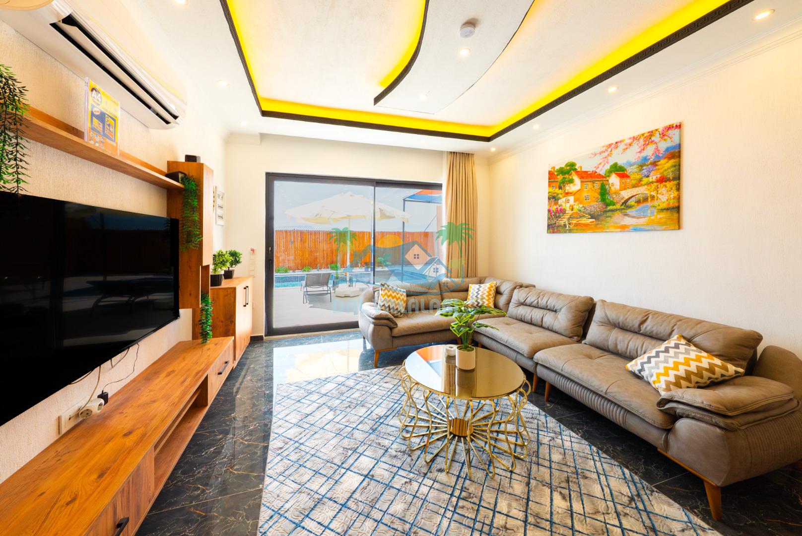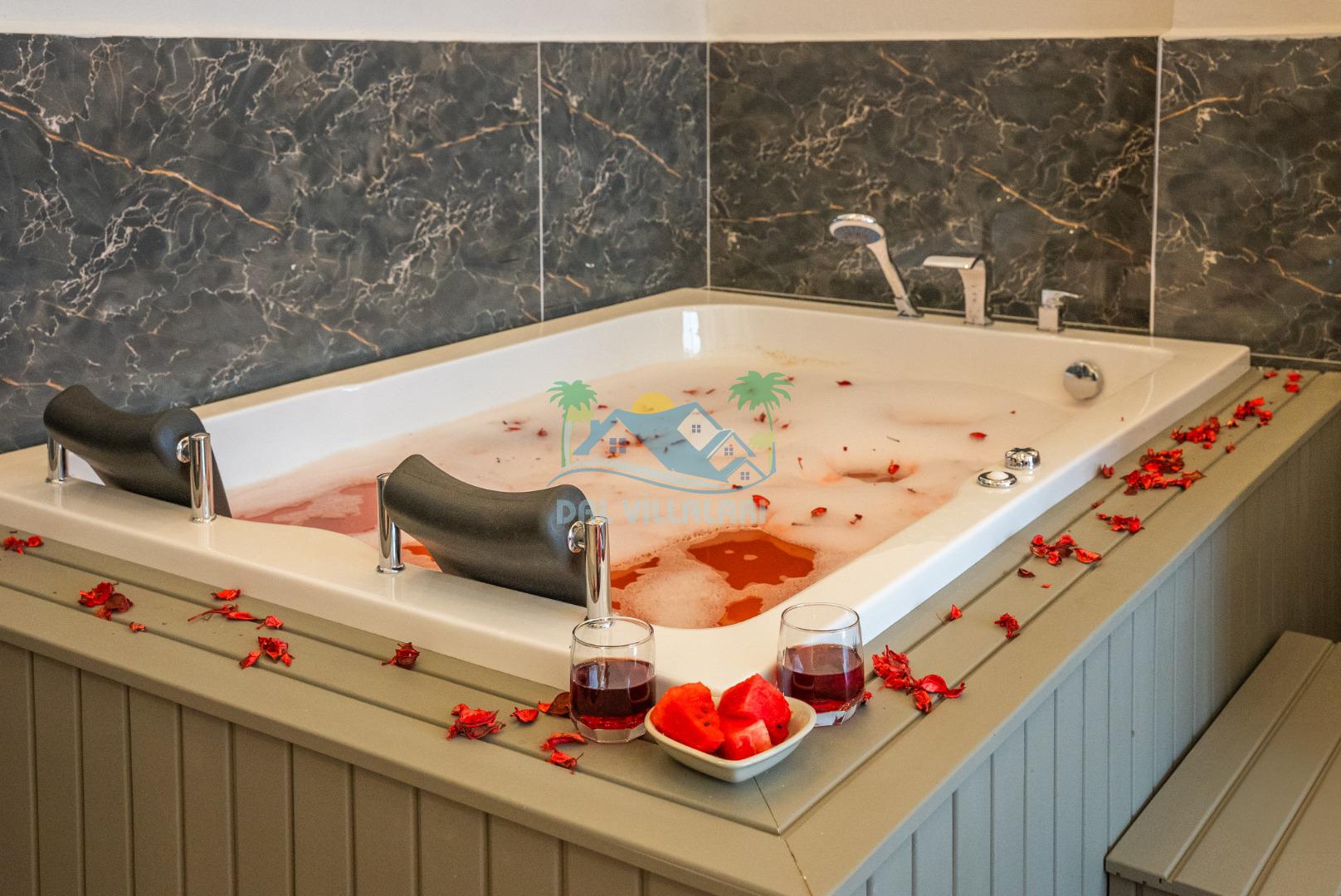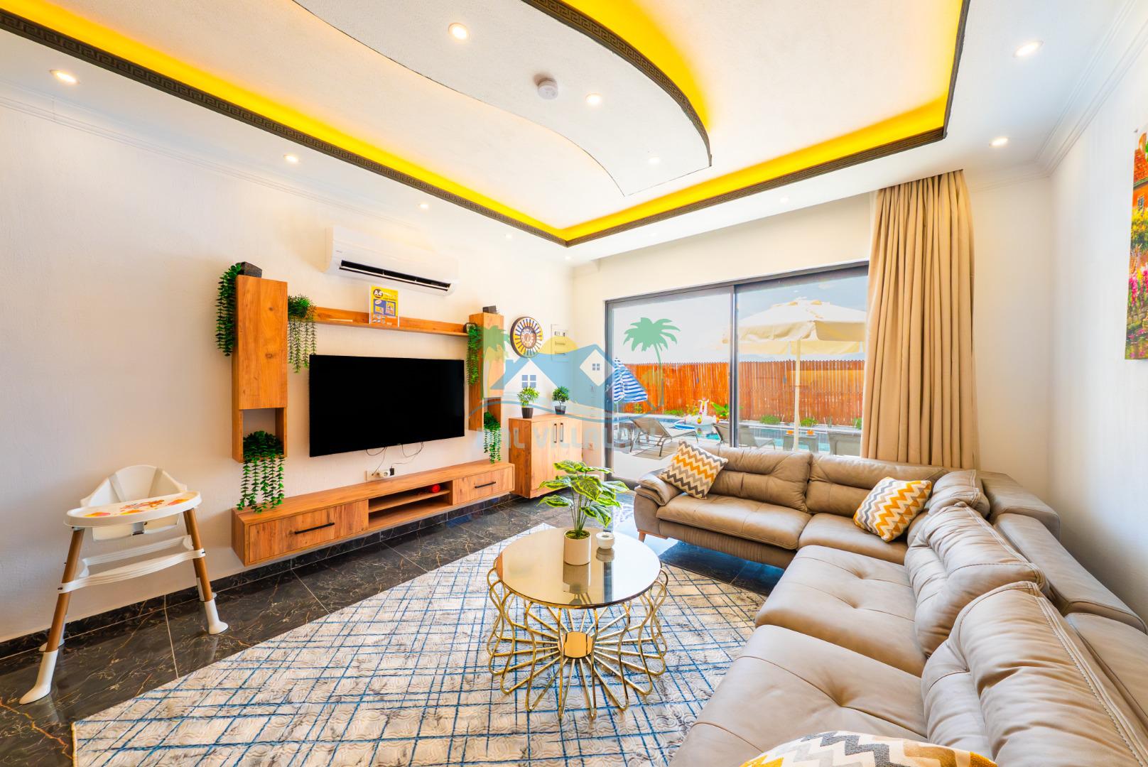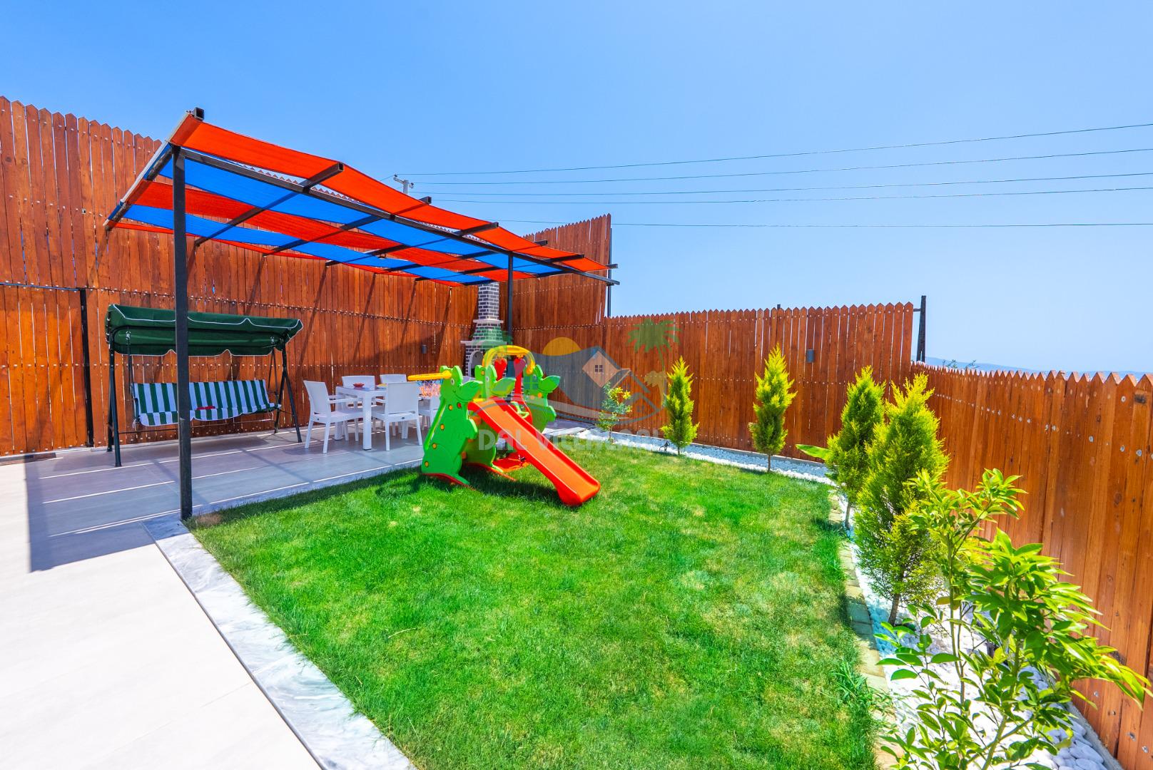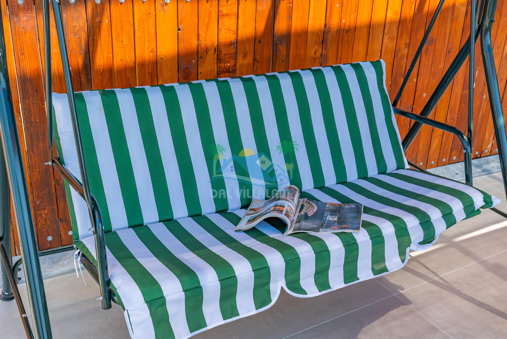 Temiz havanın, gökyüzünün ve güneşin hiç eksilmediği havuz ve bahçe alanında bitmesin isteyeceğiniz bir tatil sizleri bekliyor, Şehirden uzak sakin tatil arayan misafirerimizin tam olarak aradığı bulacağı kriterlere ve olanaklara sahip villa, doğayla iç içe konumu ve tatinize renk katacak havuz terasında kapasiteye uygun şezlong takımı, salıncak, çocuk oyun ekipmanları, oturma grubu ve barbekü alanı ile keyifli bir alana sahiptir. Geniş havuz ve bahçesine açılan konforlu oturma odası ve tam donanımlı açık mutfağı; birinci yatak odasında çift kişilik yatak, ebeveyn banyosu ve jakuzi; ikinci yatak odasında ise bir çift kişilik yatak, bir tek kişilik yatak ve banyo bulunmaktadır.
