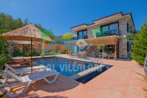 Fethiye Yeşil Üzümlü bölgesinde bulunan villa, 4 yatak odasıyla 8 kişilik konaklama kapasitesine sahiptir. Geniş bahçe ve havuz alanı ile geniş aileler için ideal seçenekler arasındadır.