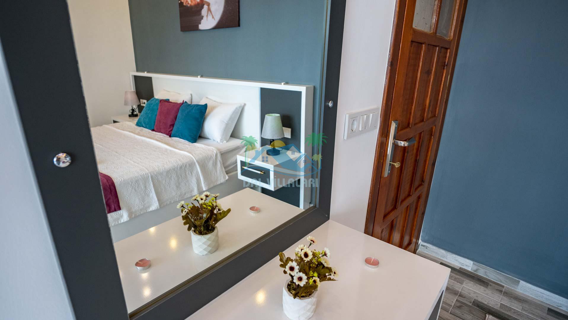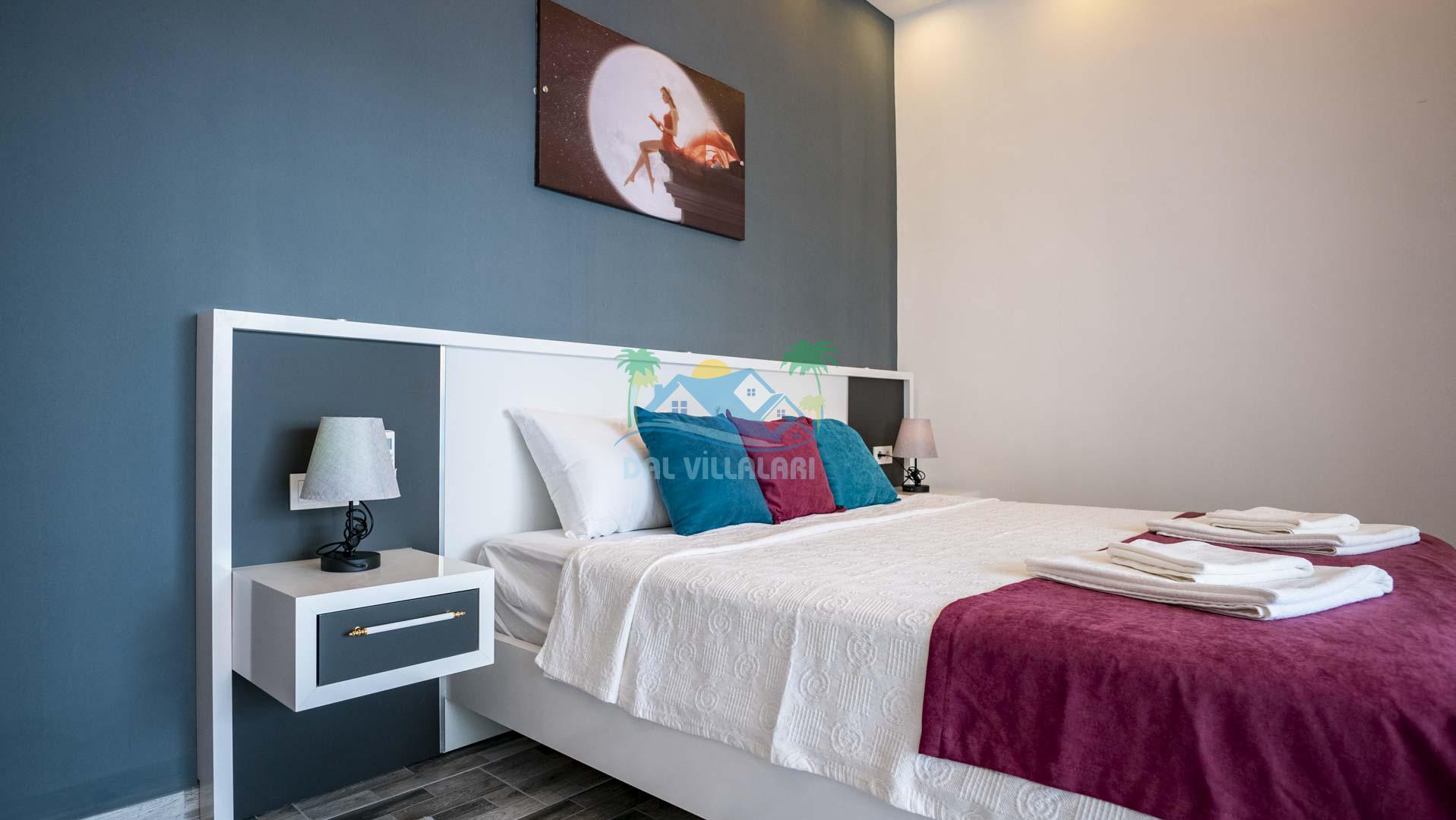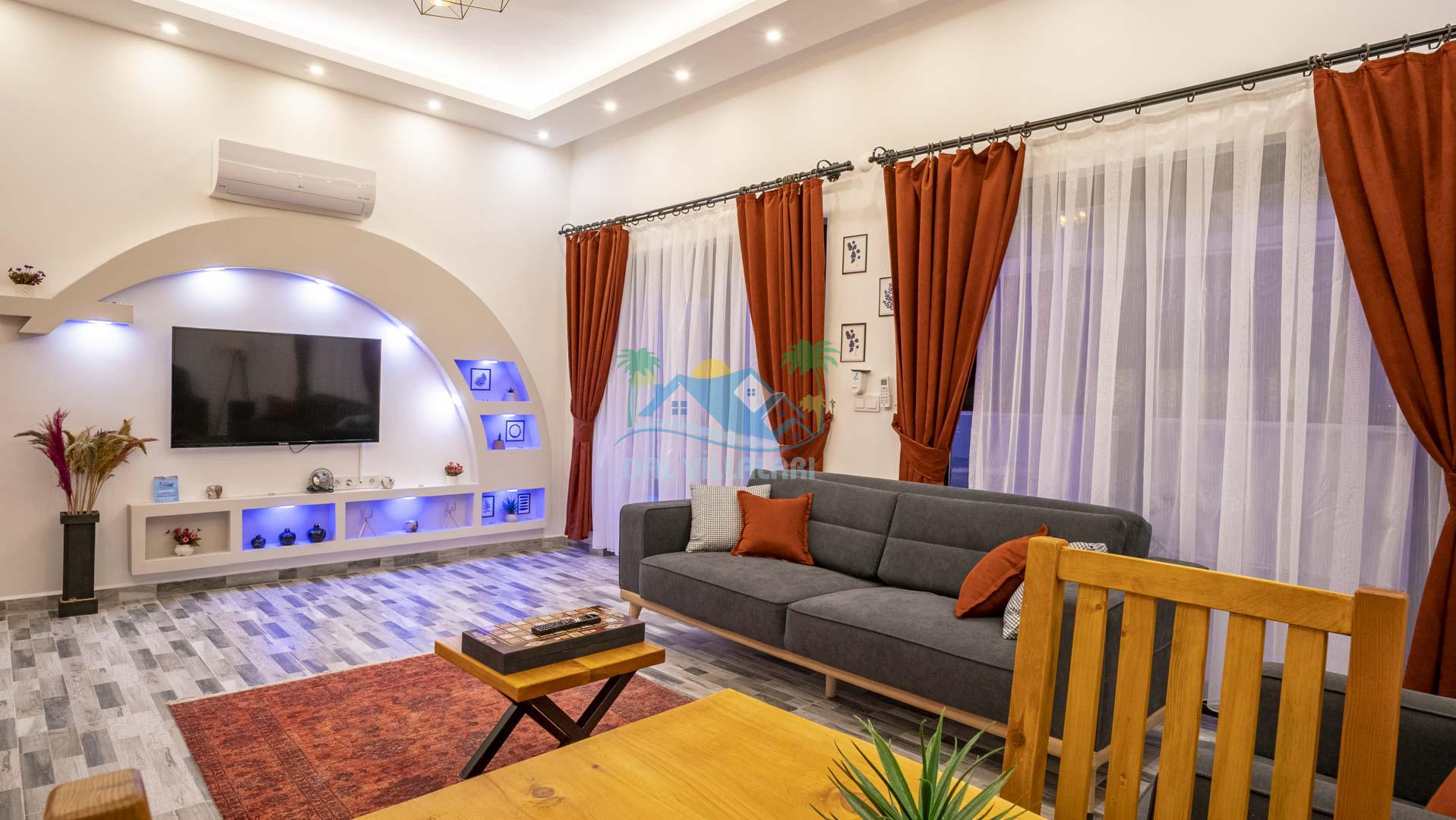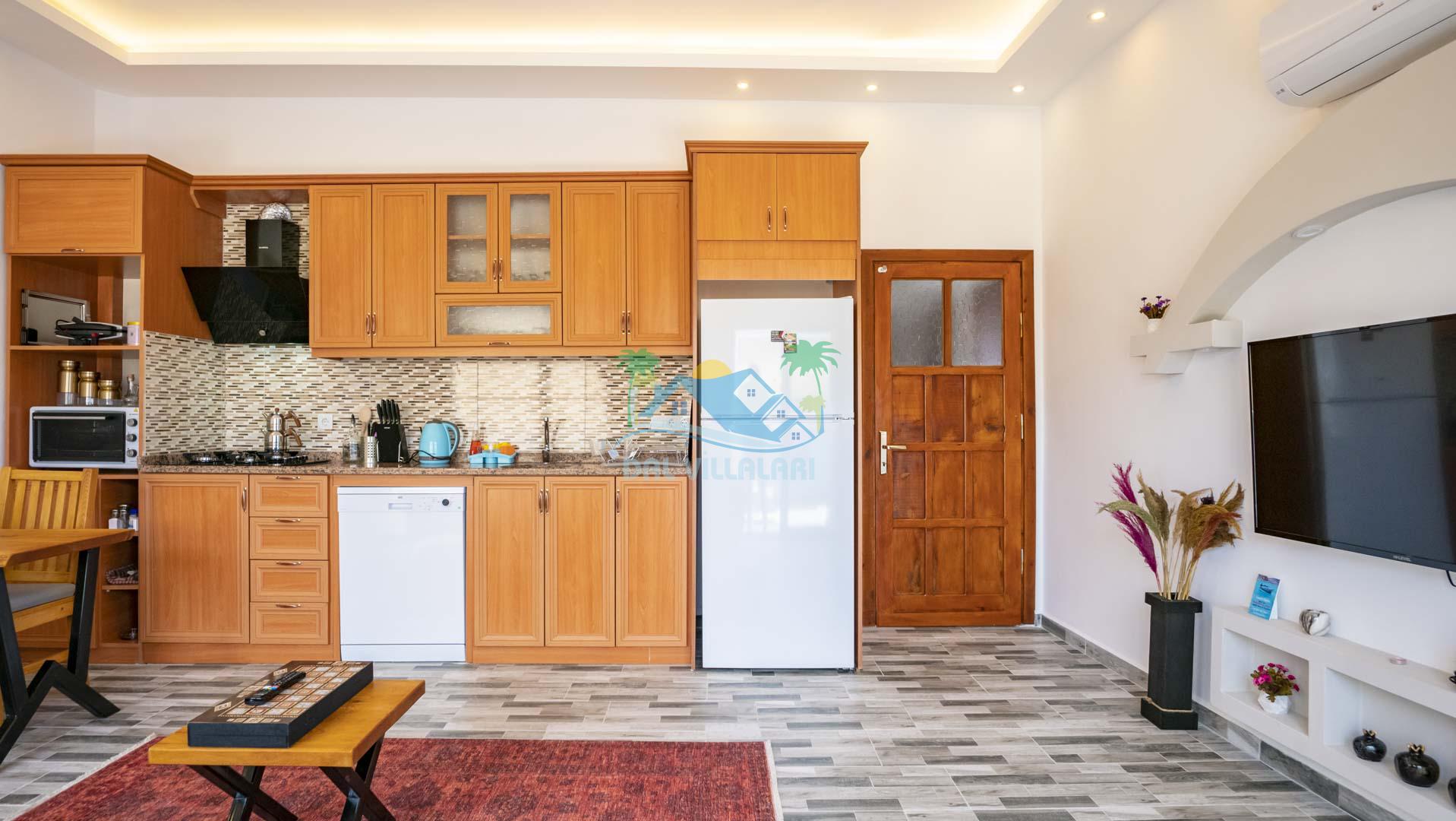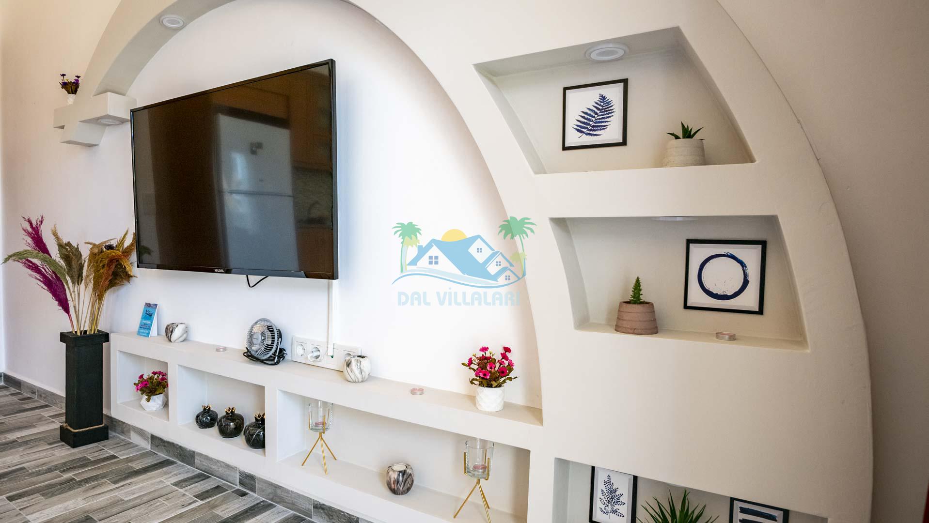 Villamız tek yatak odalıdır. Yatak odası içerisinde çift kişilik yatak ve klima bulunmaktadır. Salon içerisinde ise mutfak, oturma grubu, klima, banyo ve televizyon yer almaktadır.