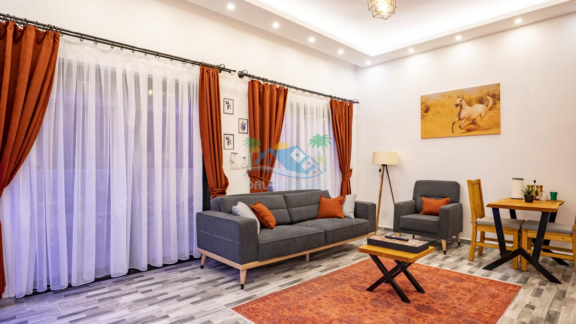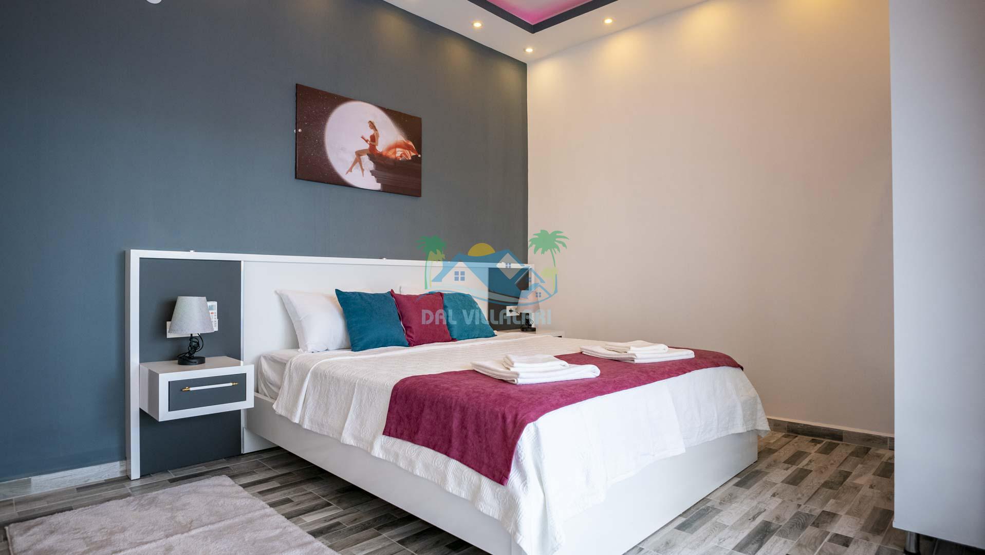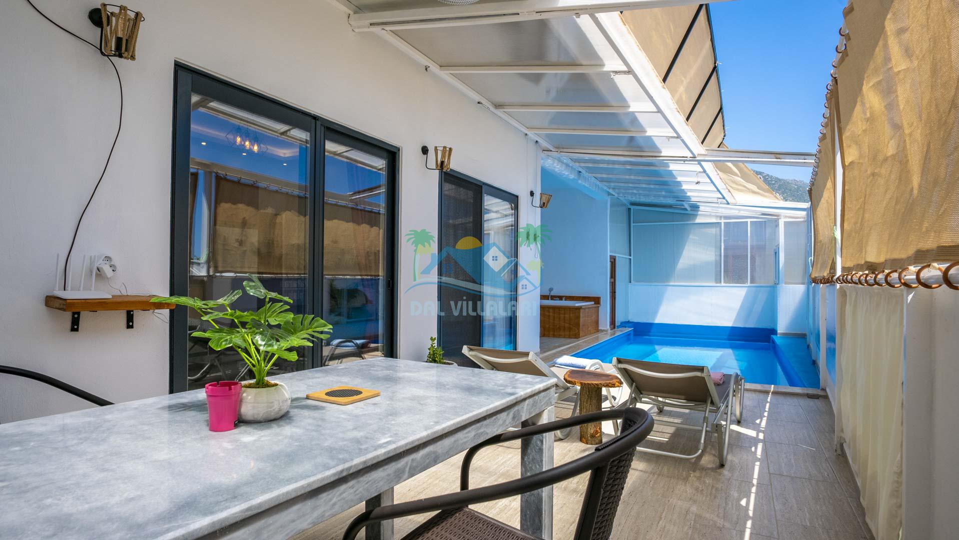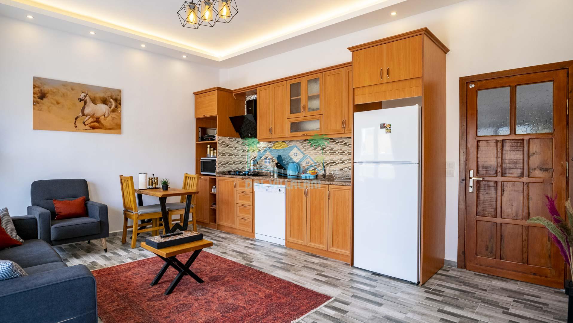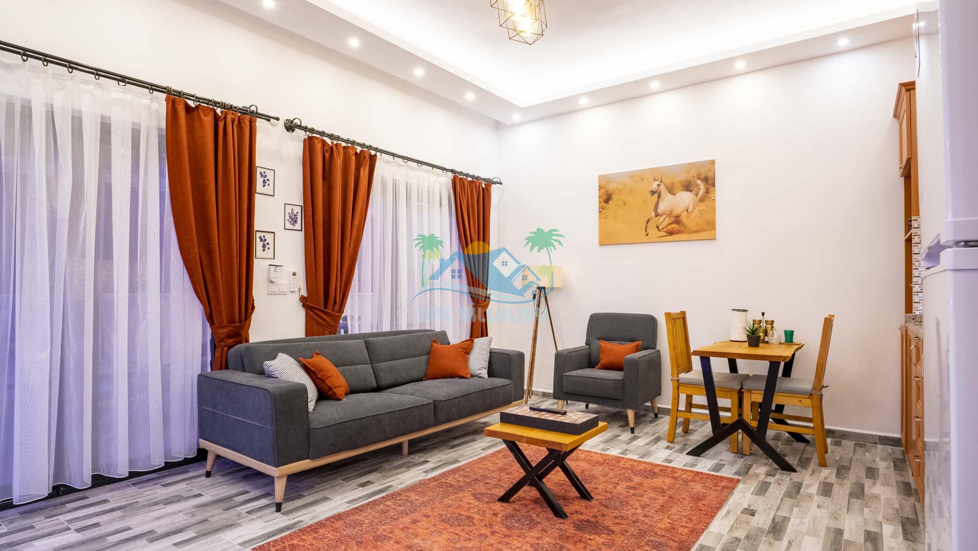 Villamız tek yatak odalıdır. Yatak odası içerisinde çift kişilik yatak ve klima bulunmaktadır. Salon içerisinde ise mutfak, oturma grubu, klima, banyo ve televizyon yer almaktadır.