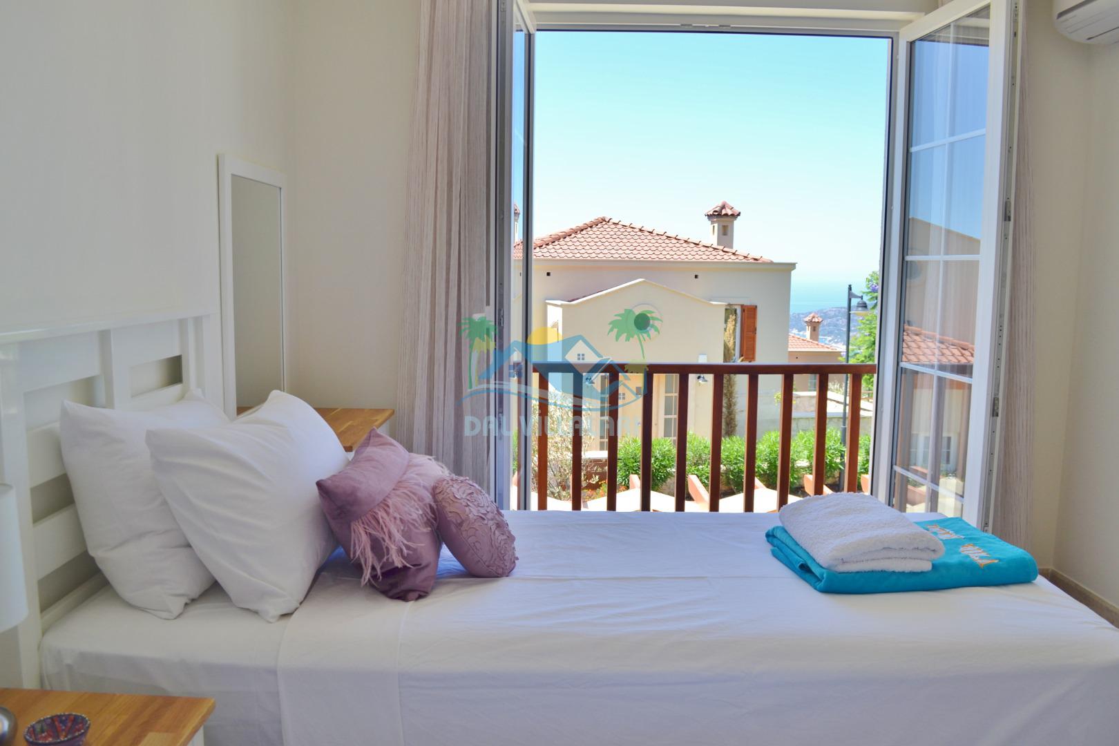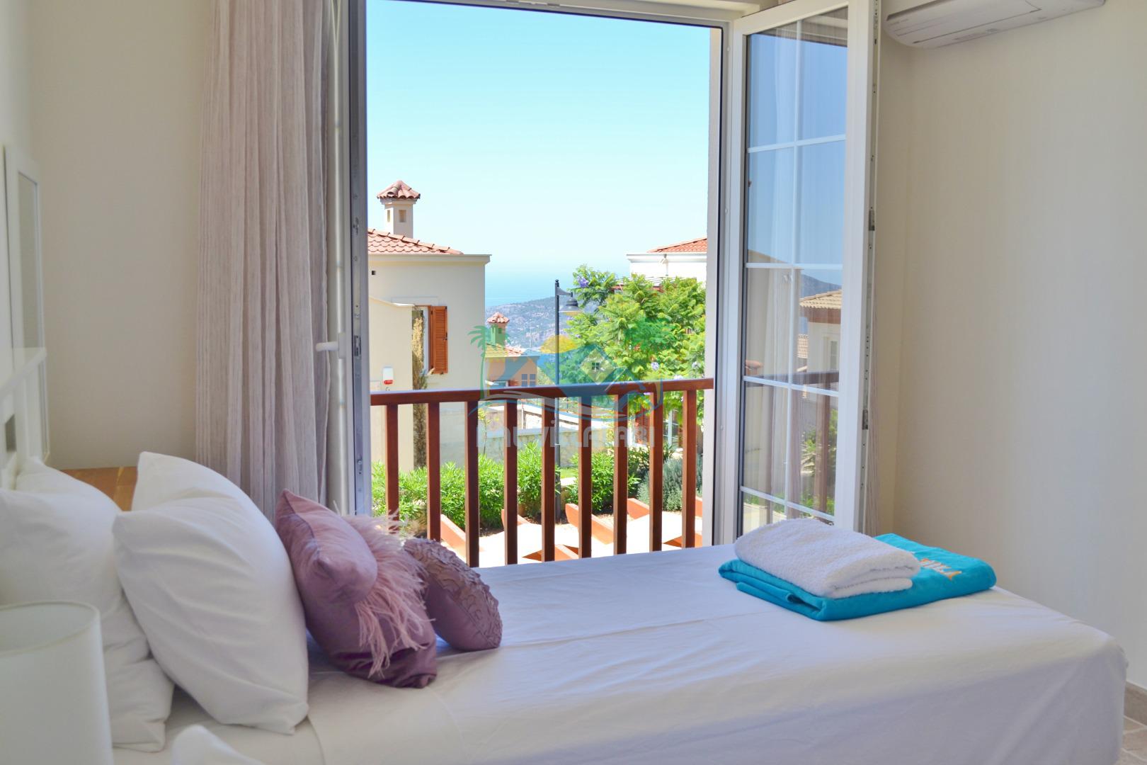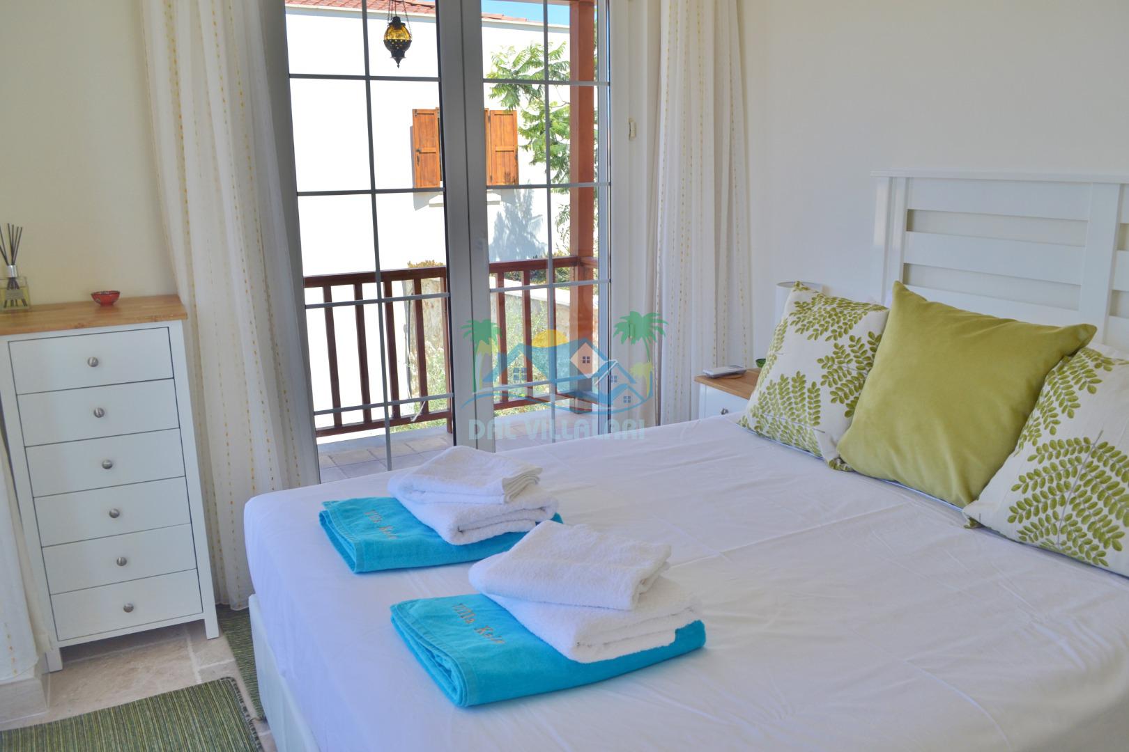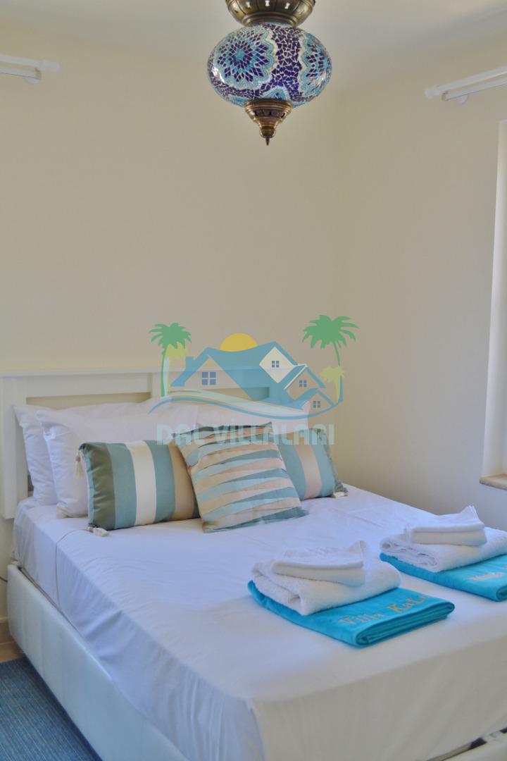 3. Yatak odası: 2 adet tek kişilik yatak, elbise dolabı, makyaj masası, saç kurutma makinası ve deniz manzarasına sahiptir.