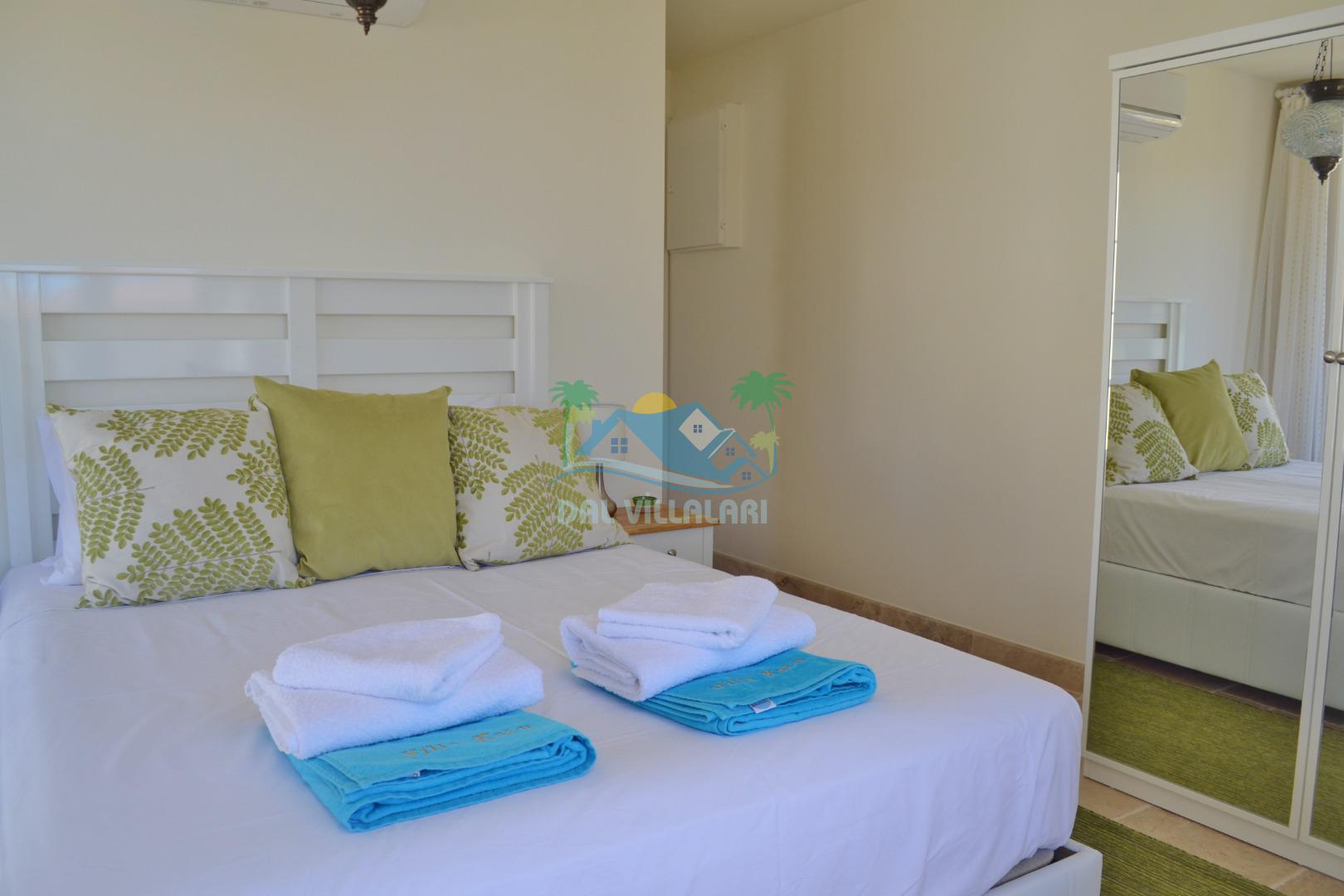 2. Yatak odası: 1 adet çift kişilik yatak, elbise dolabı, saç kurutmamakinası, klima bulunmaktadır.