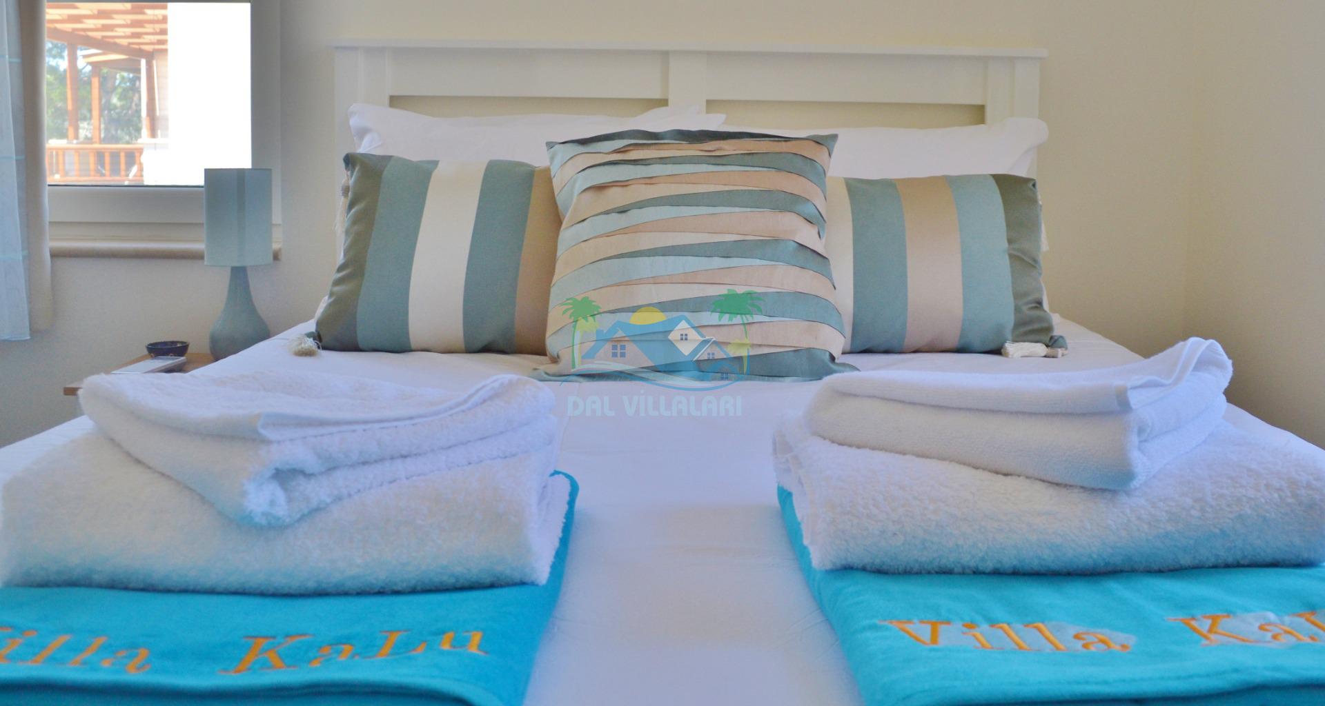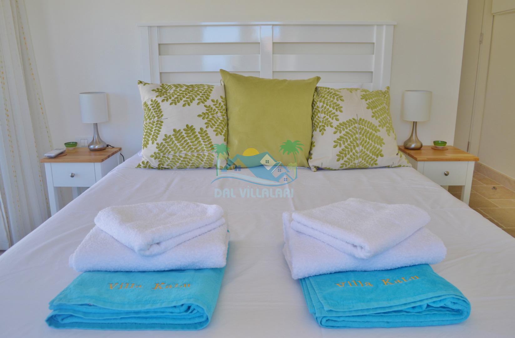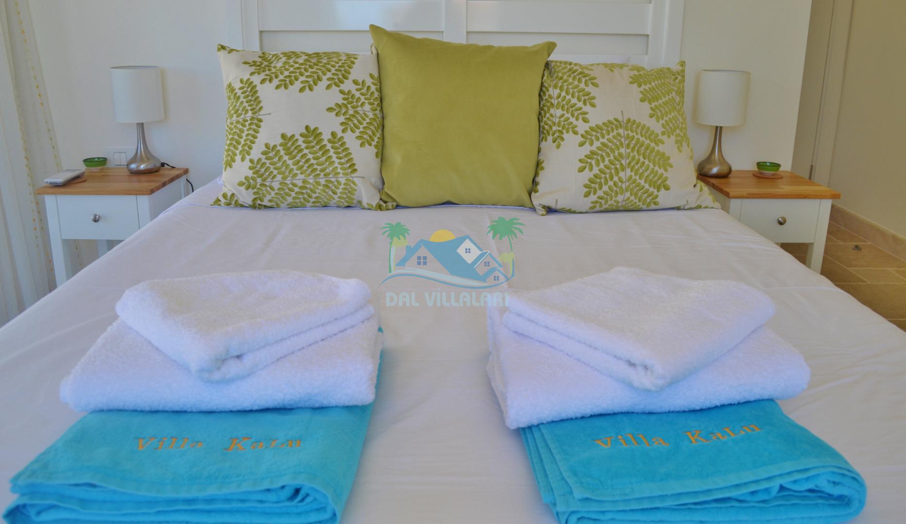 Yatak odalarında temiz nevresim, havlu takımları ve havuz havlusu yeralmaktadır.