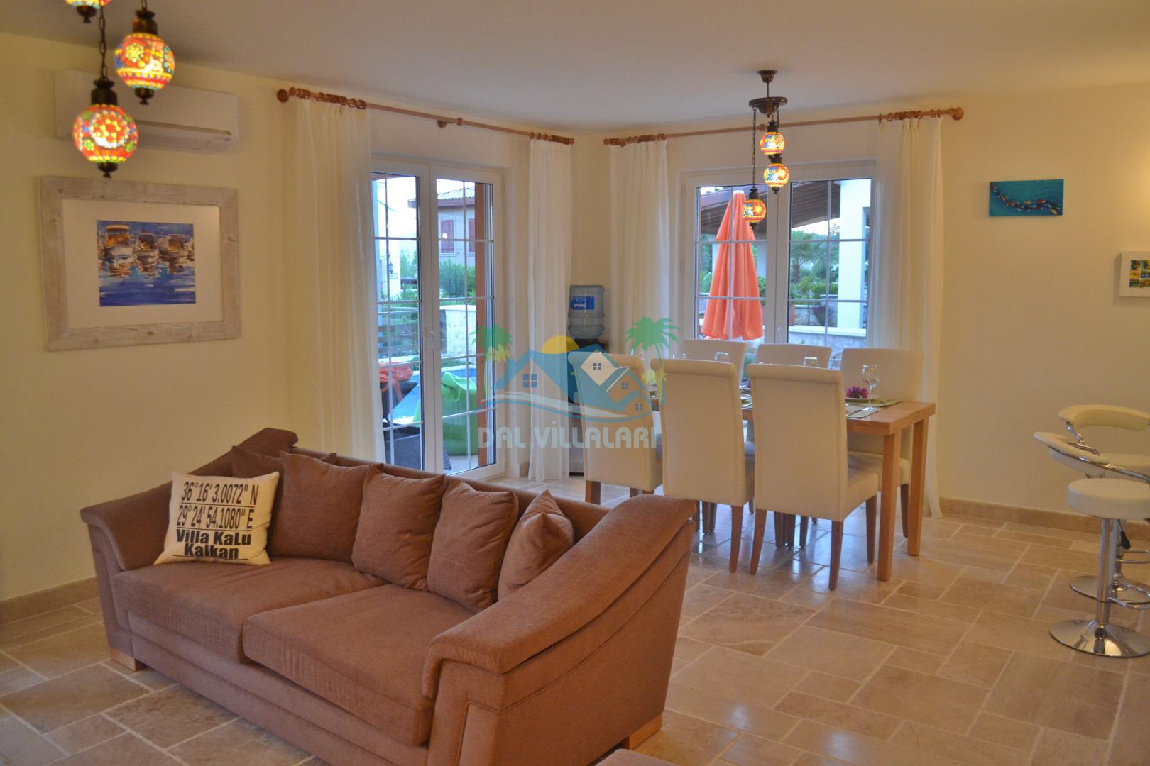 * Villa KaLu, Kalkan merkeze sadece 2 km mesefede bulunan LaVantaHomes sitesi içinde yer alan 3 yatak odalı modern ve lüks bir villadır.