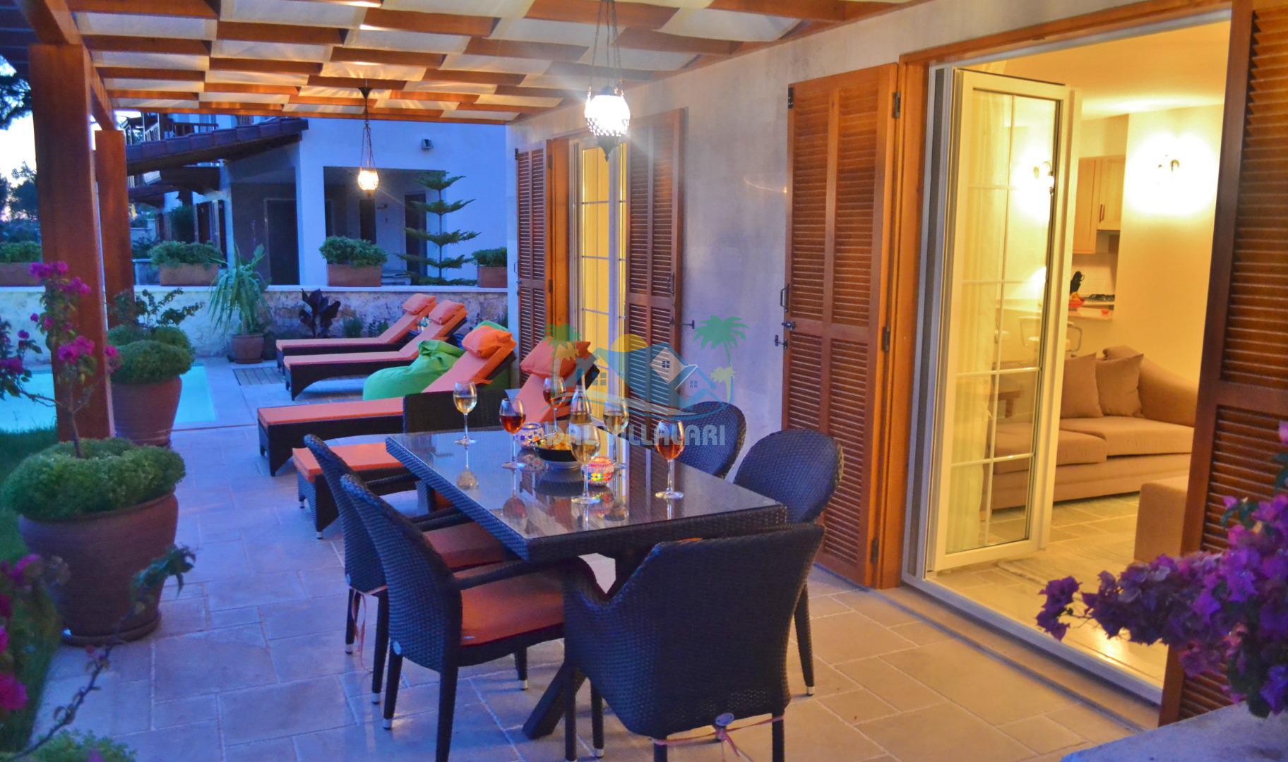 Doğa ve deniz manzaralı, Balayı çiftlerine uygun, Çocuklu ailelereuygun, Lüks iç ve dış dekarasyon, Modern iç ve dış eşyalar ve binahırsızlık güvenliği için alarm bulunmaktadır.