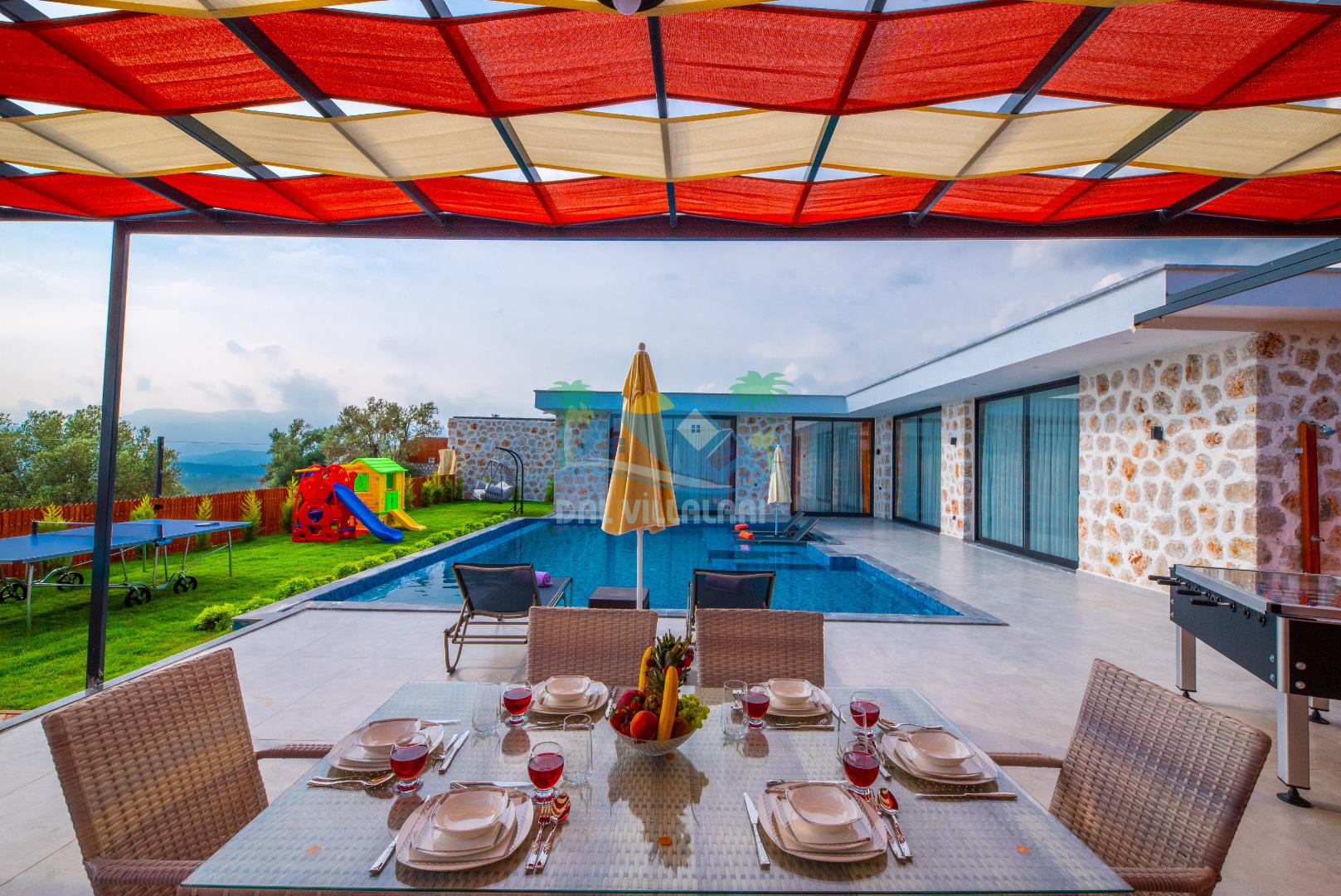 Villa Koacer 1, Kalkan Çavdır mevkiinde konumlanan, havuzu tam korunaklı villamızdır. Villamız, çocuklu aileler ve balayı misafirleri için çok ideal bir seçenektir. Renkli ve kaliteli bir dizaynı bulunan villamız, misafirlerimizin memnuniyeti adına tüm detaylar düşünülerek tasarlanmıştır. Ayrıca villamız da masa tenisi, langırt, salıncak, çocuk parkı bulunmaktadır.
