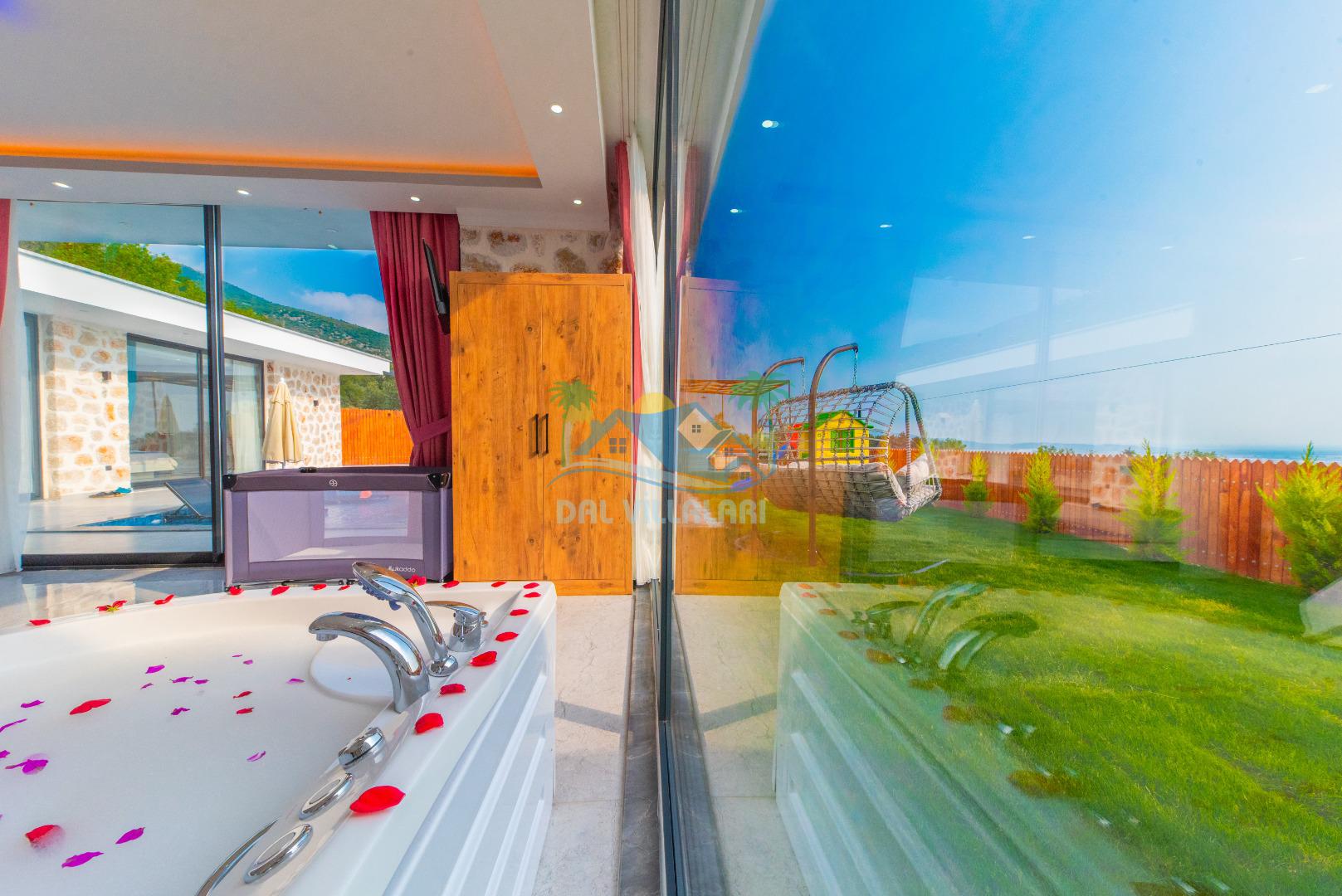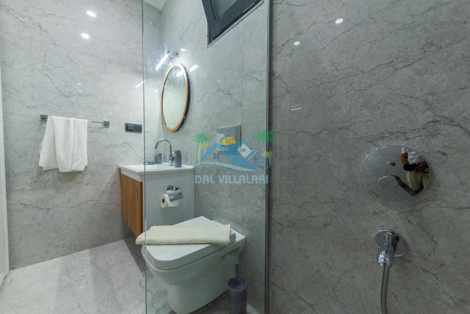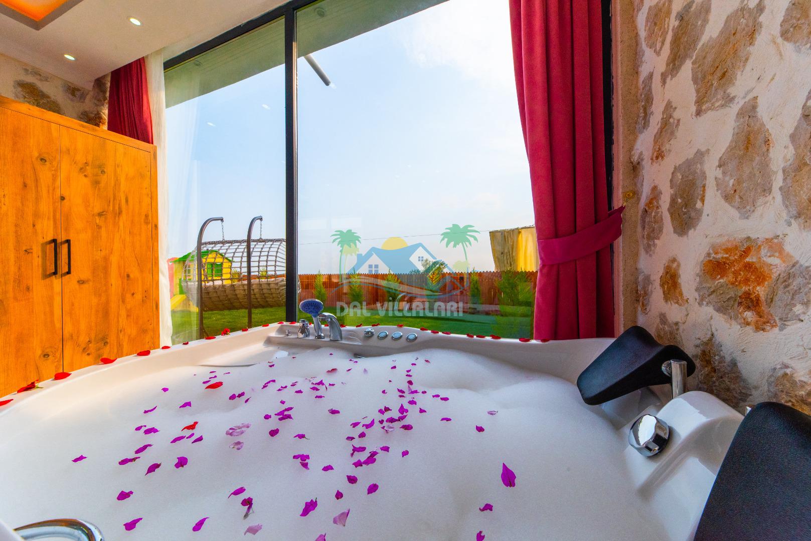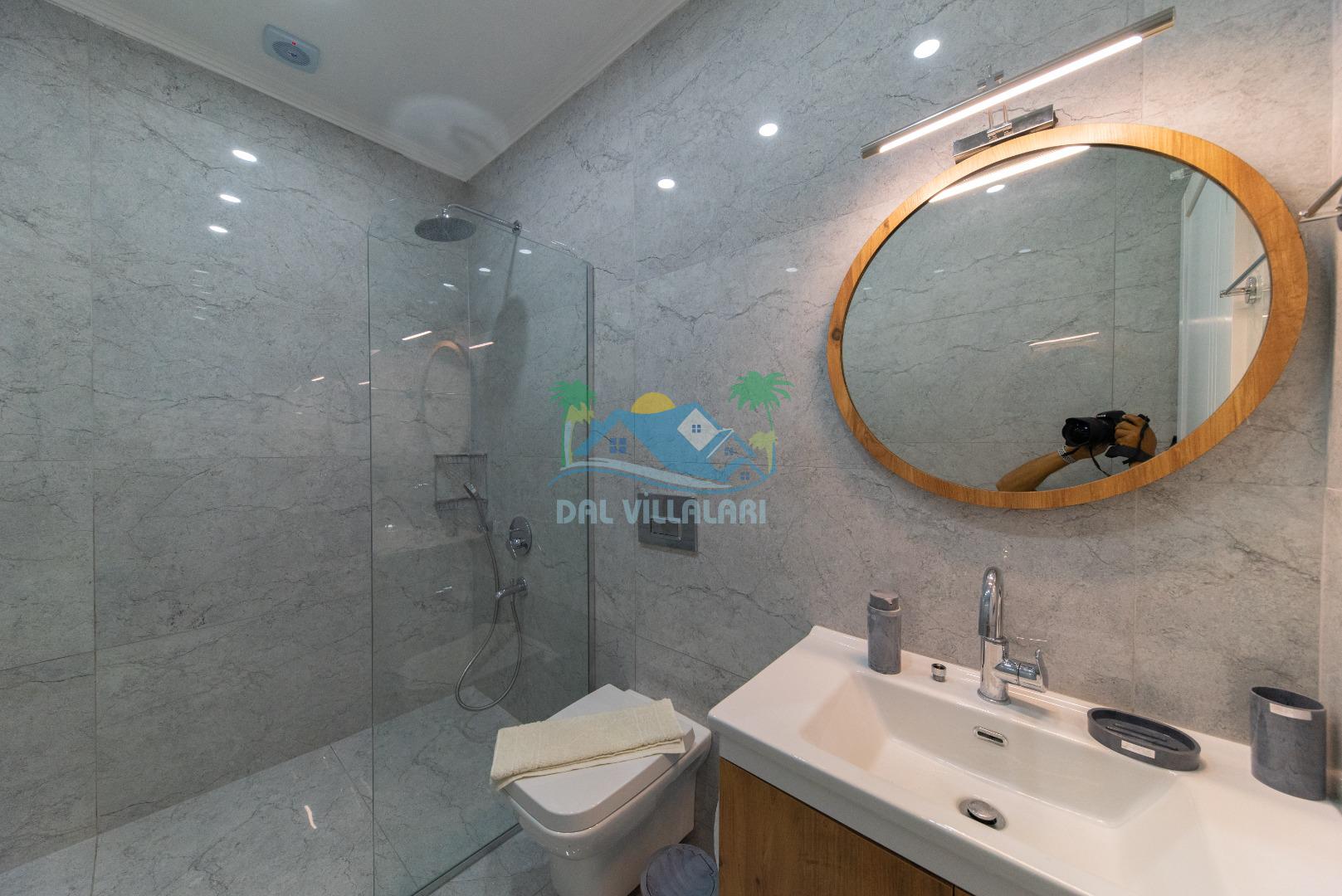 Villamızın iki adet yatak odası ve iki adet banyosu bulunmaktadır. Birinci yatak odası içerisinde bir adet çift kişilik yatak, banyo, jakuzi, klima ve televizyon; ikinci yatak odası içerisinde iki adet tek kişilik yatak, banyo ve klima yer almaktadır. Salon içerisinde mutfak, oturma grubu, televizyon ve klima yer almaktadır.