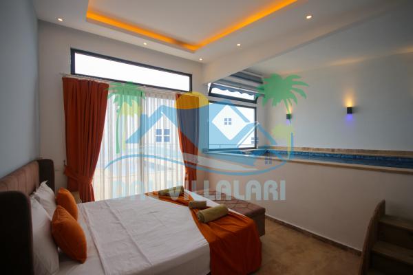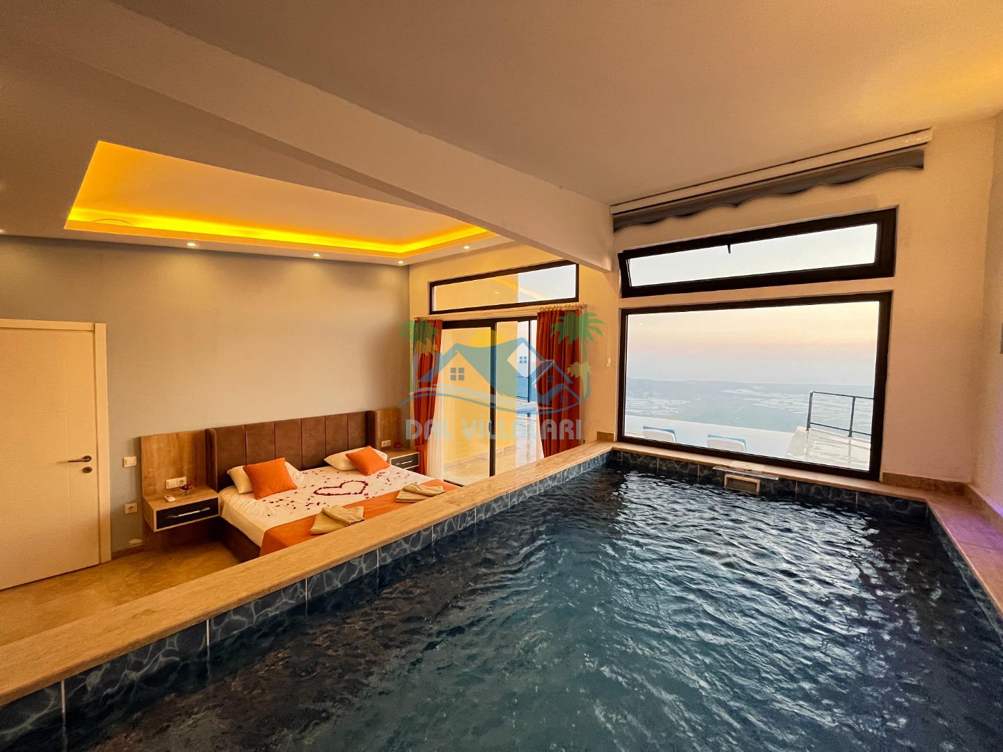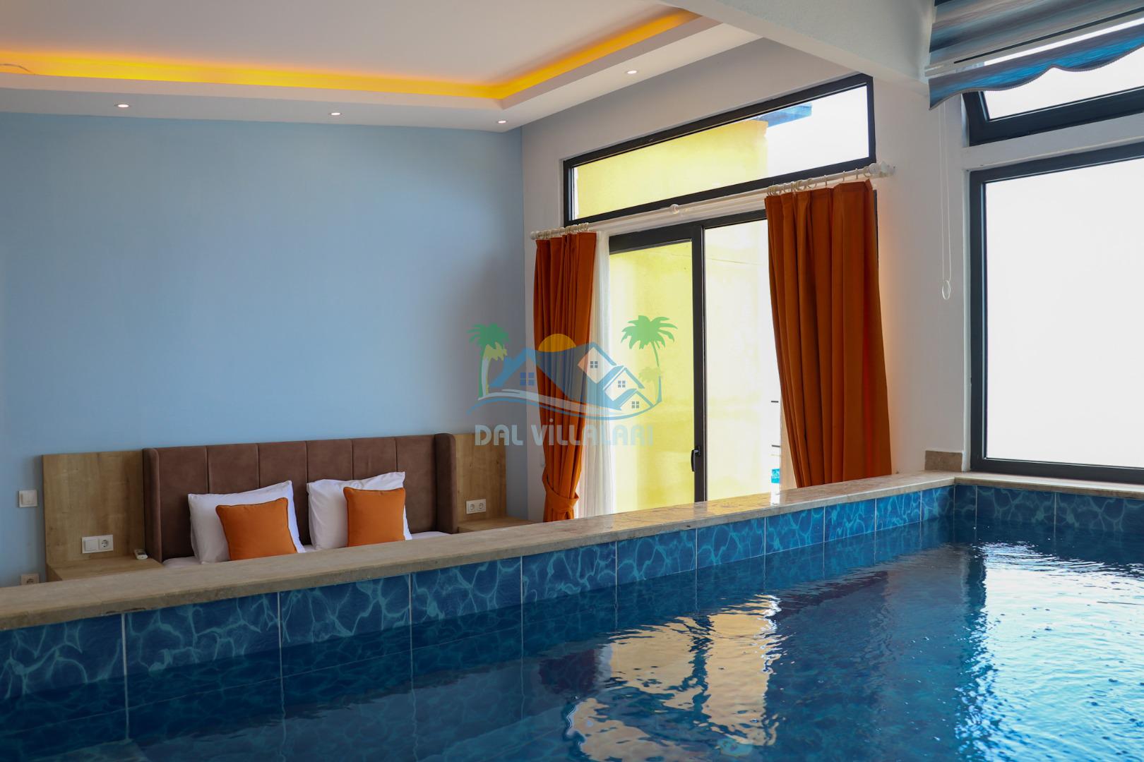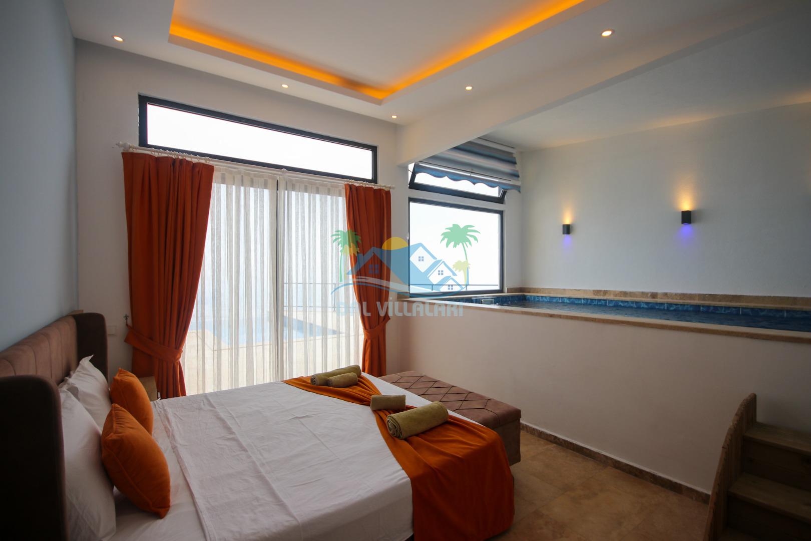Yatak odamızda manzaranın tam karşısına konumlandırılmış eni 2m boyu 4m ölçülerinde olan bir adet jakuzili kapalı havuzumuz mevcuttur. Bütün odalarımız villalarımıza özel olarak muhafaza edilmiş sonsuz havuzaçılmaktadır.