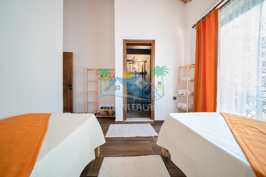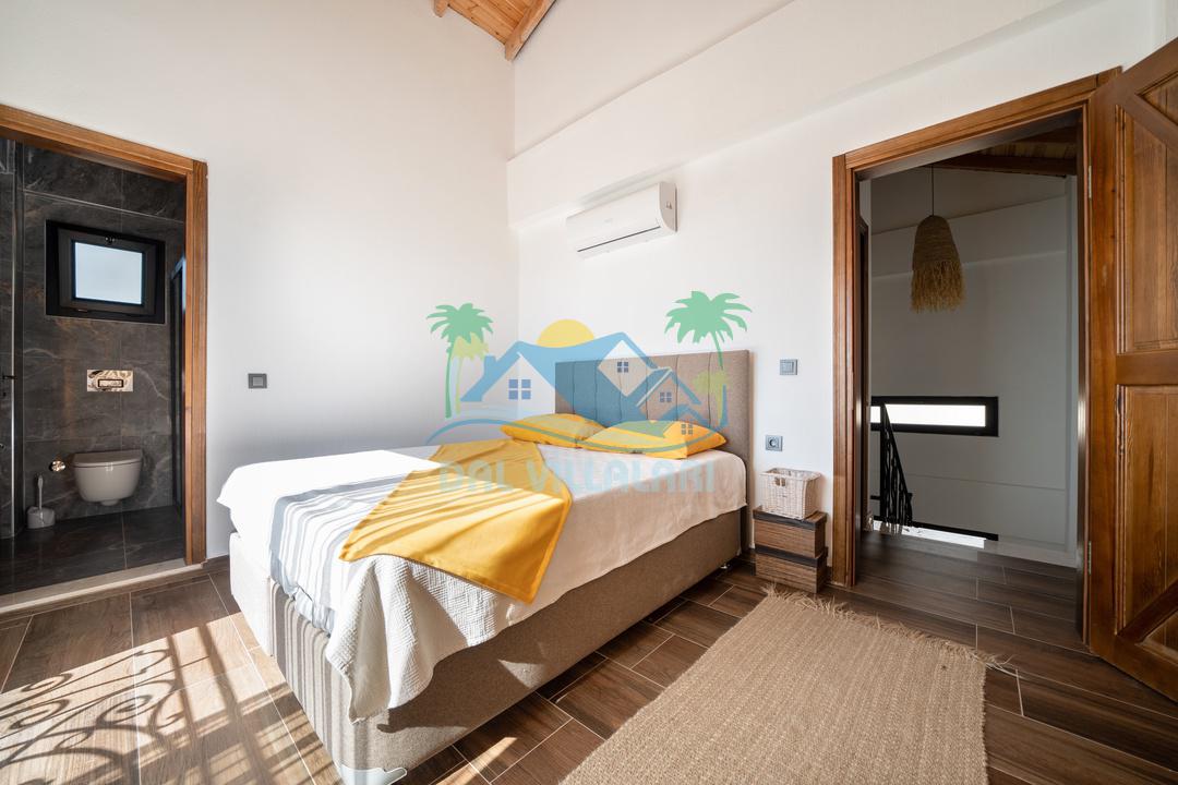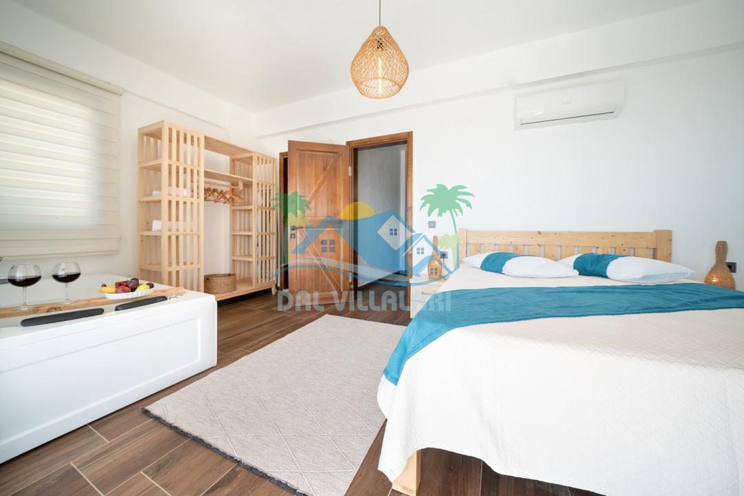 Villamız toplamda 6 kişinin rahatlıkla konaklayabileceği ve sizlerin rahat etmesi için her şeyin en ince ayrıntısına kadar düşünüldüğü bir villadır. Villamızda birinci yatak odası içerisinde bir adet çift kişilik yatak, ebeveyn banyosu, jakuzi ve klima yer almaktadır. İkinci yatak odasında ise bir adet çift kişilik yatak ve ebeveyn banyosu ve klima yer almaktadır. Üçüncü yatak odasında ise iki adet tek kişilik yatak , klima ve ebeveyn banyosu bulunmaktadır. Ortak alanda ise açık mutfak - salon, WC , klima ve TV mevcuttur.