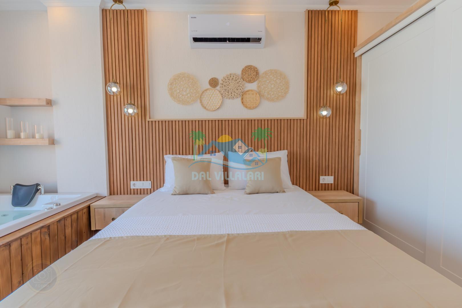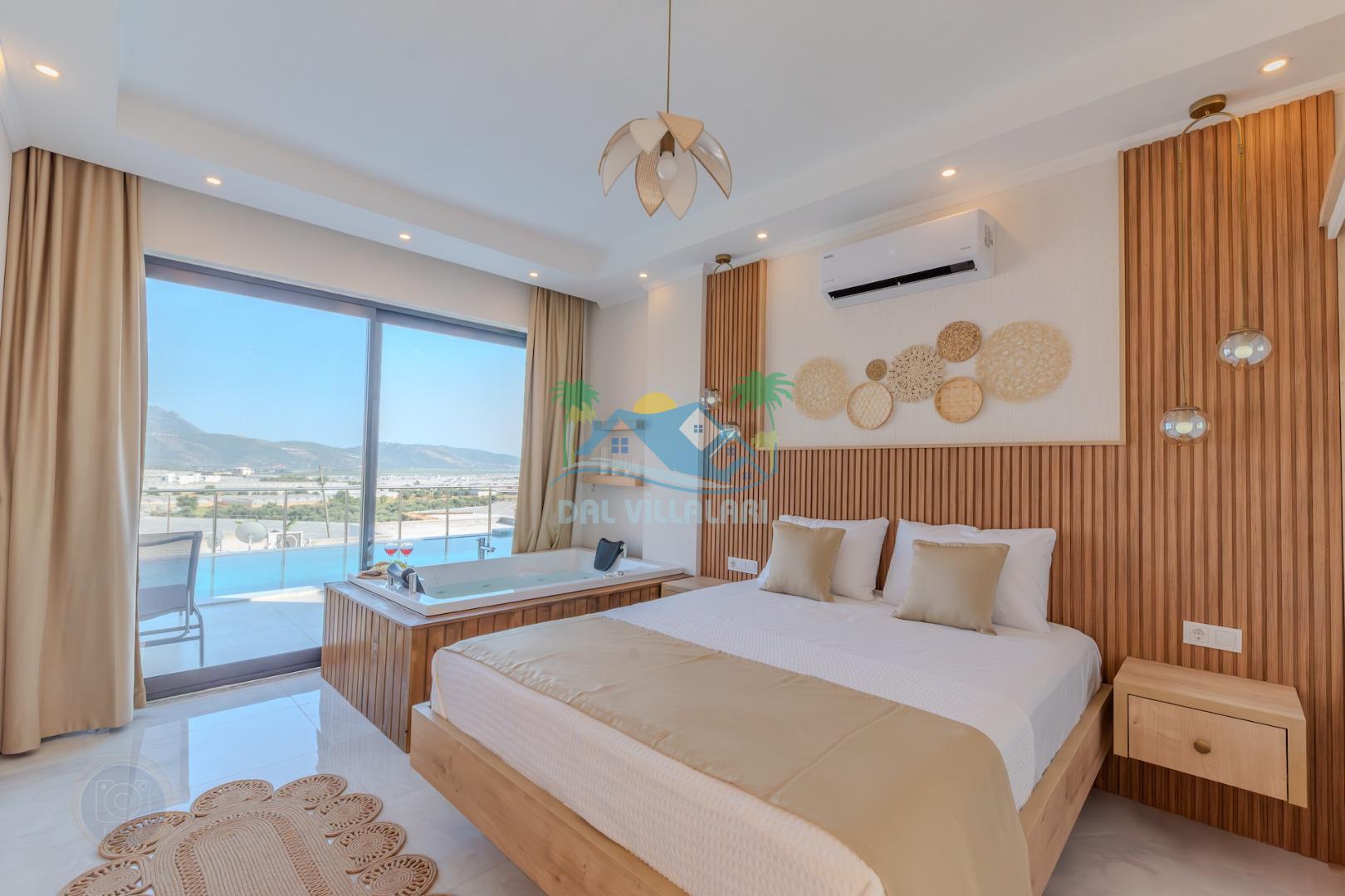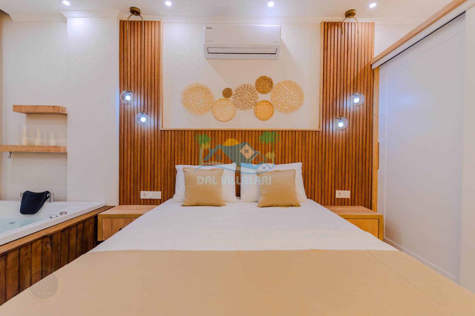 Birinci yatak odasında çift kişilik yatak, jakuzi ve ebeveyn banyosu;