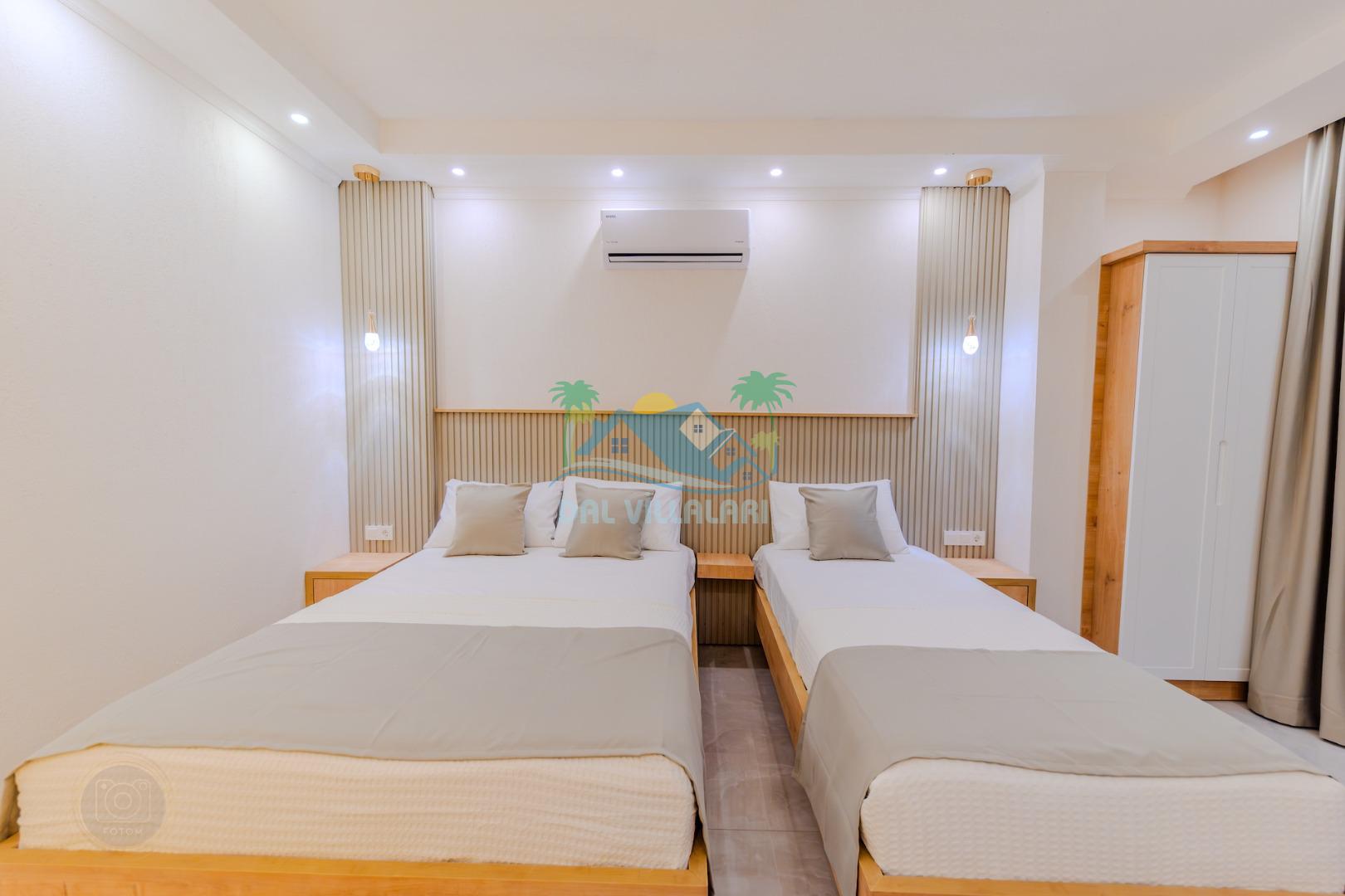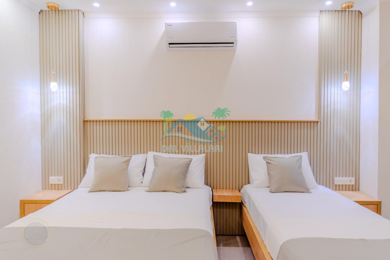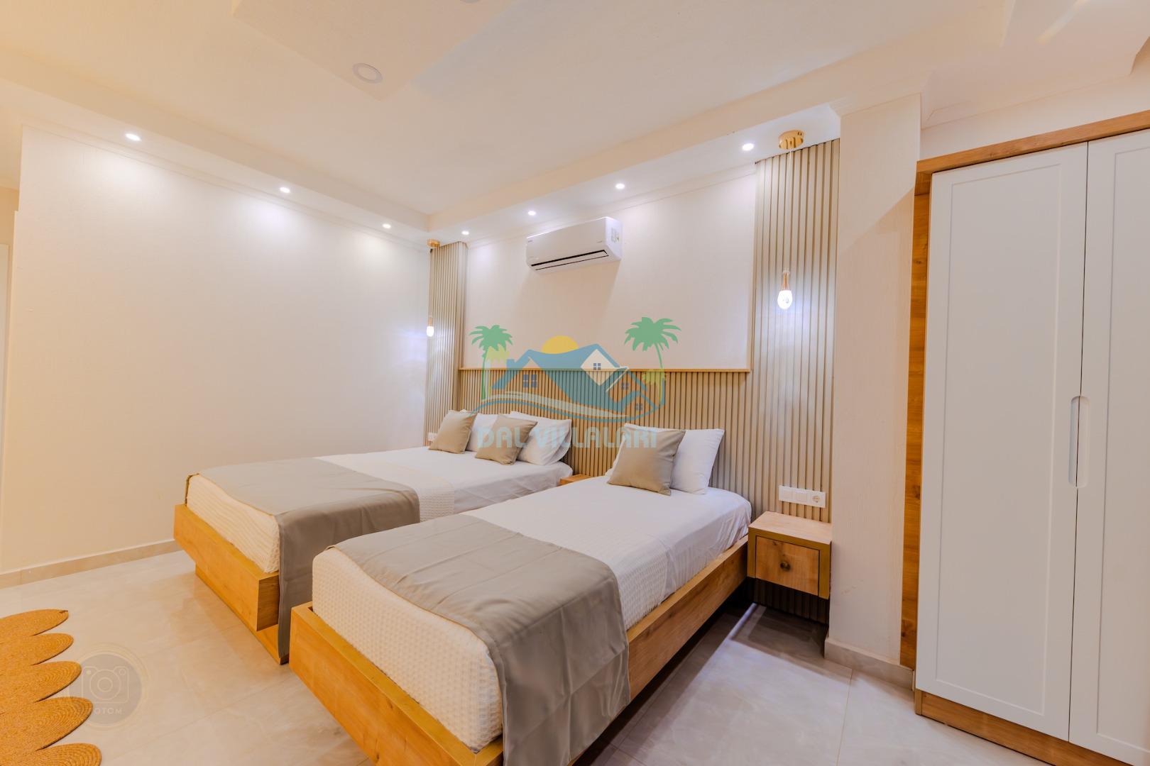 İkinci yatak odasında da bir çift kişilik ve bir tek kişilik yatak ve banyo bulunmaktadır.
