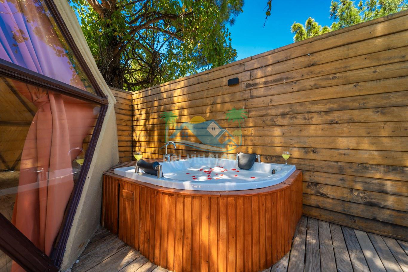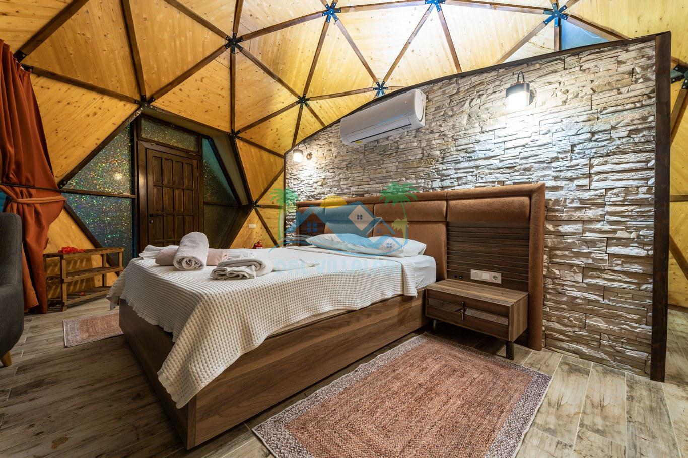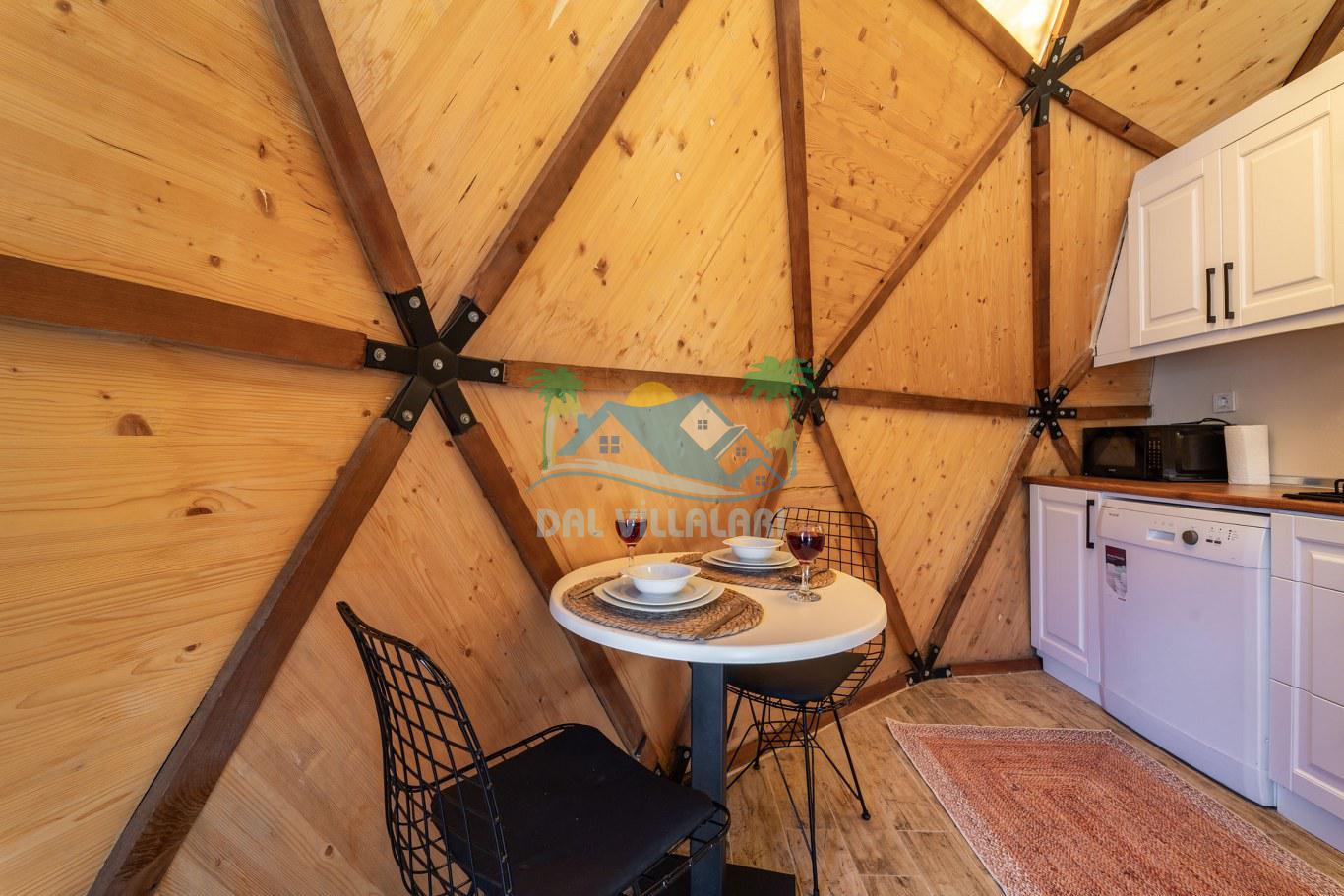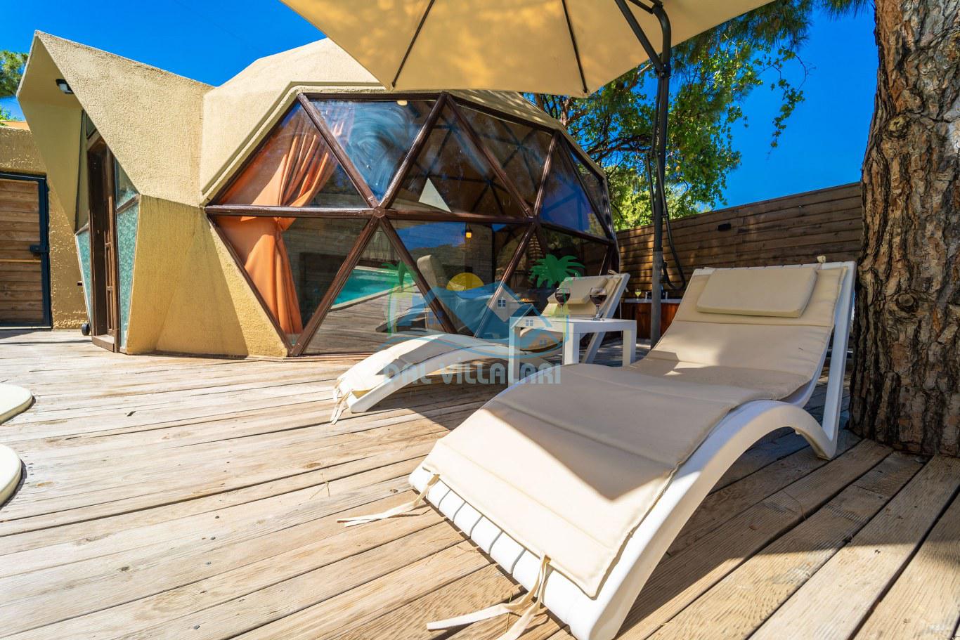 Her biri ayrı havuz terasına sahip olan kubbe tipi villalarımız, glamping kültüründen esinlenen çadır konseptlerine kıyasla Türkiye'de ilk defa 7 metre çapında, 4.30 metre kubbe yüksekliğinde, 38 metrekarelik AHŞAP yapıda üretilmiştir. Binalarımız, güvenlik ve iklim endişeleri olmaksızın konforlu bir konaklama sunar.
