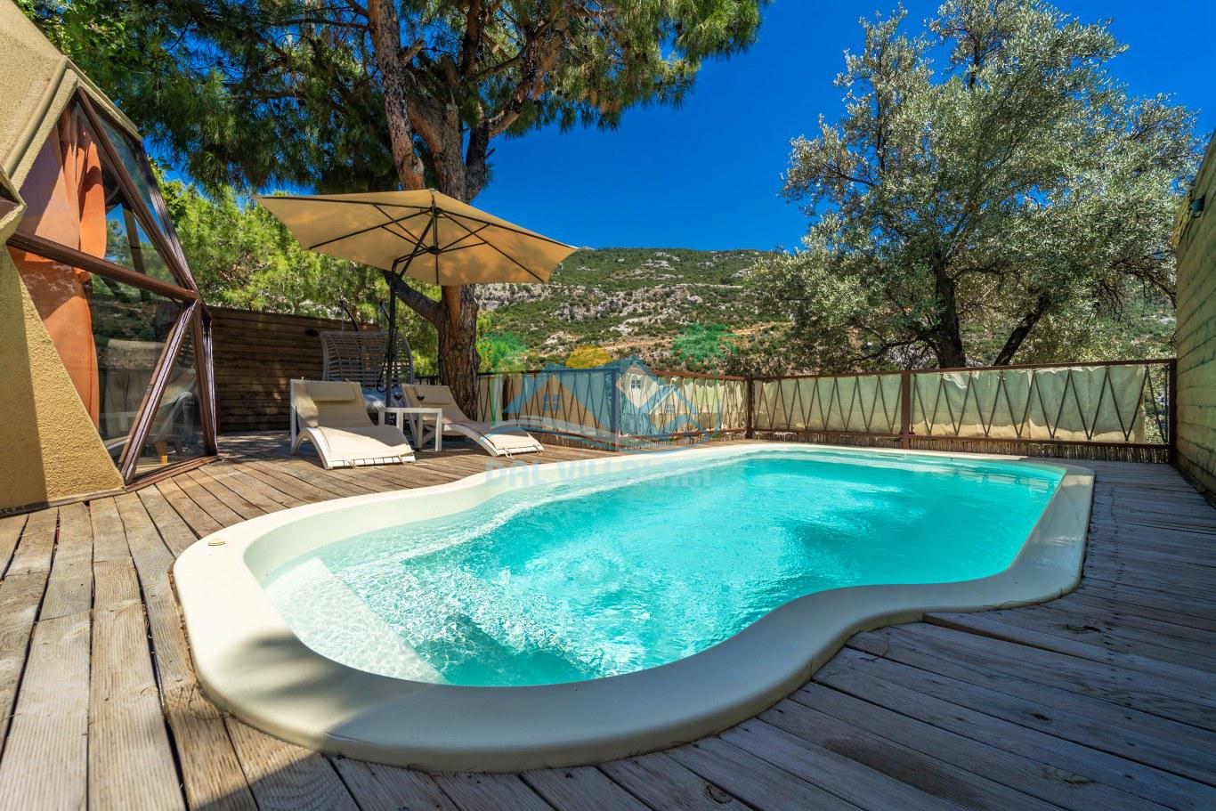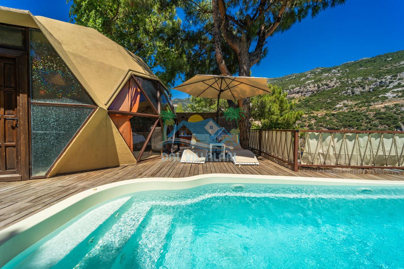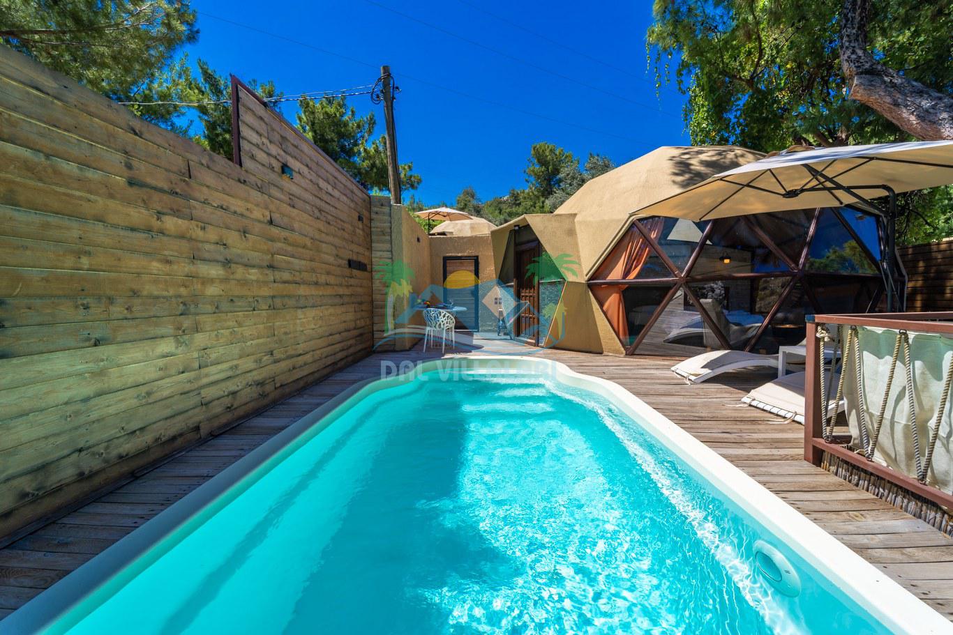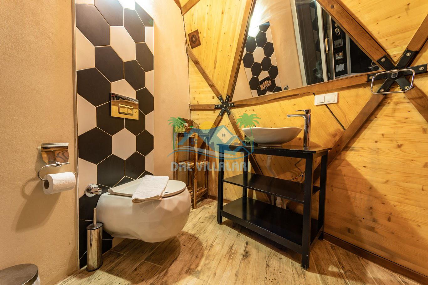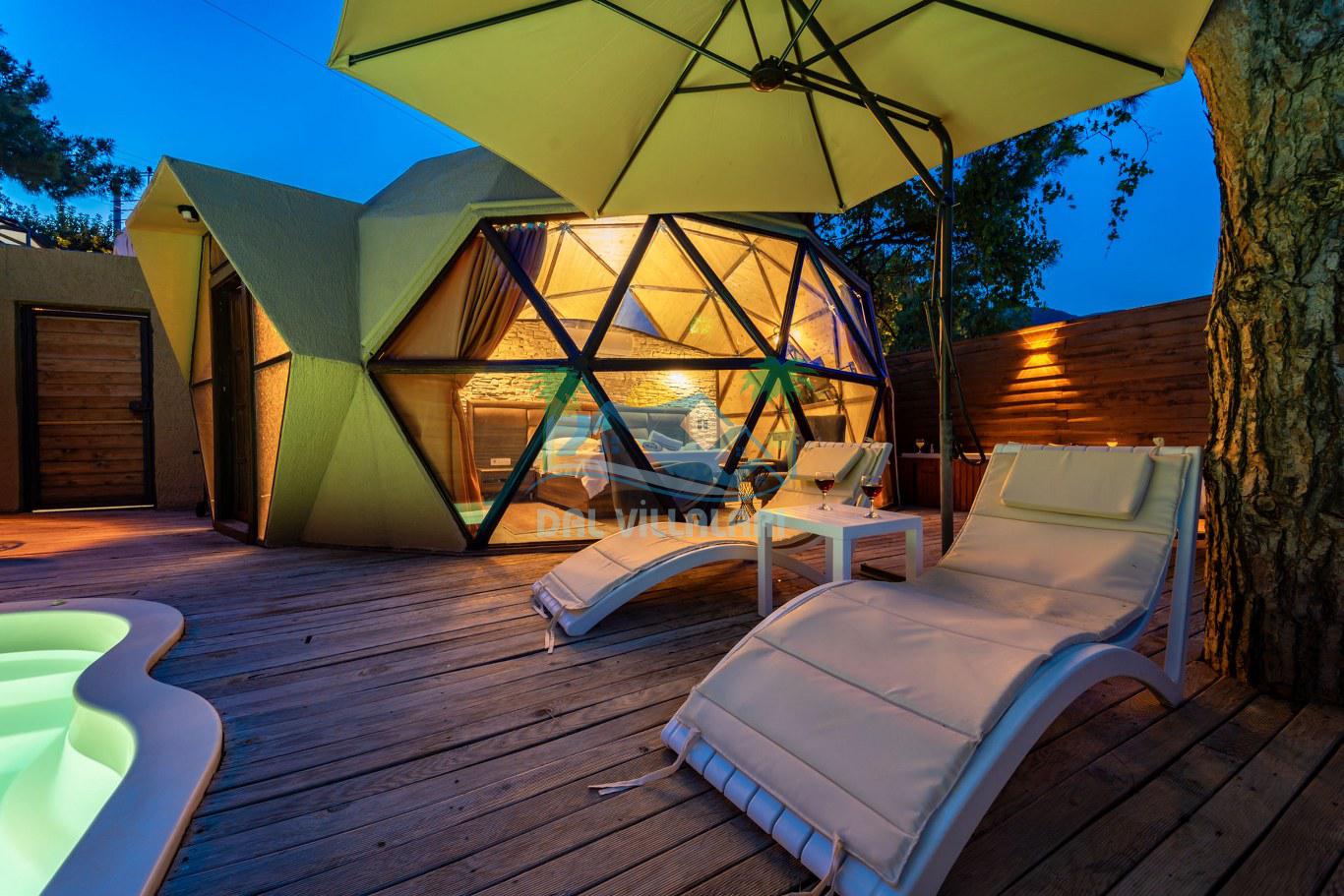 Her biri ayrı havuz terasına sahip olan kubbe tipi villalarımız, glamping kültüründen esinlenen çadır konseptlerine kıyasla Türkiye'de ilk defa 7 metre çapında, 4.30 metre kubbe yüksekliğinde, 38 metrekarelik AHŞAP yapıda üretilmiştir. Binalarımız, güvenlik ve iklim endişeleri olmaksızın konforlu bir konaklama sunar.