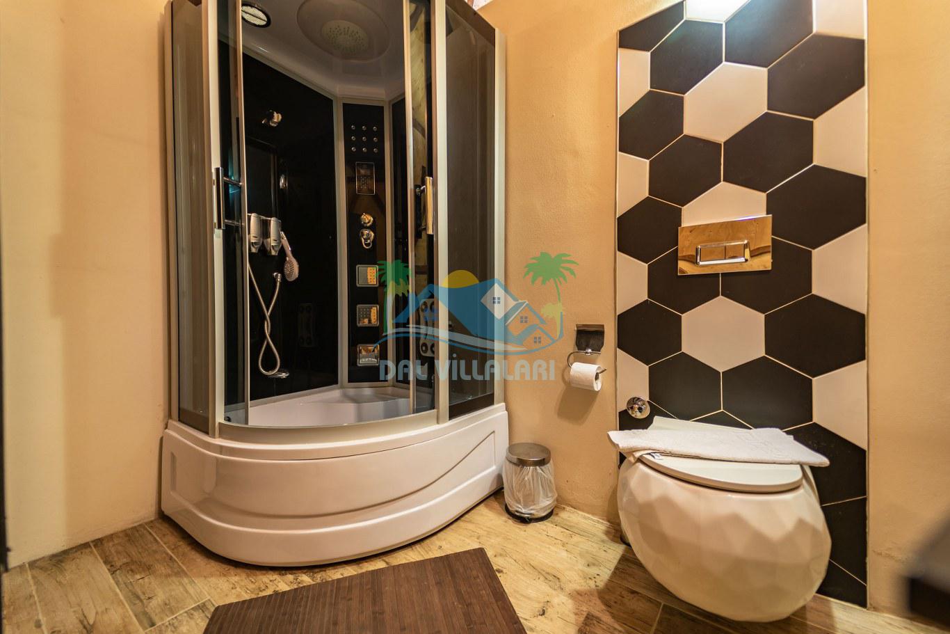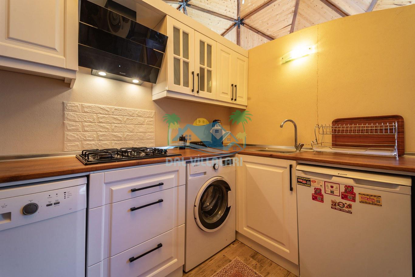 Villalarımızın iç mekanında standart olarak 2 kişilik yatak, 2 koltuk ve sehpa, makyaj masası, küçük bir yemek masası, Akıllı TV ve Uydu yayını, açık gardrop, yangın söndürme tüpü, klima ve uzaktan kumandalı tavan vantilatörü bulunmaktadır. Mutfak bölümünde ise çamaşır-bulaşık makinesi, mini buzdolabı (114 litre), mikrodalga fırın, ankastre ocak-davlumbaz ve yeterli mutfak malzemesi mevcuttur. Kısa süreli konaklayan misafirler için çay-kahve seti ve tek kullanımlık şampuan, saç kremi, sabun gibi buklet malzemeleri temin edilmektedir.